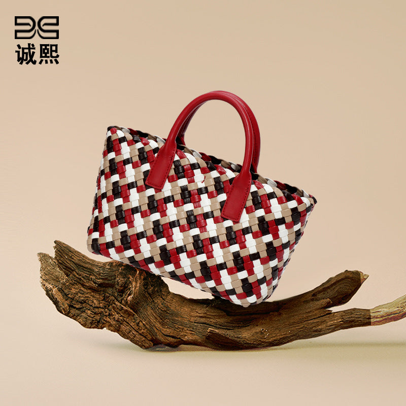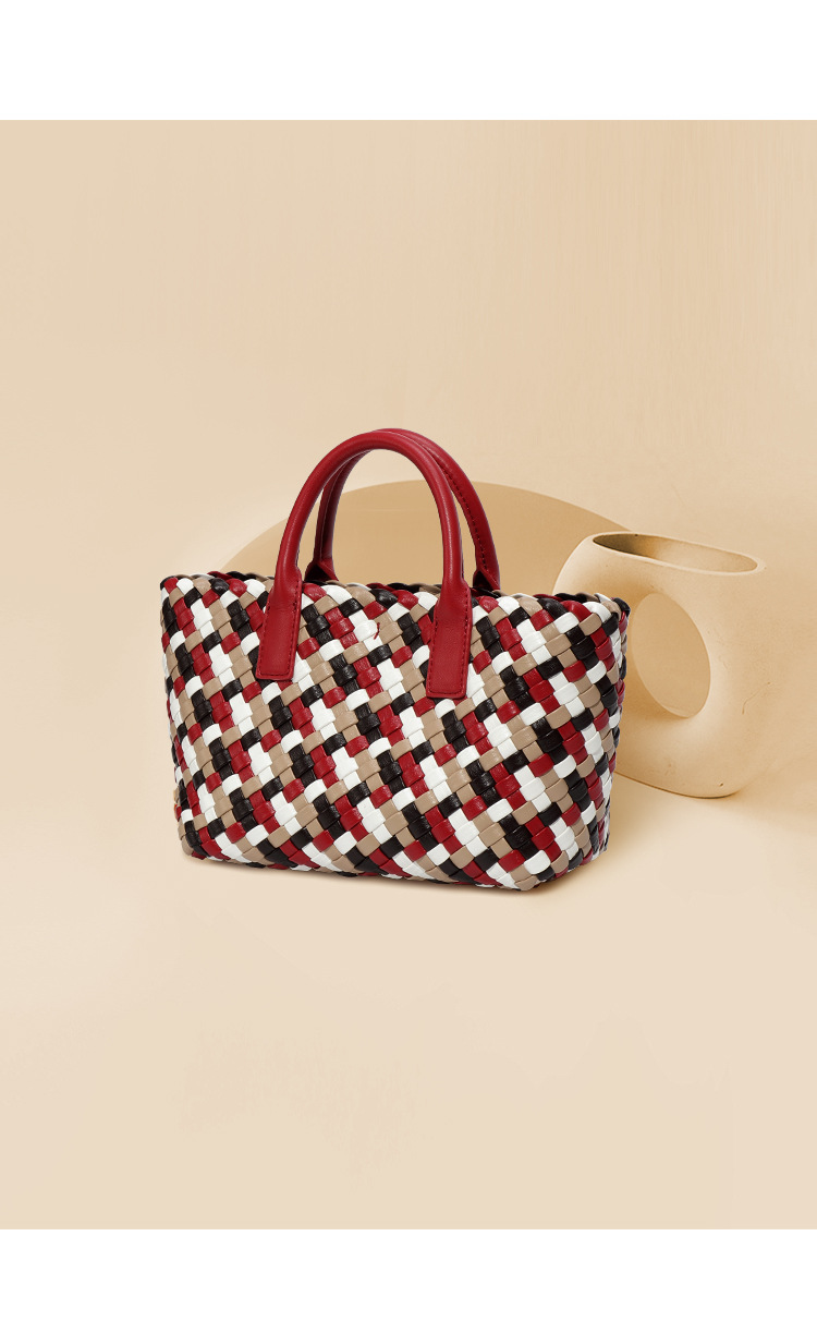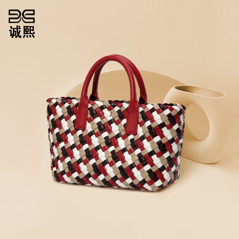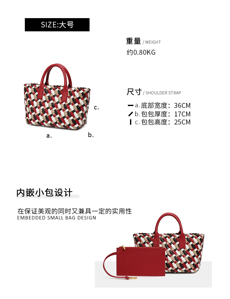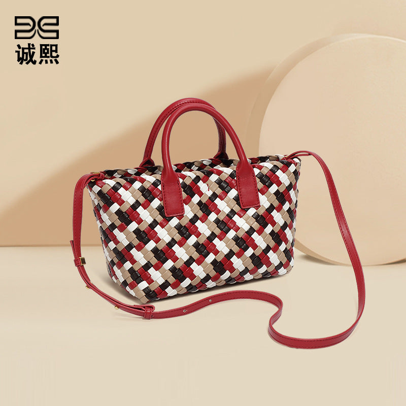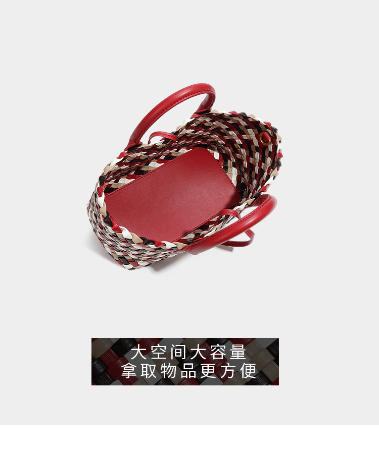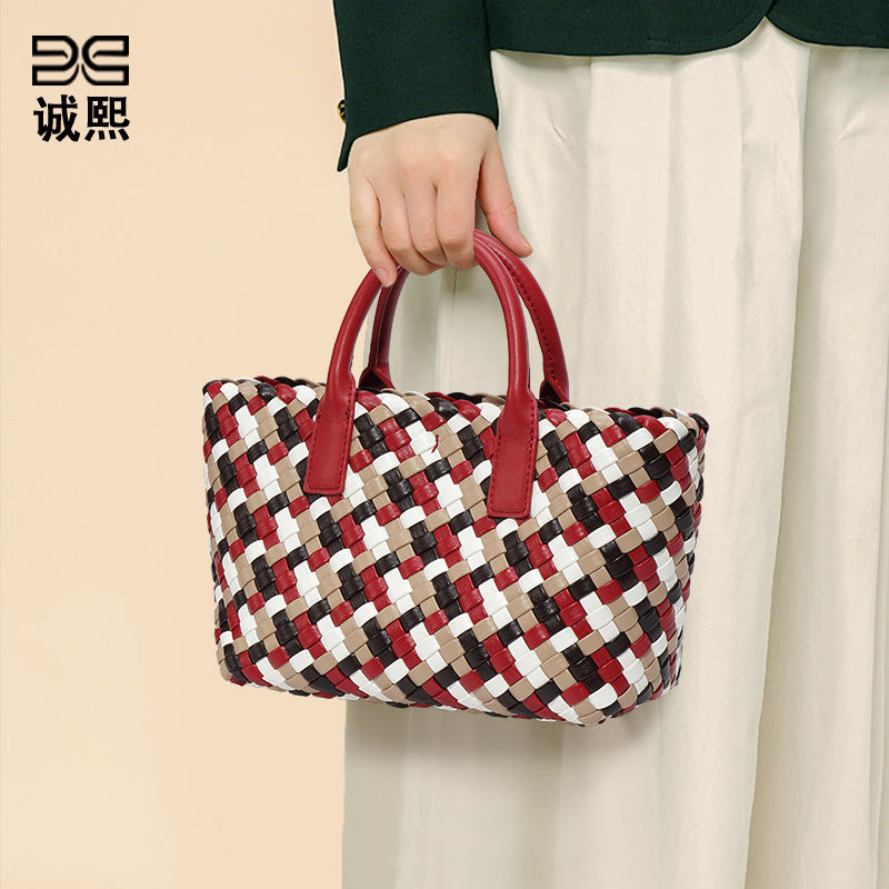 跨境2025新款撞色女士手提包时尚潮流手工编织包高级感单肩斜跨包