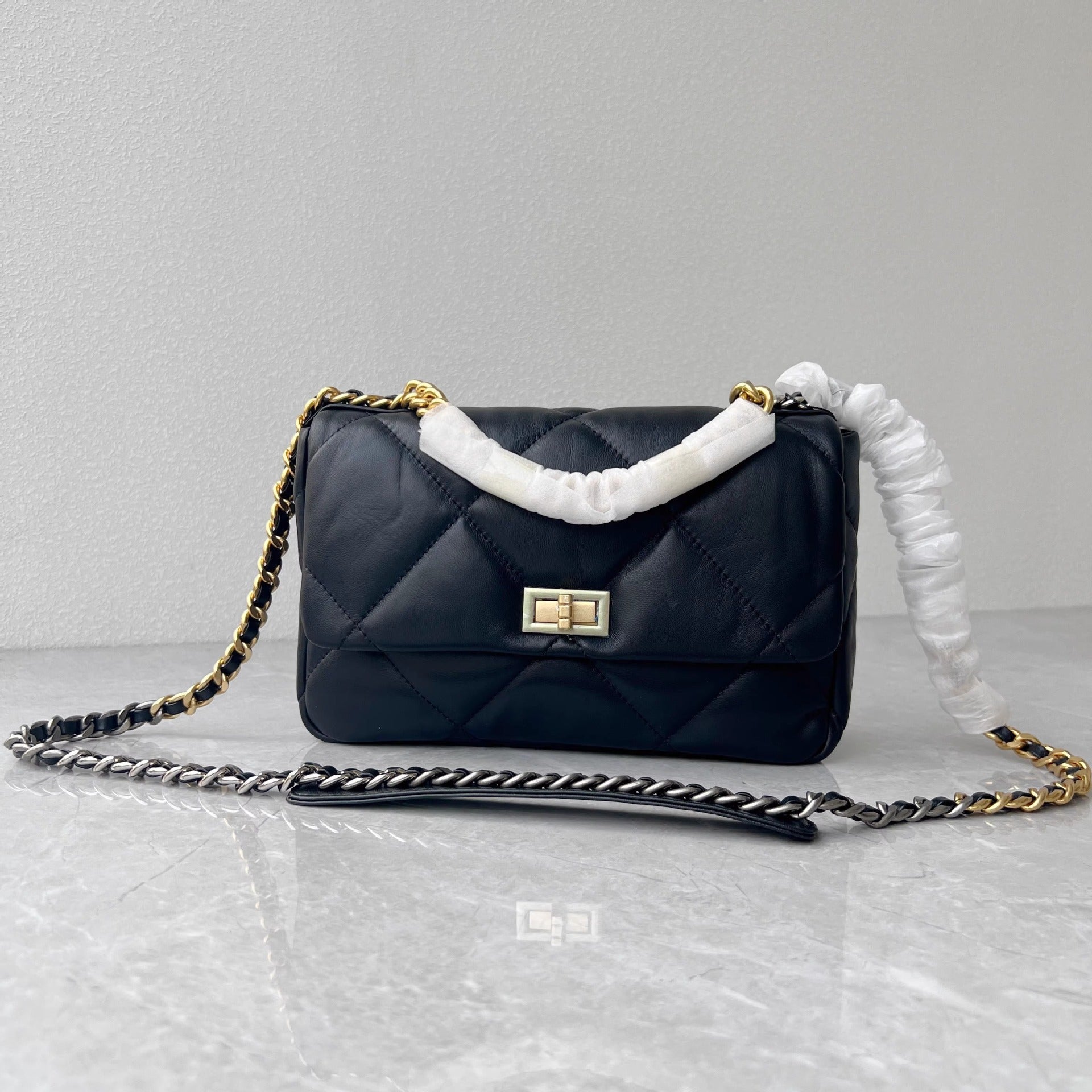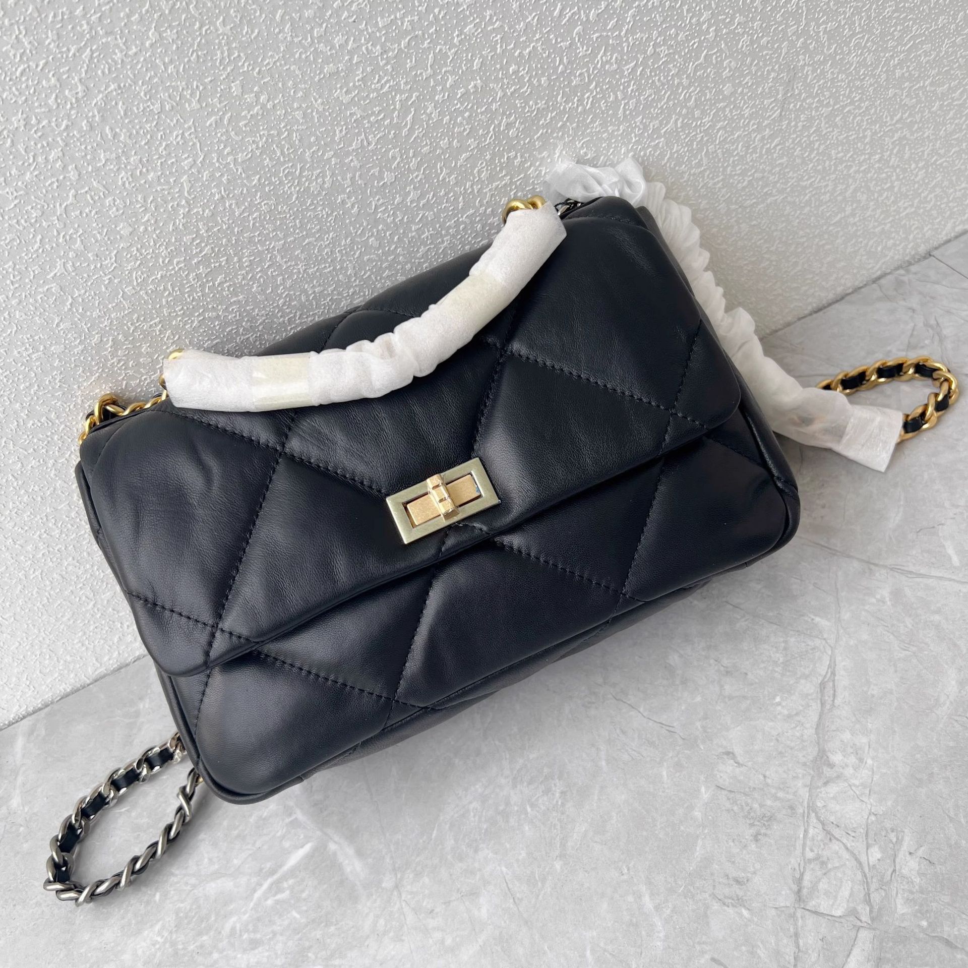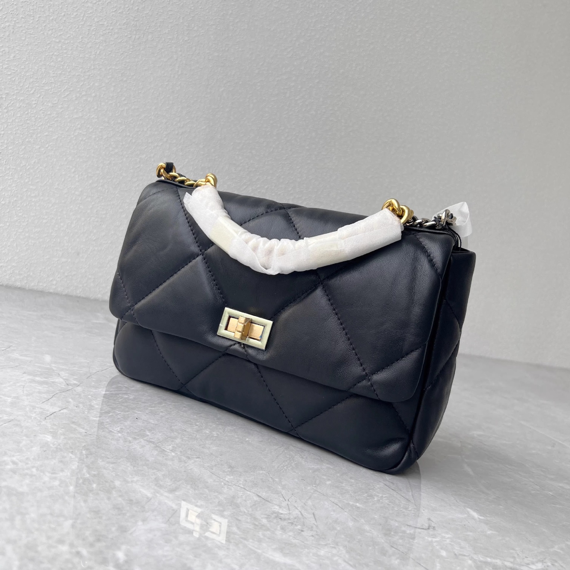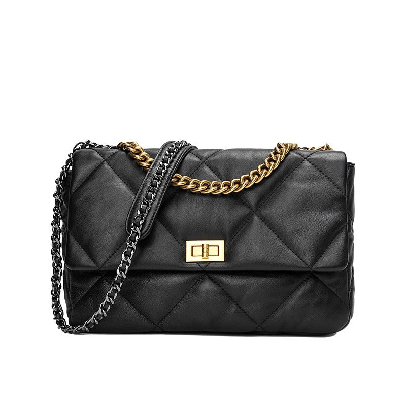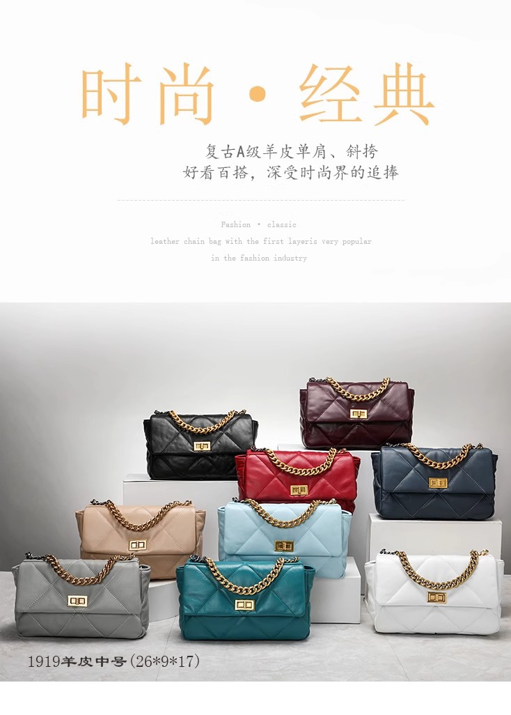 进口头层羊皮女包2024小香链条单肩大容量菱格时尚斜跨真皮女包厂