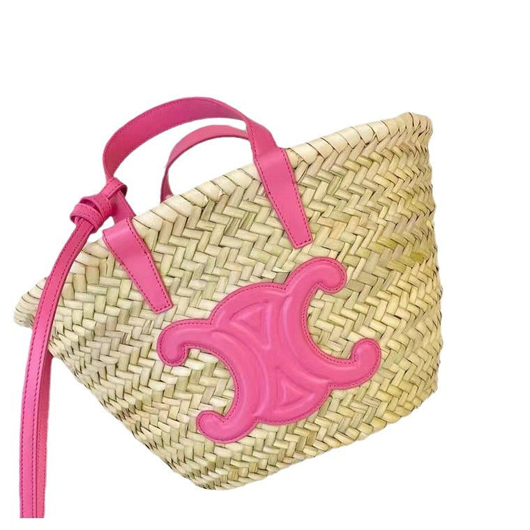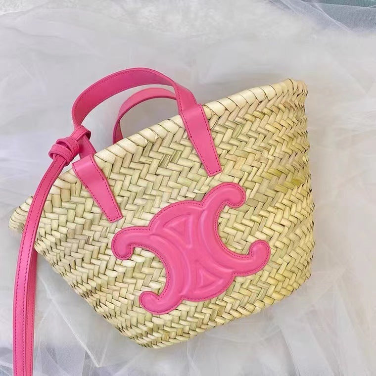 进口棕榈叶编织草菜篮子度假手提风购物袋休闲百搭夏季新复古斜挎