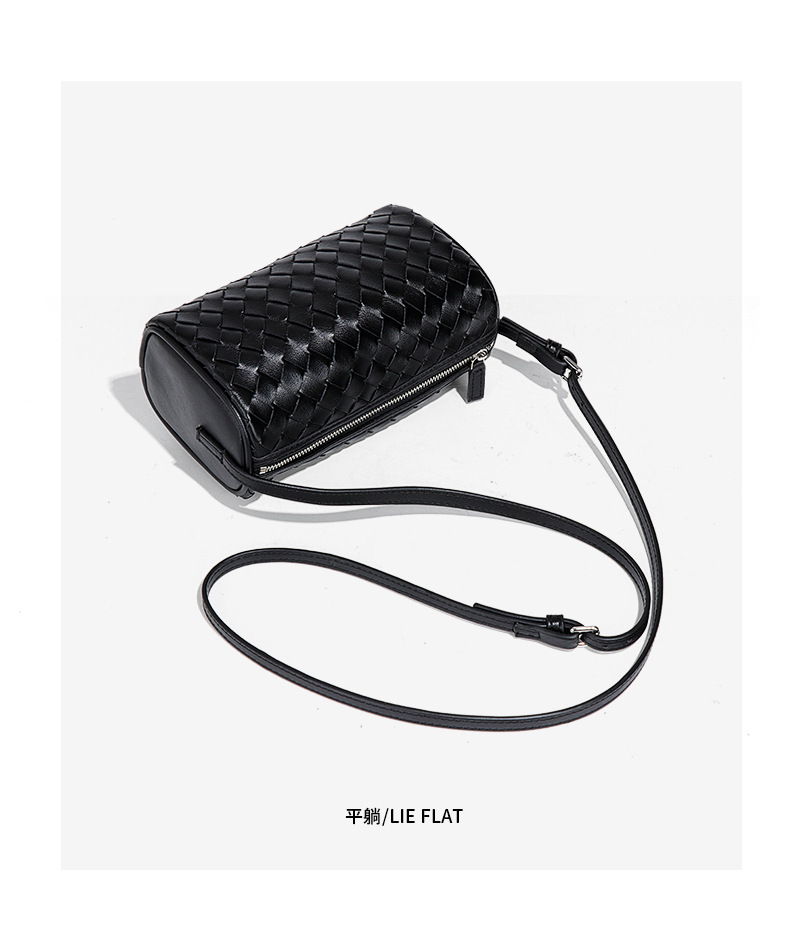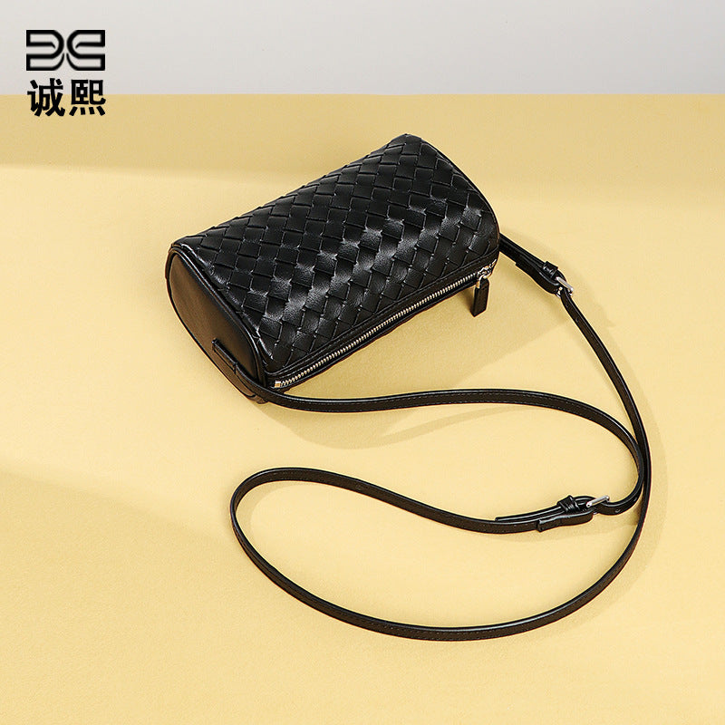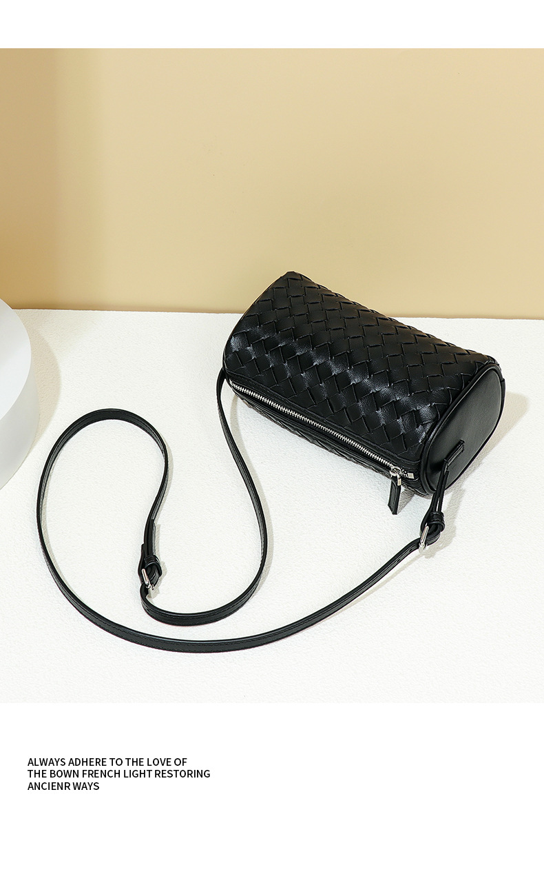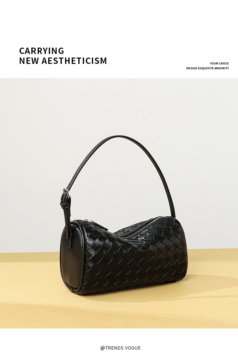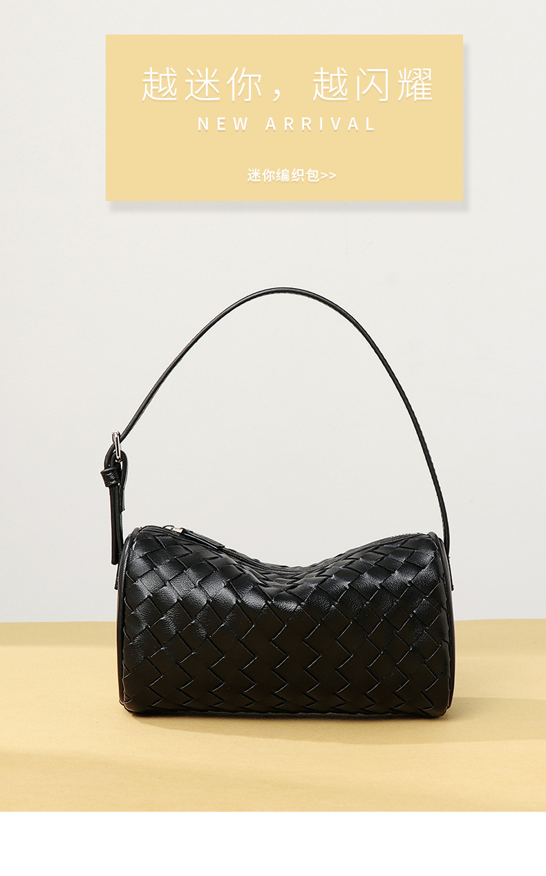 迷你新款手工编织女包轻便百搭手提圆筒相机包单肩斜挎腋下枕头包