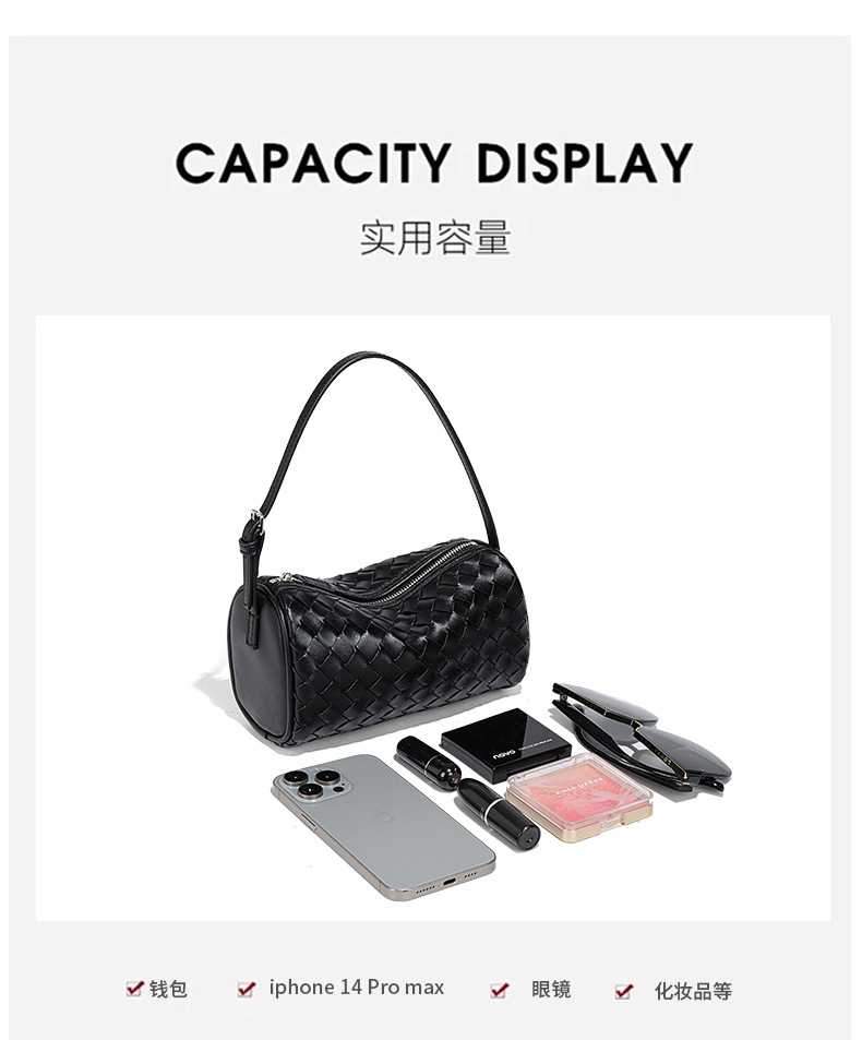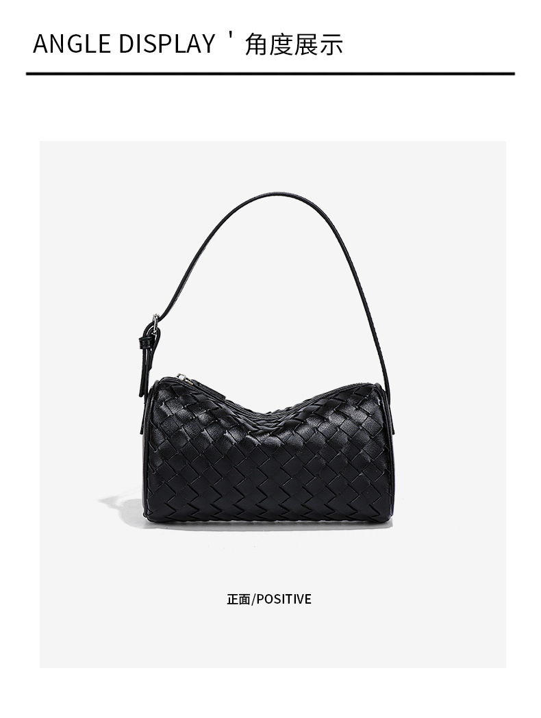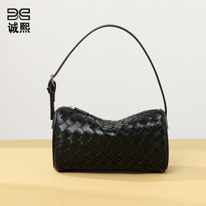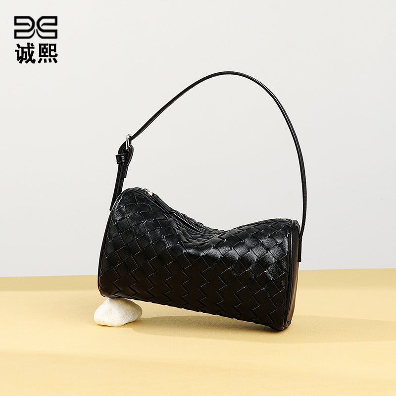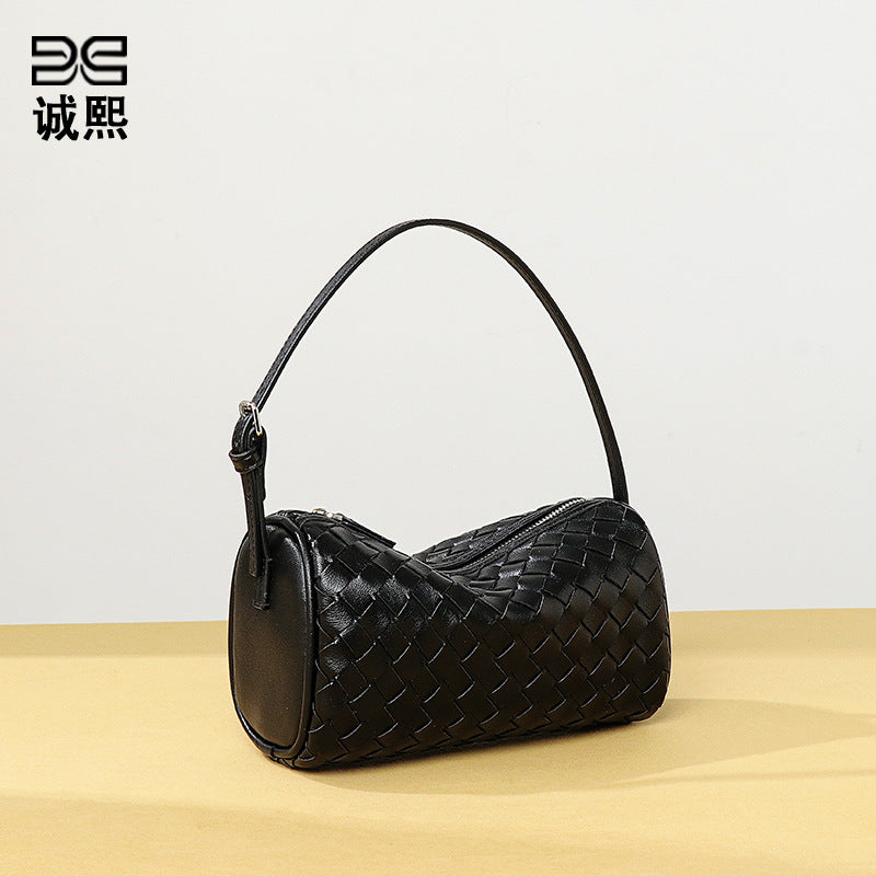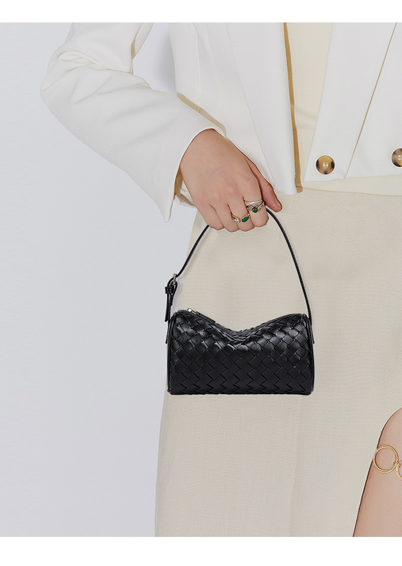 迷你新款手工编织女包轻便百搭手提圆筒相机包单肩斜挎腋下枕头包