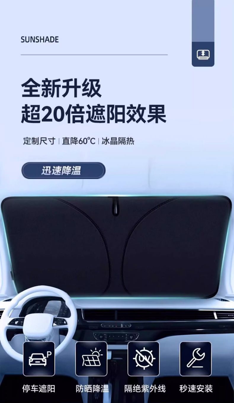 适用极氪ZEEKR 001/007/009/X汽车遮阳伞帘冰晶防晒隔热前挡便携