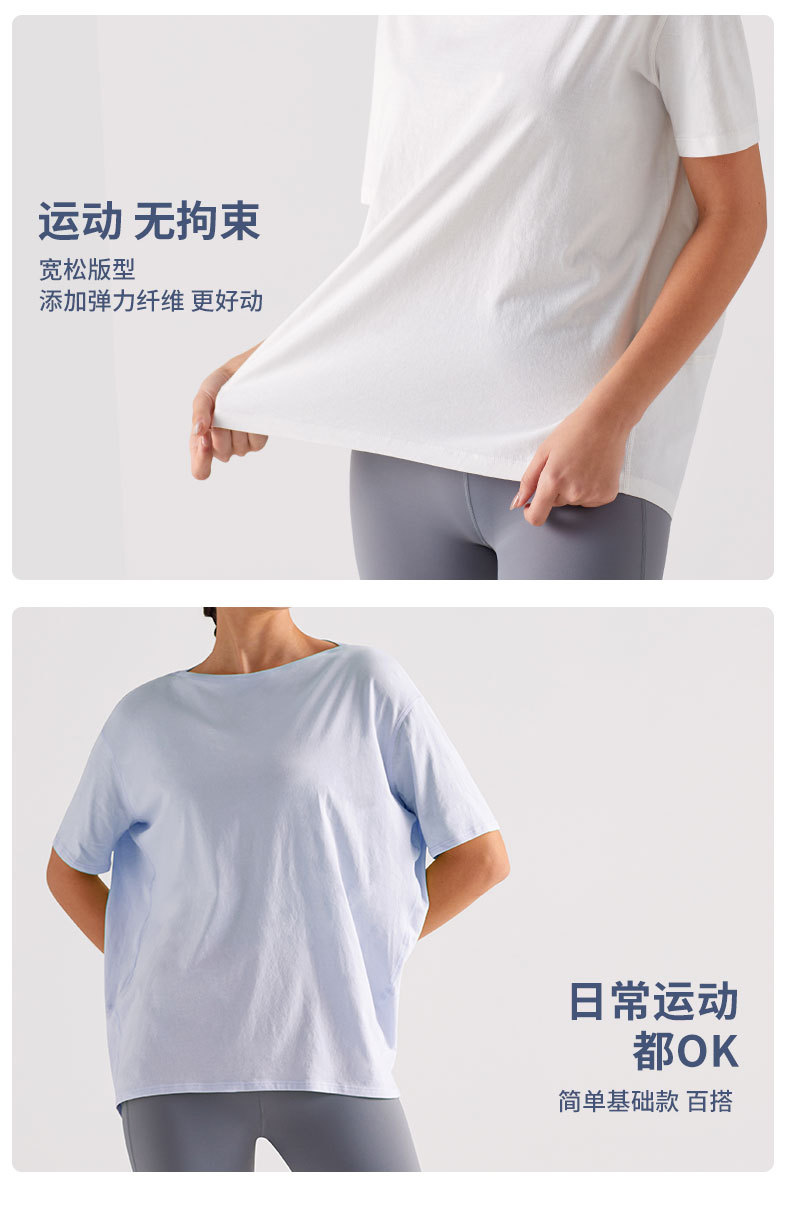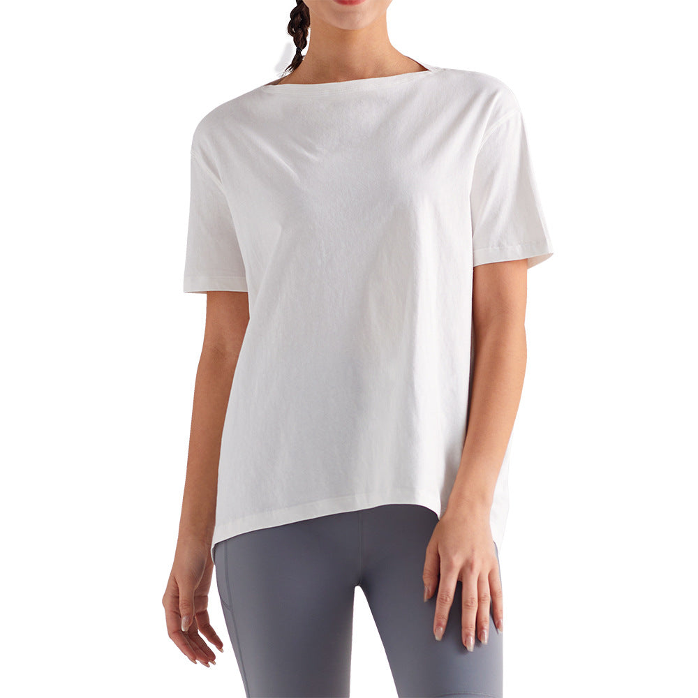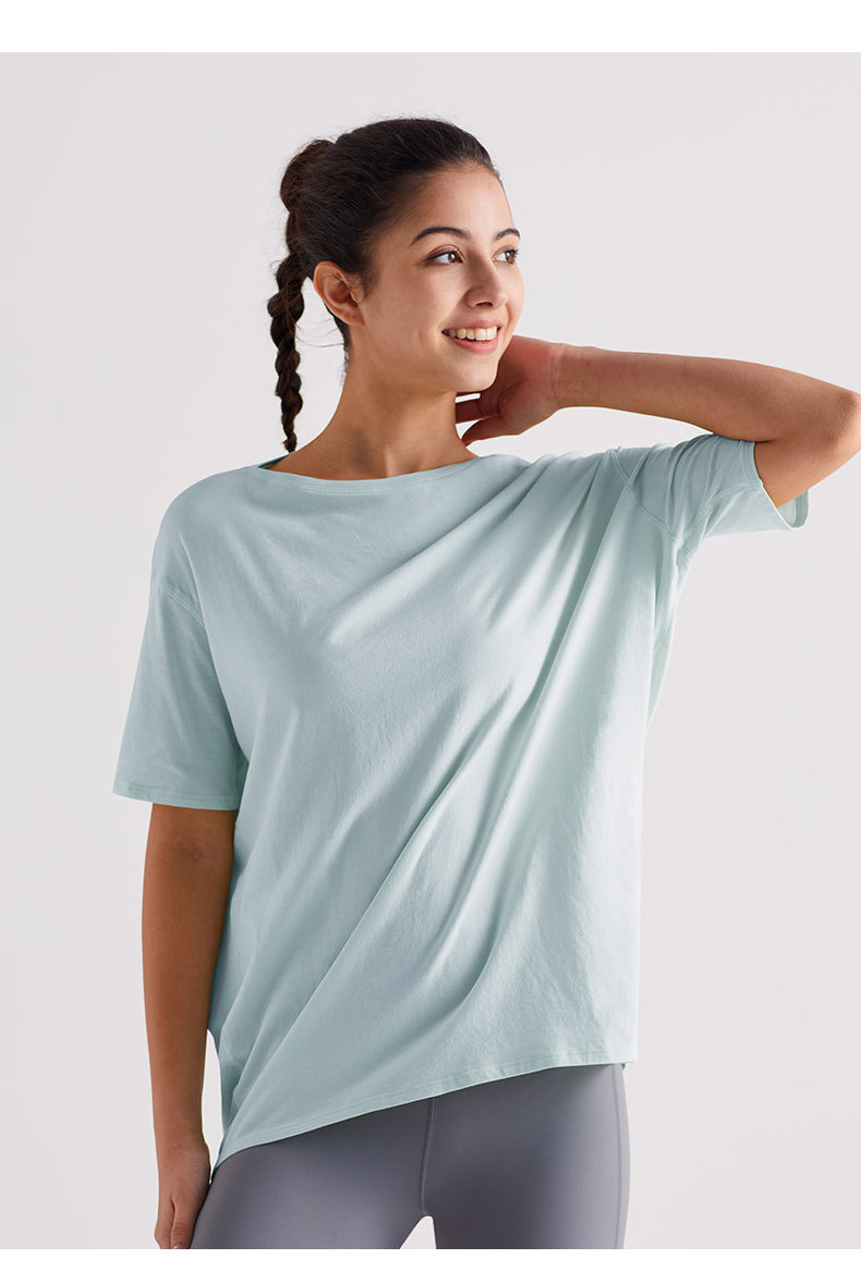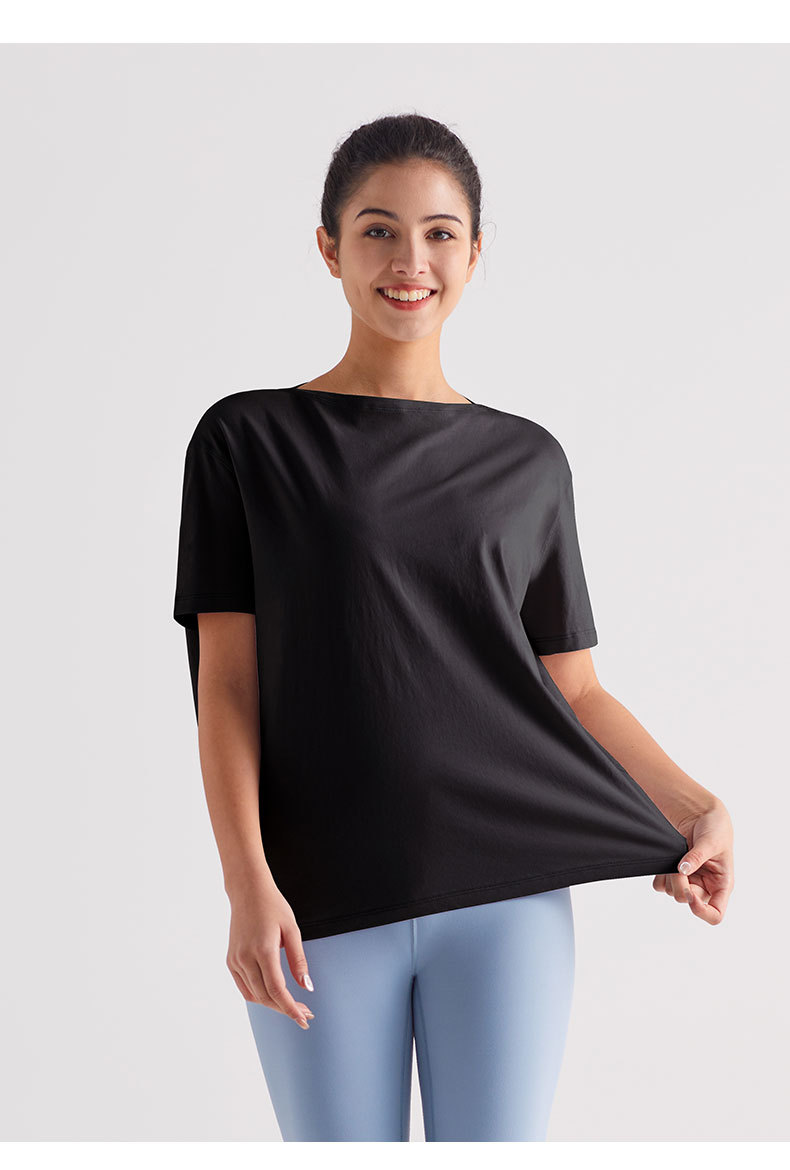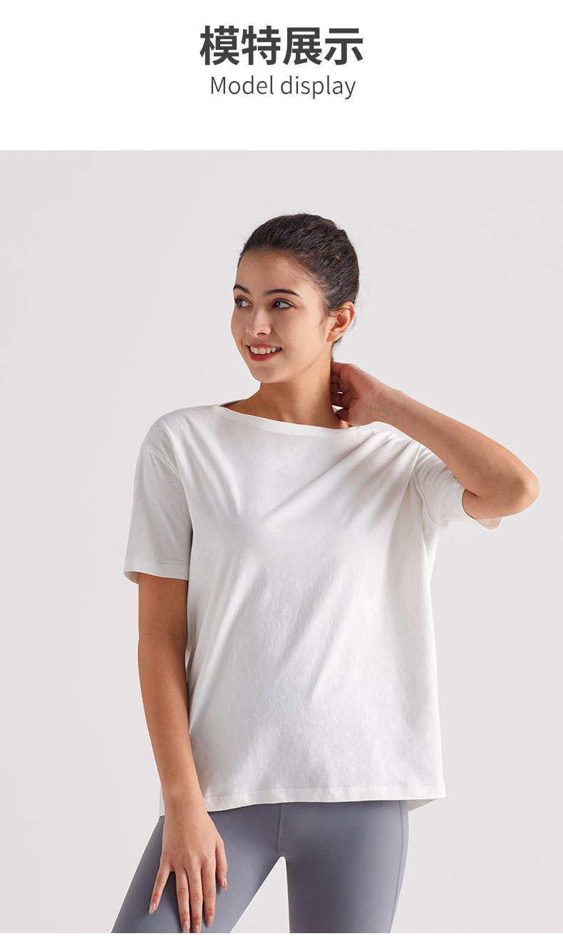 速干运动短袖女夏季宽松纯色瑜伽罩衫健身服一字领T恤休闲上衣