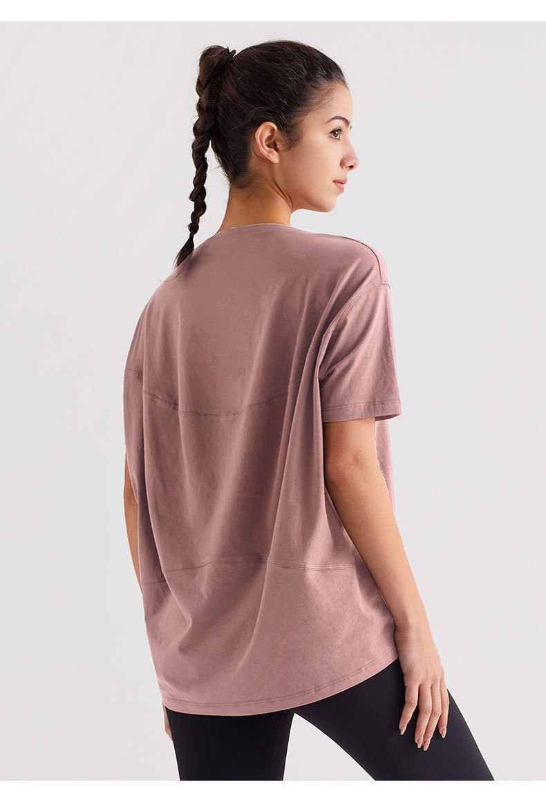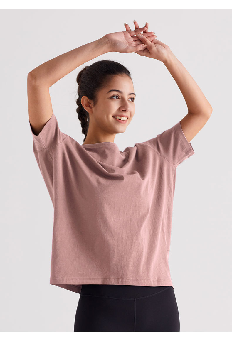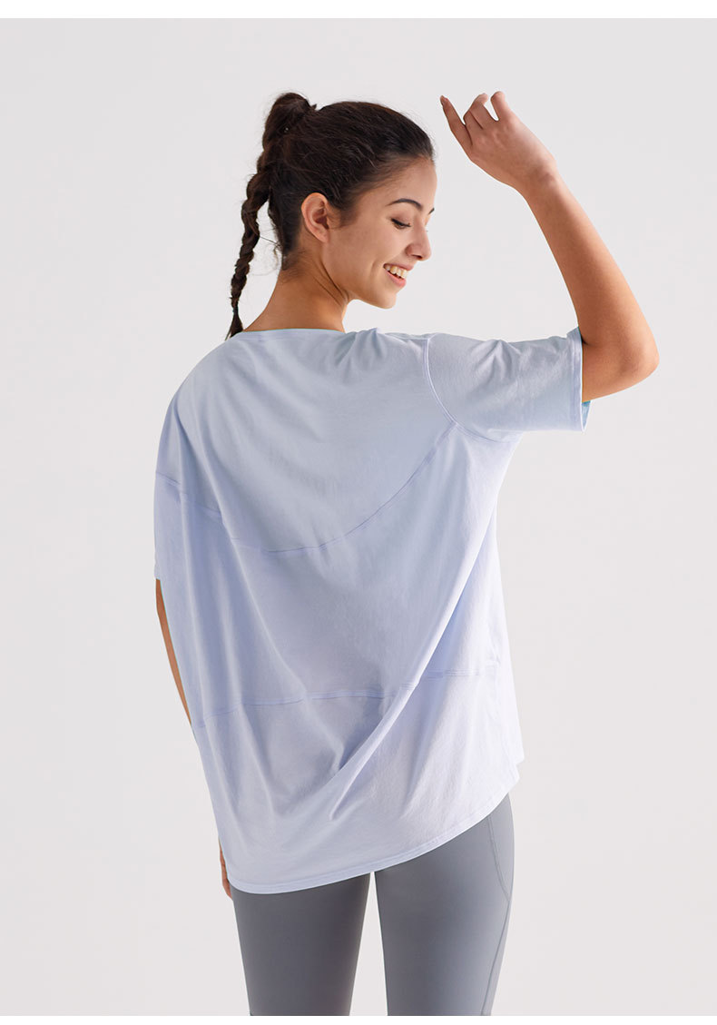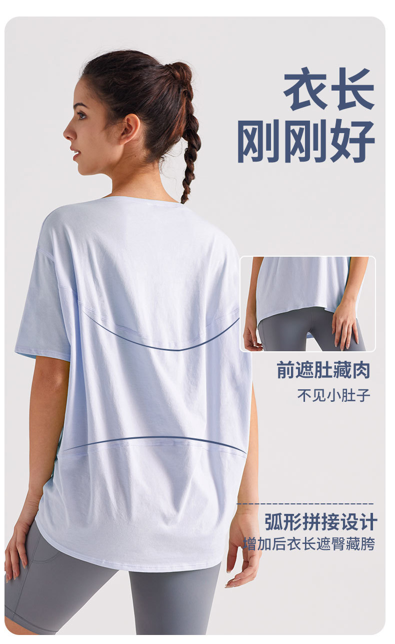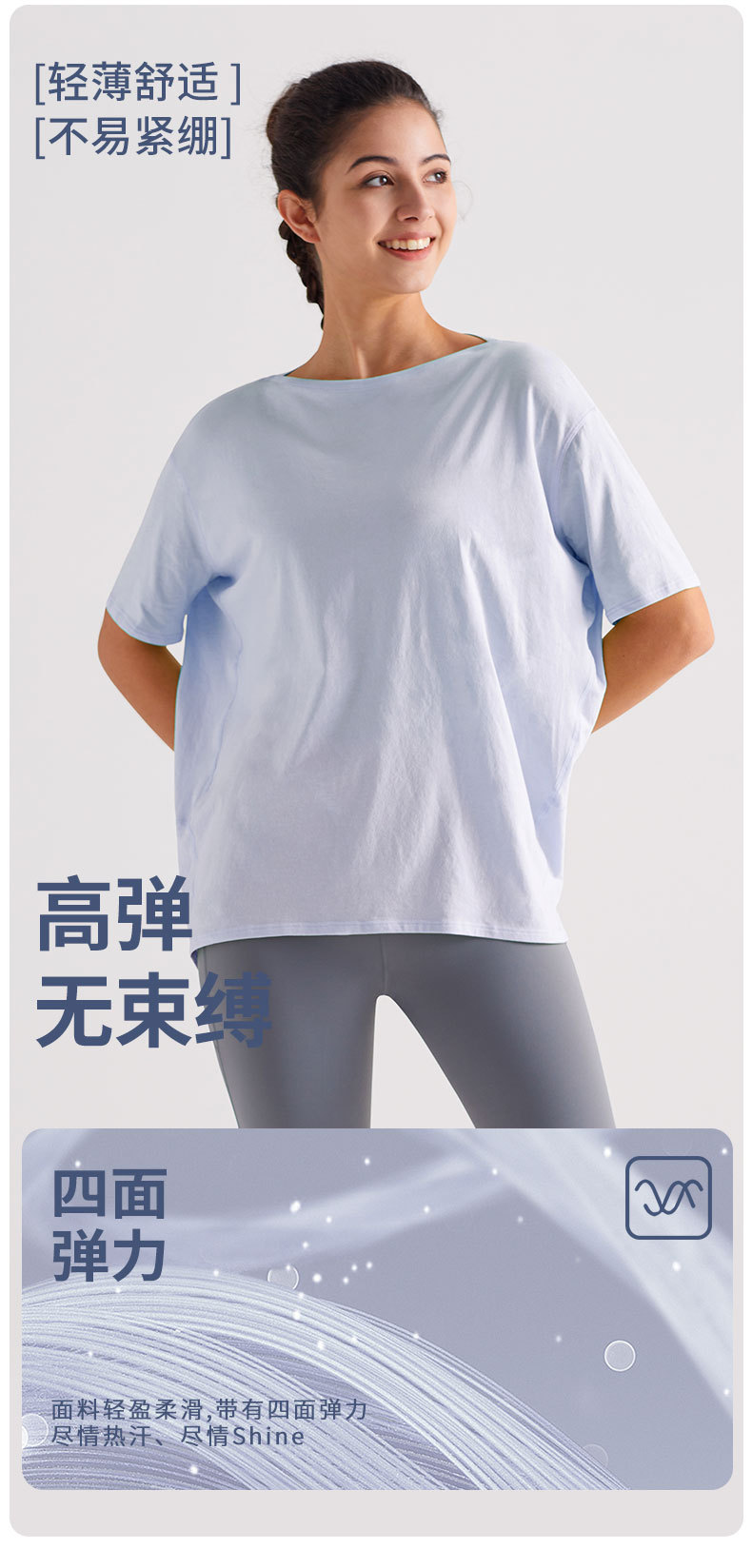 速干运动短袖女夏季宽松纯色瑜伽罩衫健身服一字领T恤休闲上衣
