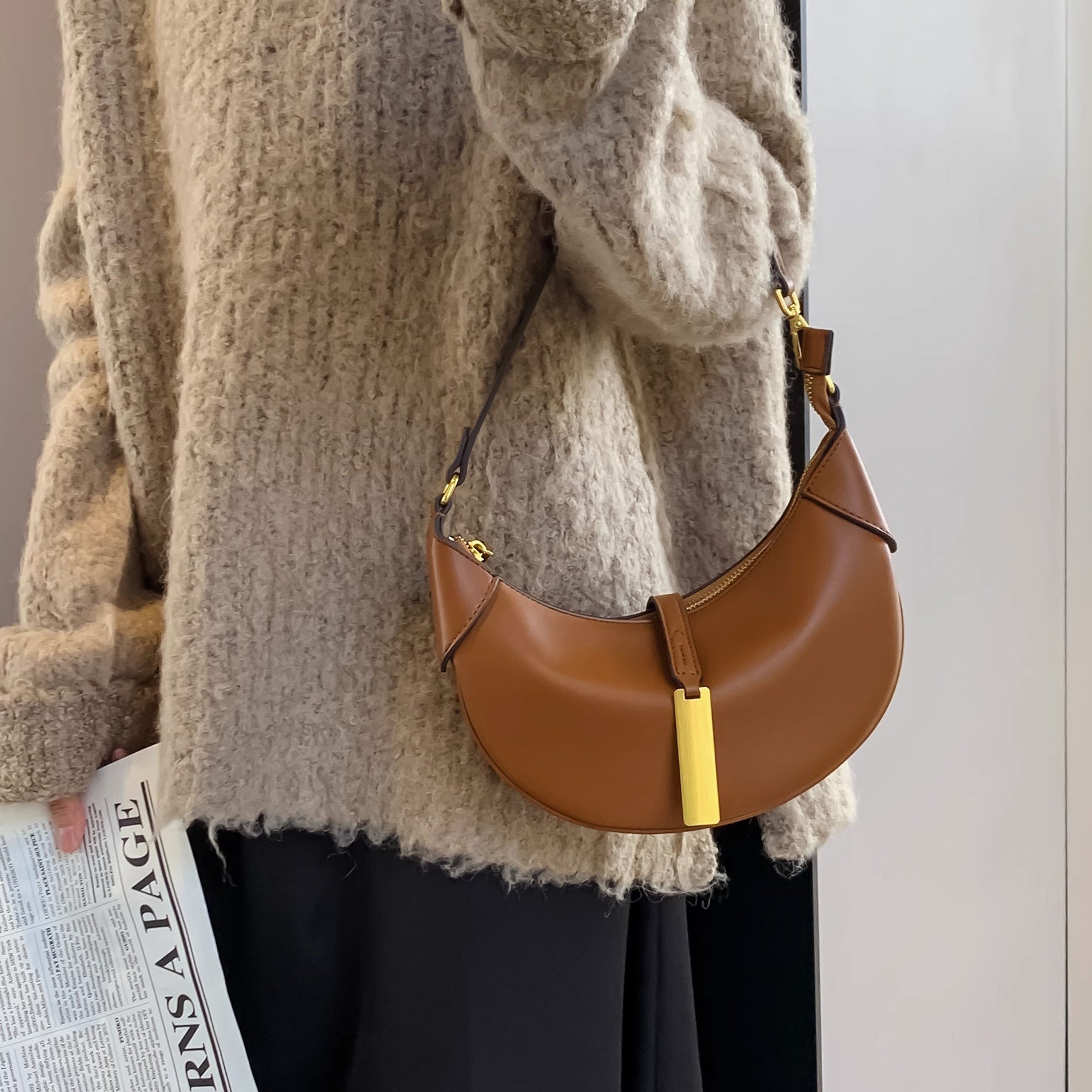 郑秀晶ins潮月牙包包马鞍女包斜挎单肩手提高级感腋下可颂包代发