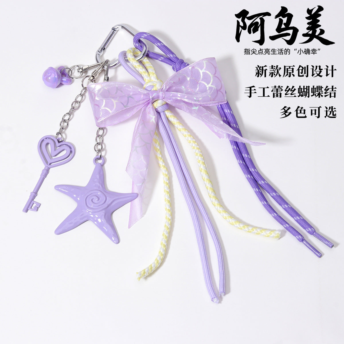 量大价优现货爱心钥匙蕾丝蝴蝶结吊孔兔子铃铛编织绳包挂钥匙扣