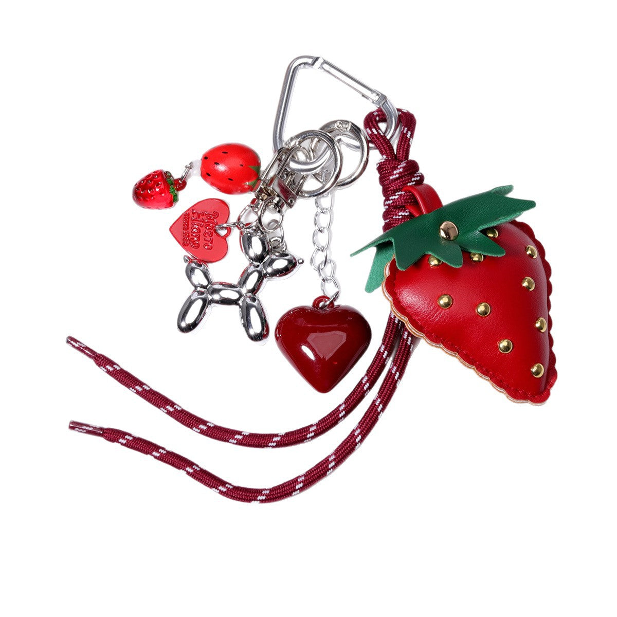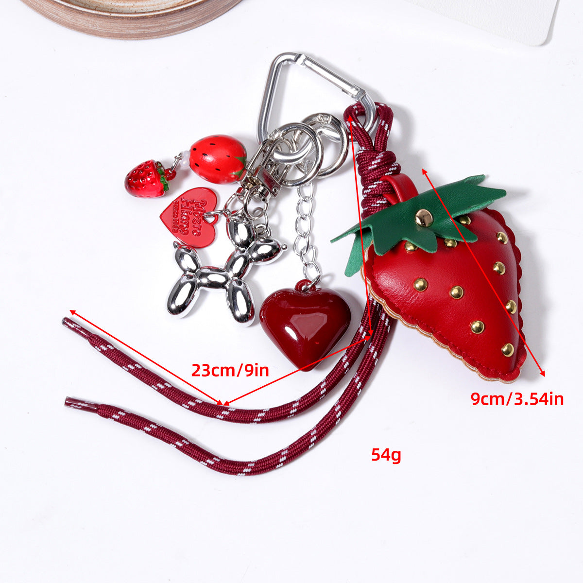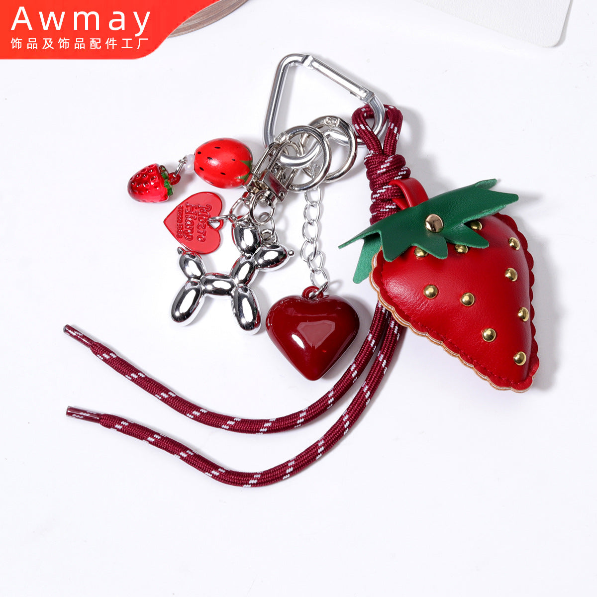 量大价优现货红色草莓包挂金属动物狗编织绳钥匙链钥匙扣包挂