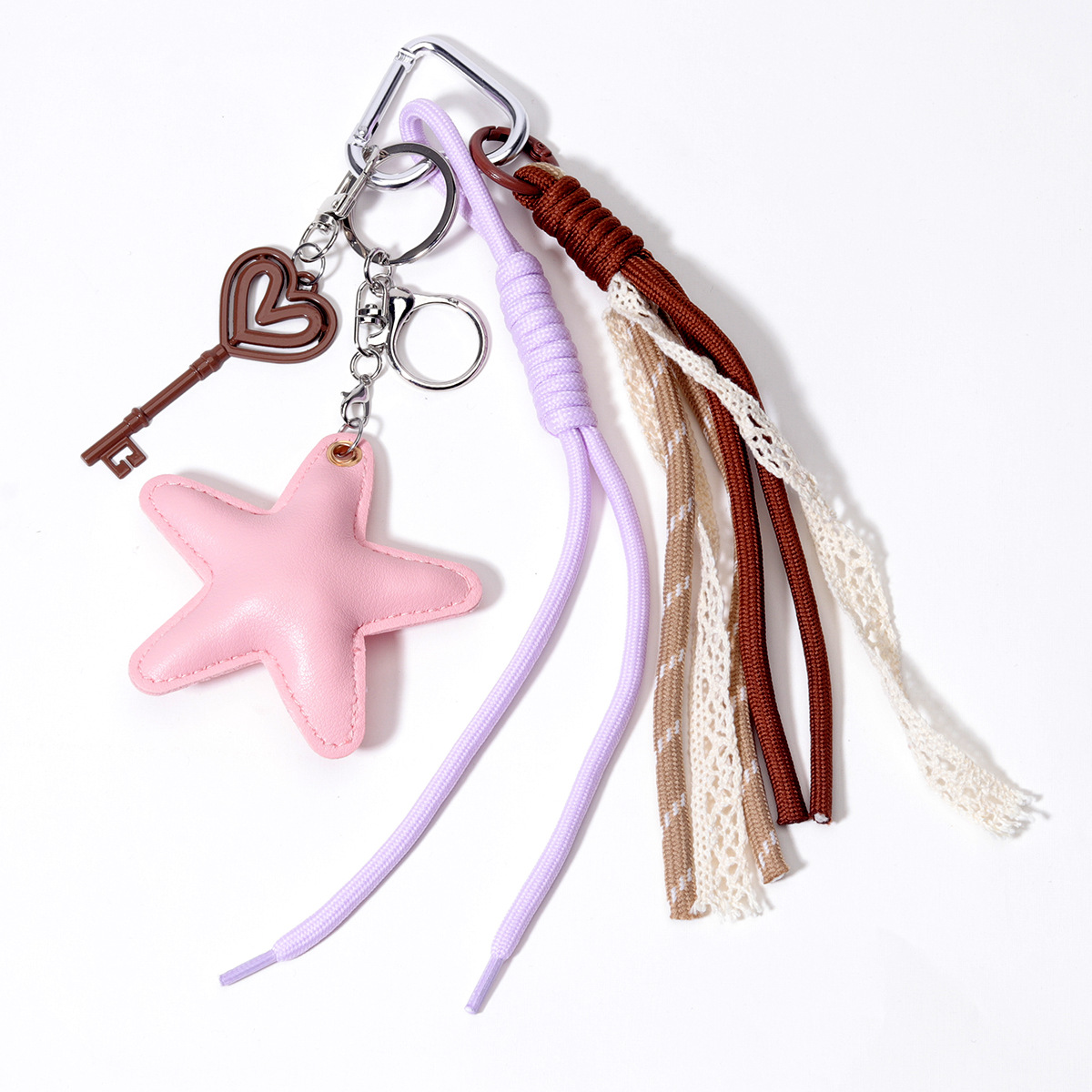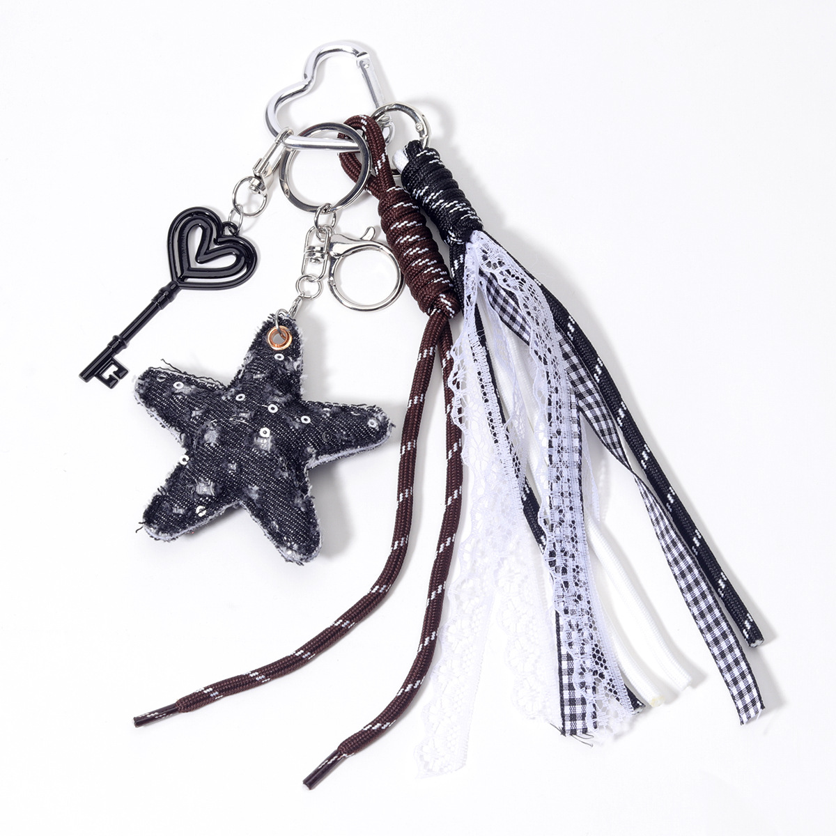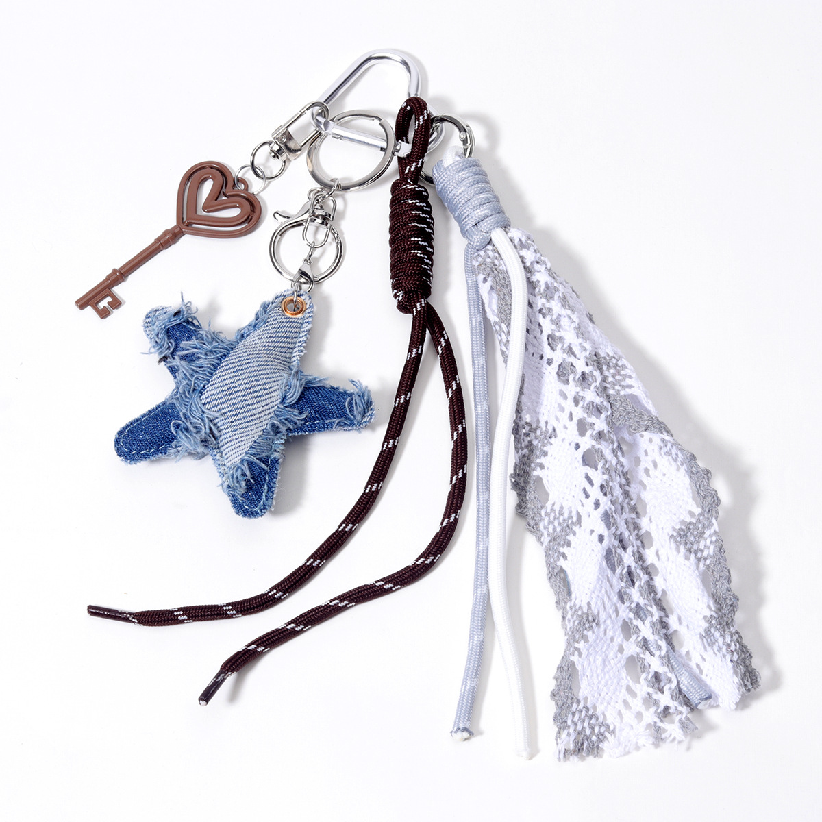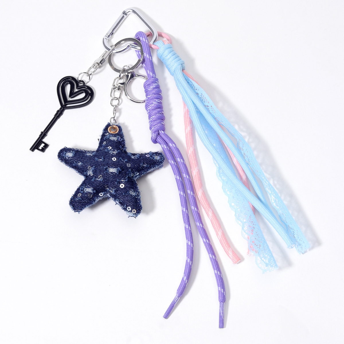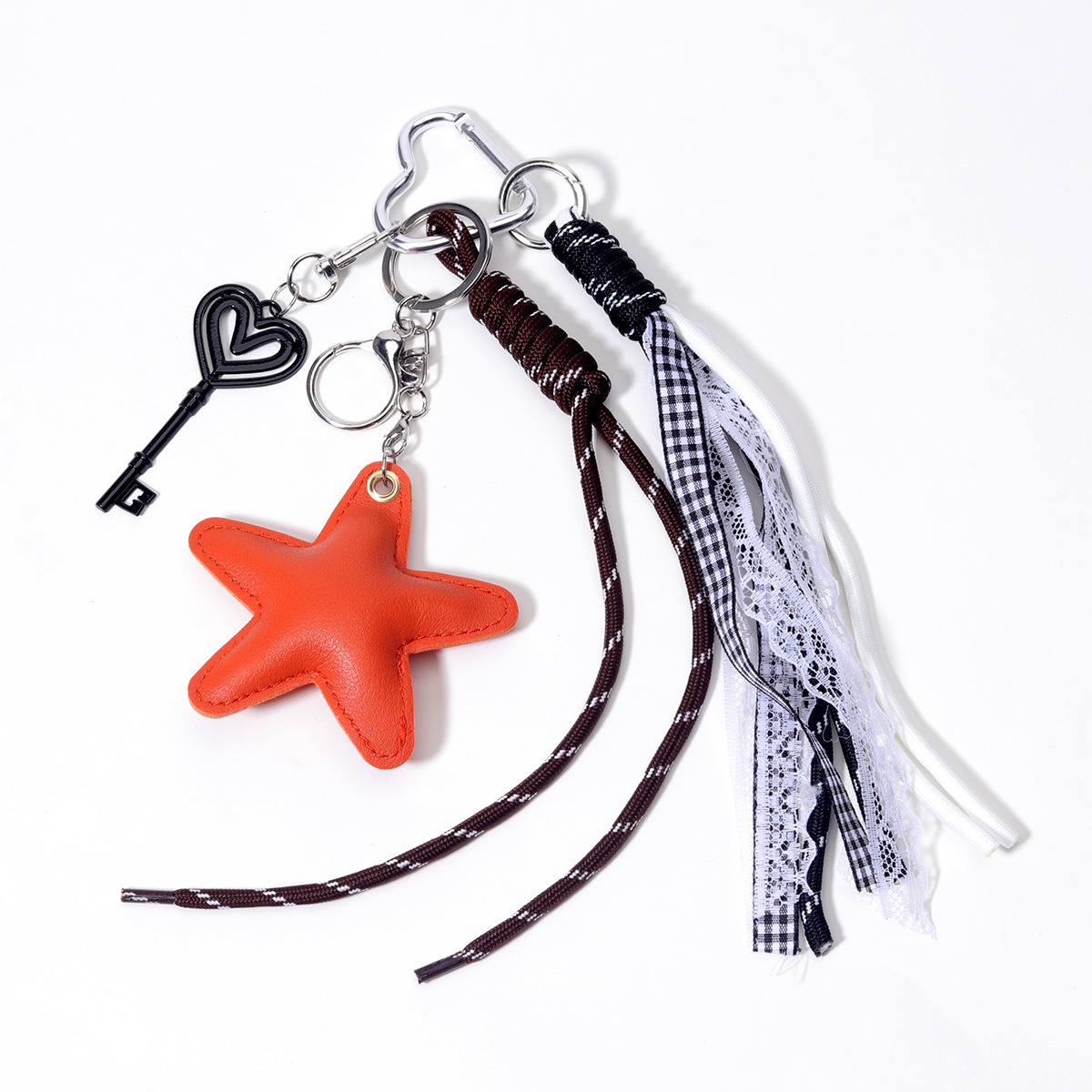 量大价优跨境直供五角星PU皮革包挂牛仔布挂件包包挂吊饰钥匙扣
