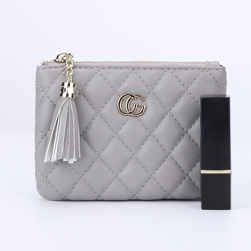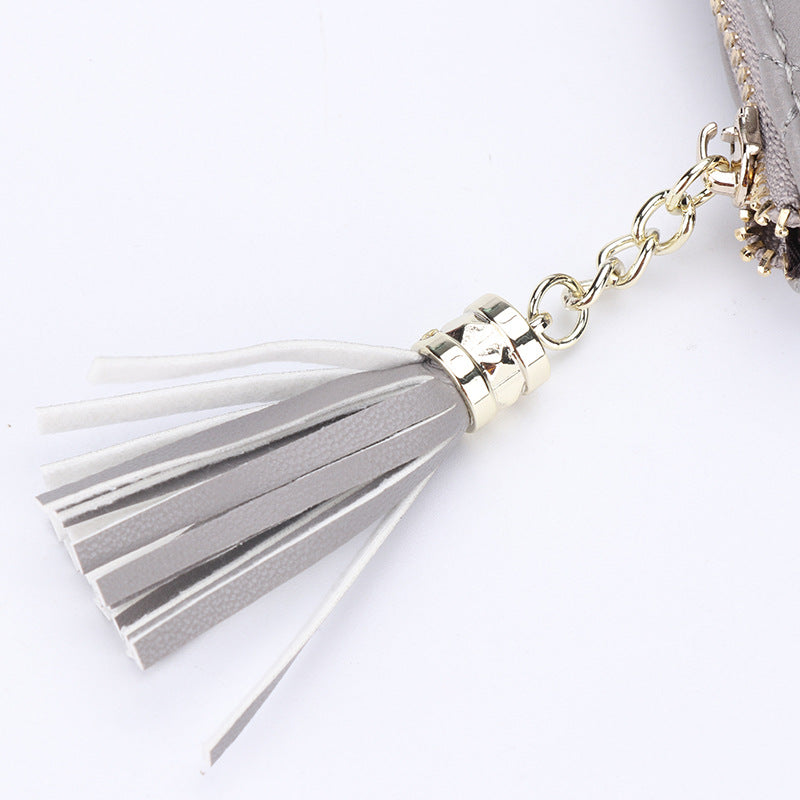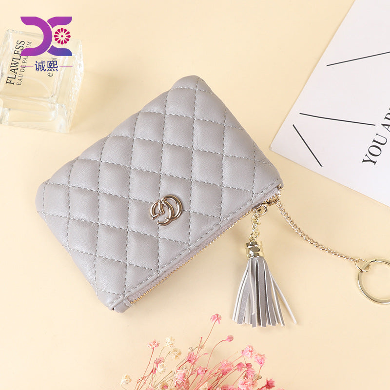 钱包女 2024新款韩版时尚短款菱格流苏手拿包零钱包 卡包一件代发