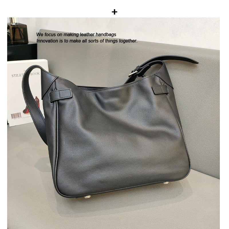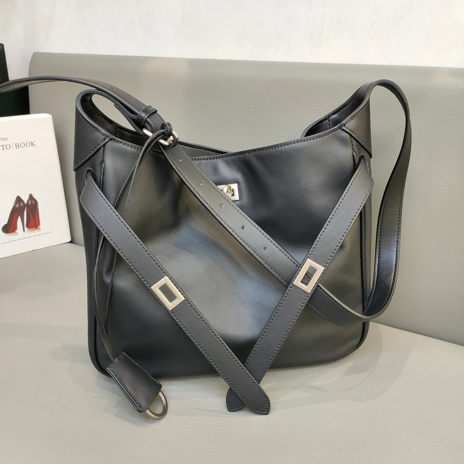 锁扣托特包水桶包头层牛皮大容量通勤单肩腋下斜挎高级感真皮女包