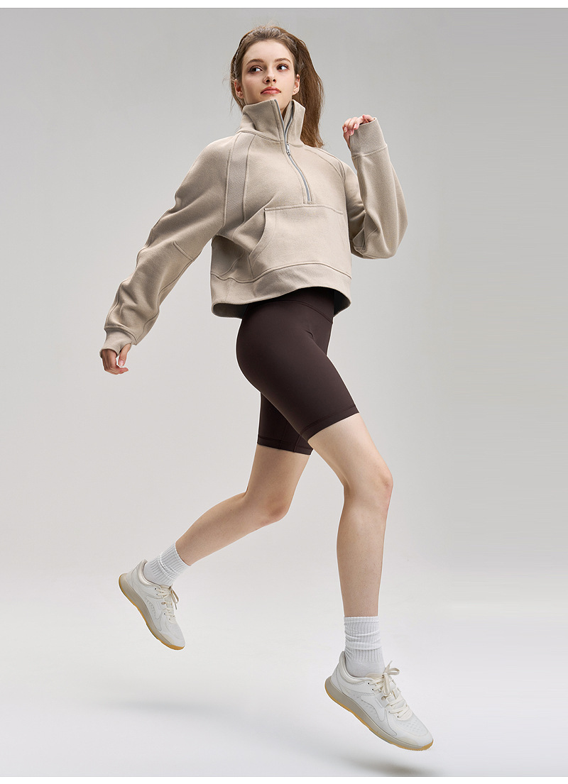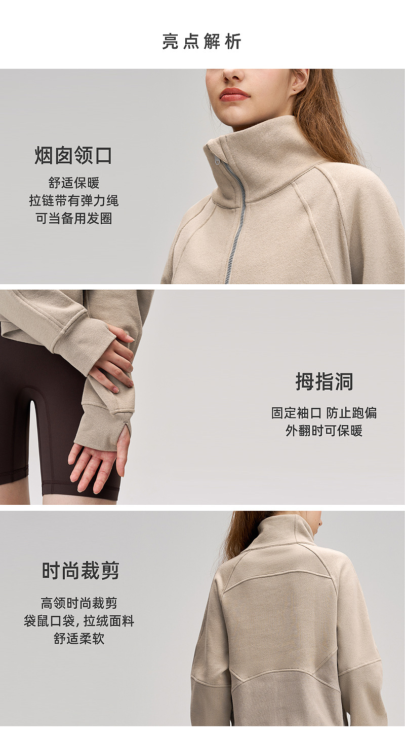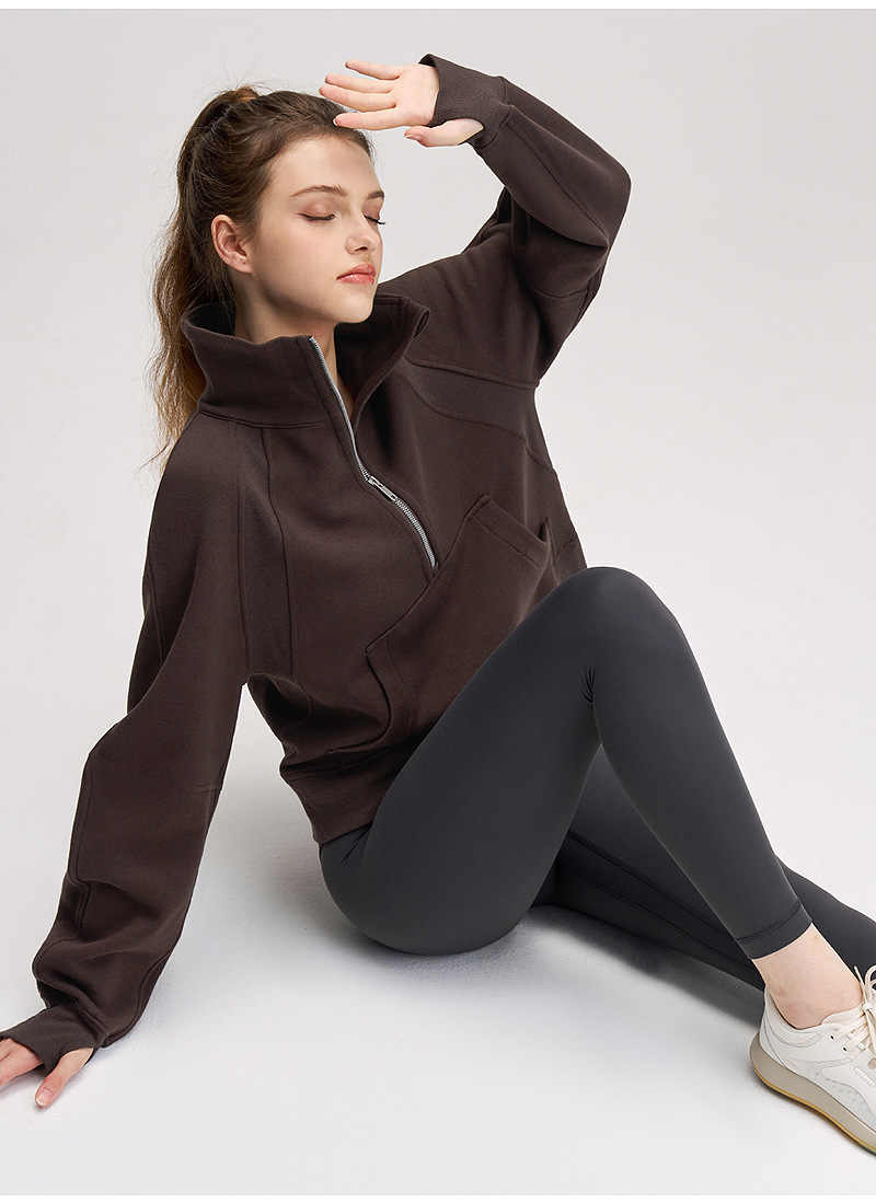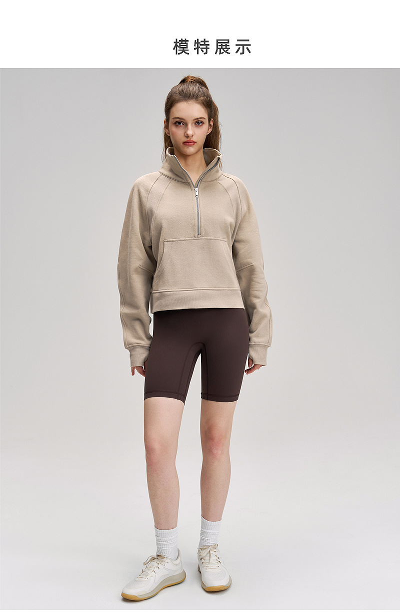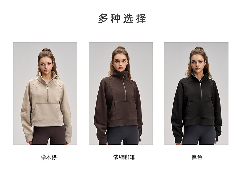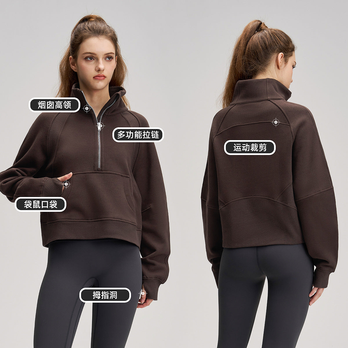 防风运动外套女加绒加厚半拉链宽松瑜伽健身服棉lulu烟囱高领卫衣