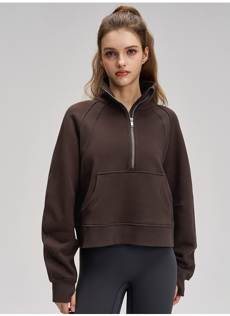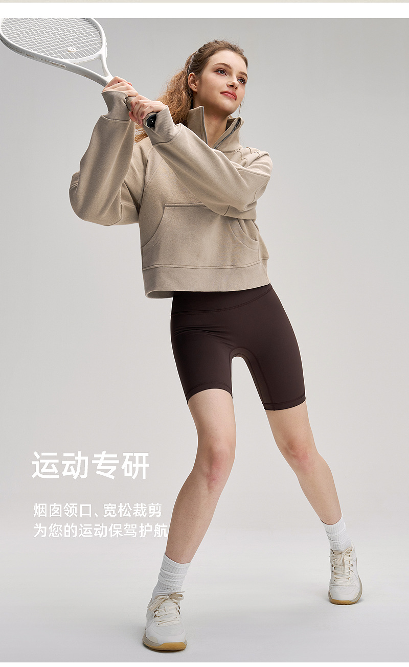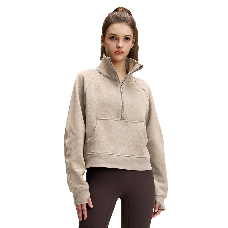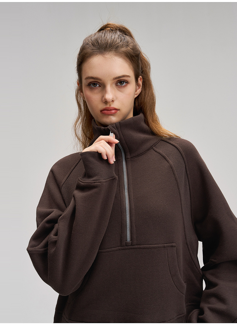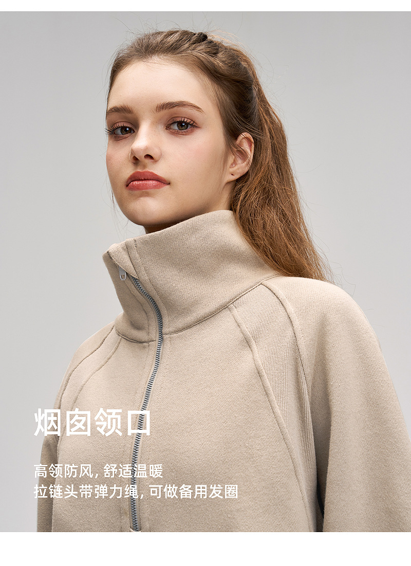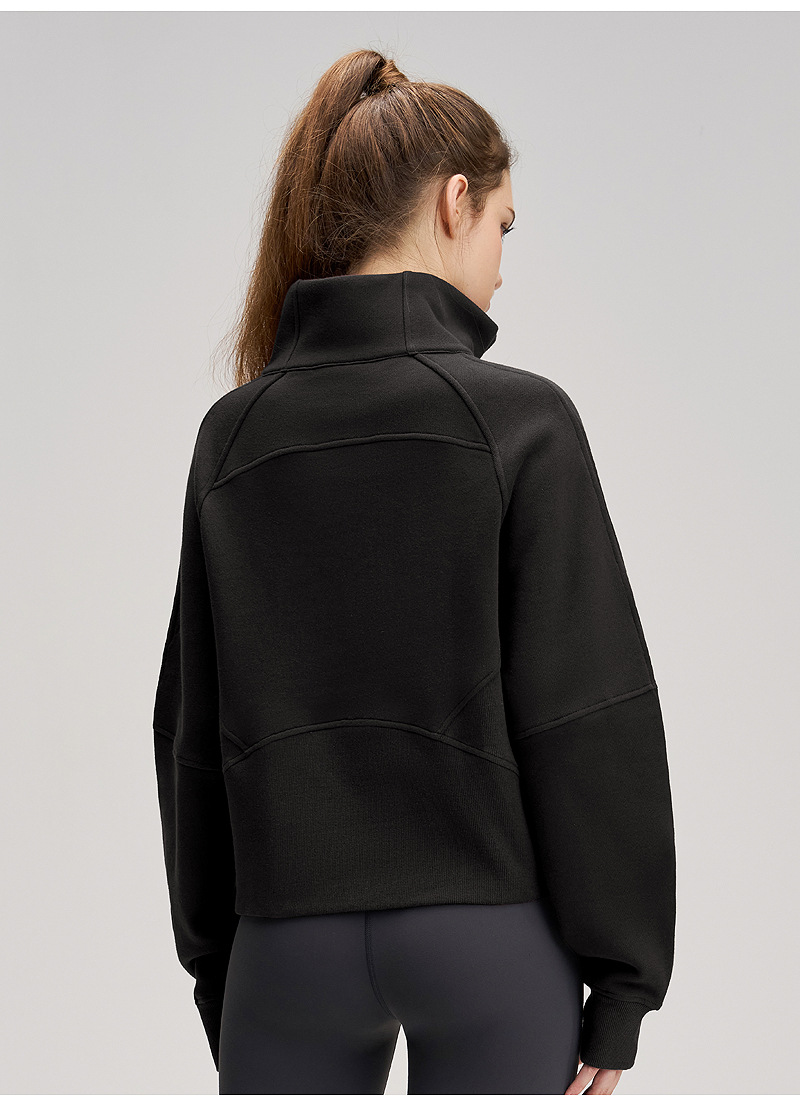 防风运动外套女加绒加厚半拉链宽松瑜伽健身服棉lulu烟囱高领卫衣