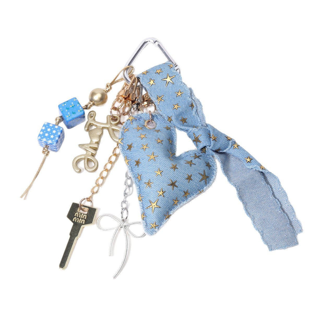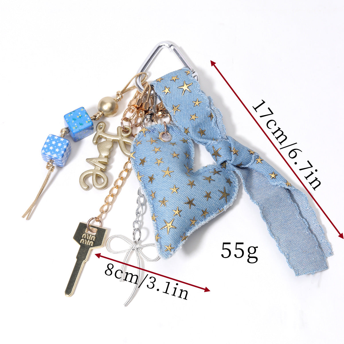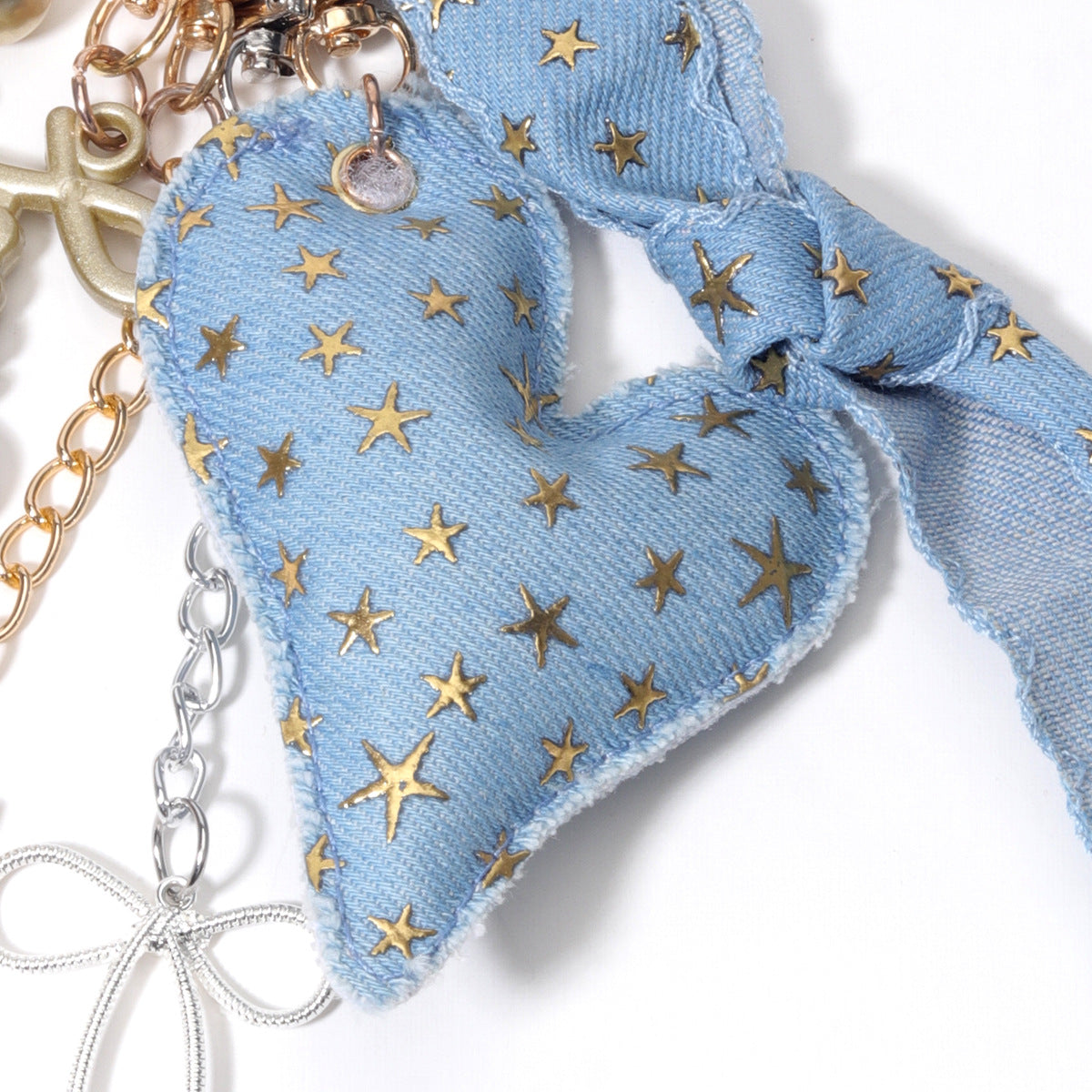 阿乌美工厂复古牛仔满天星蓝色充棉爱心高级感桃心包包挂饰现货