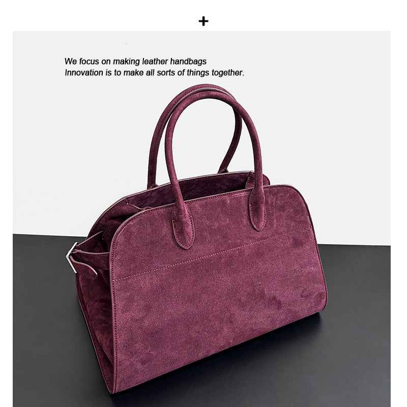 韩国小众董洁同款手提包绒面磨砂真皮托特包包女大容量复古通勤包