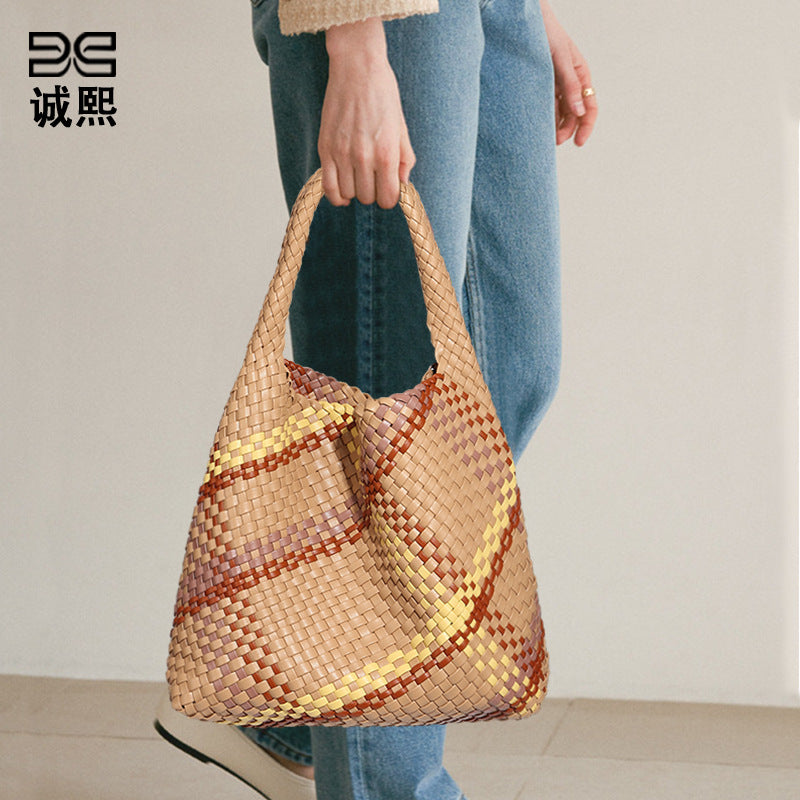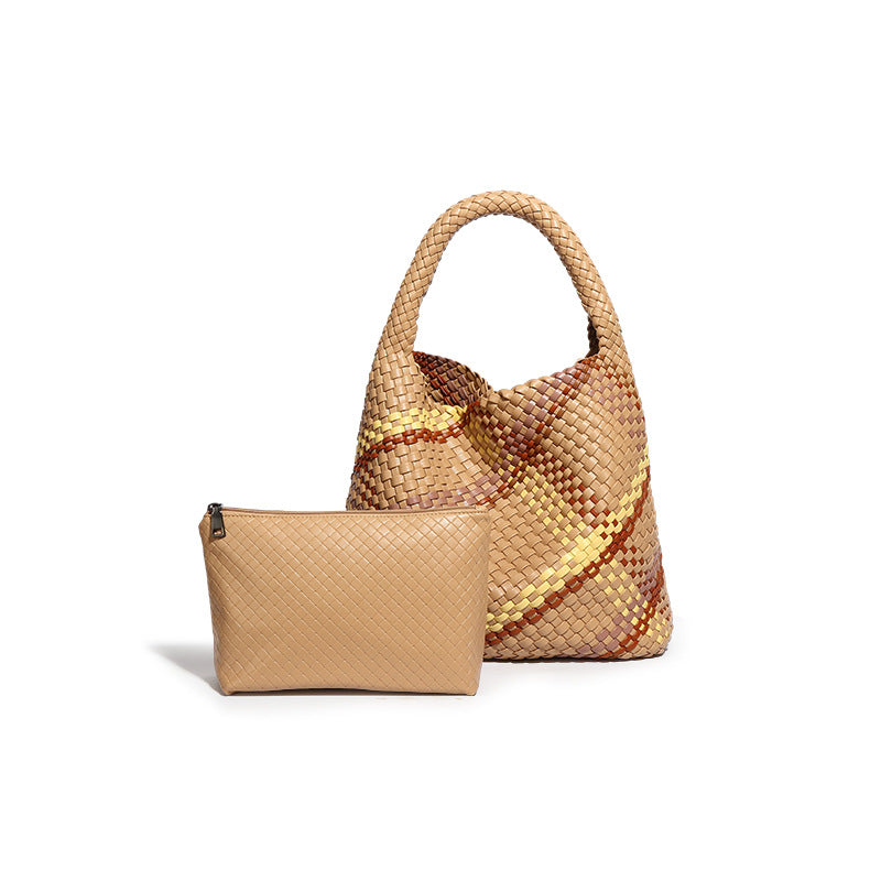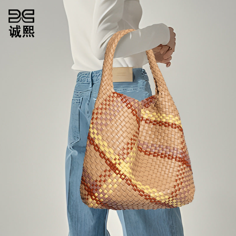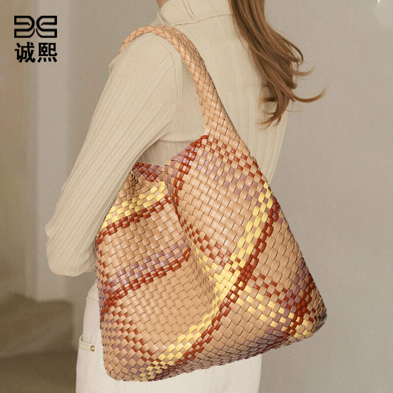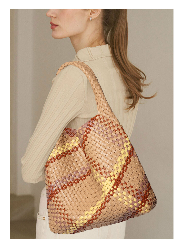 韩版女跨境单肩托特包通勤百搭腋下包大容量手拎包撞色时尚子母包