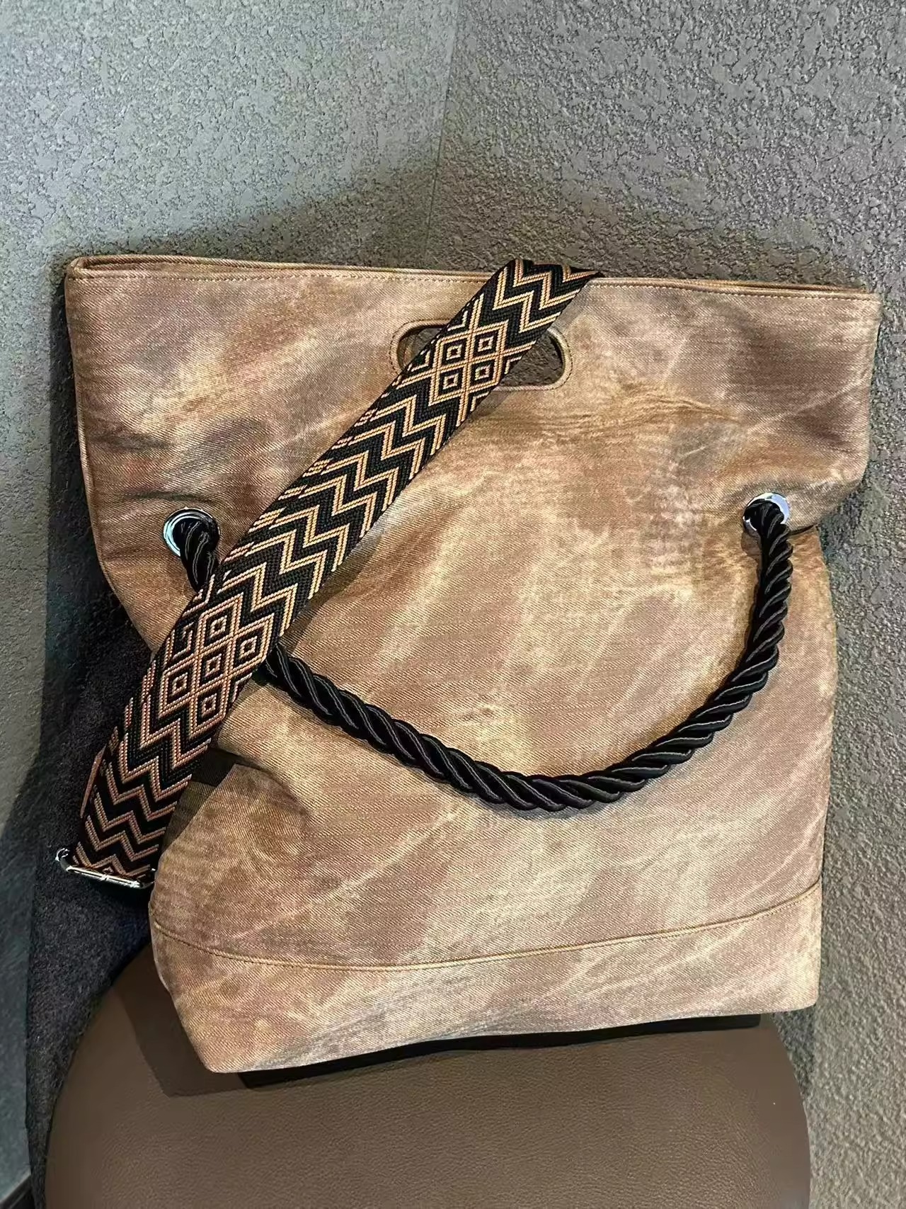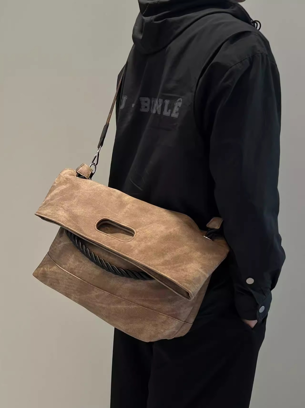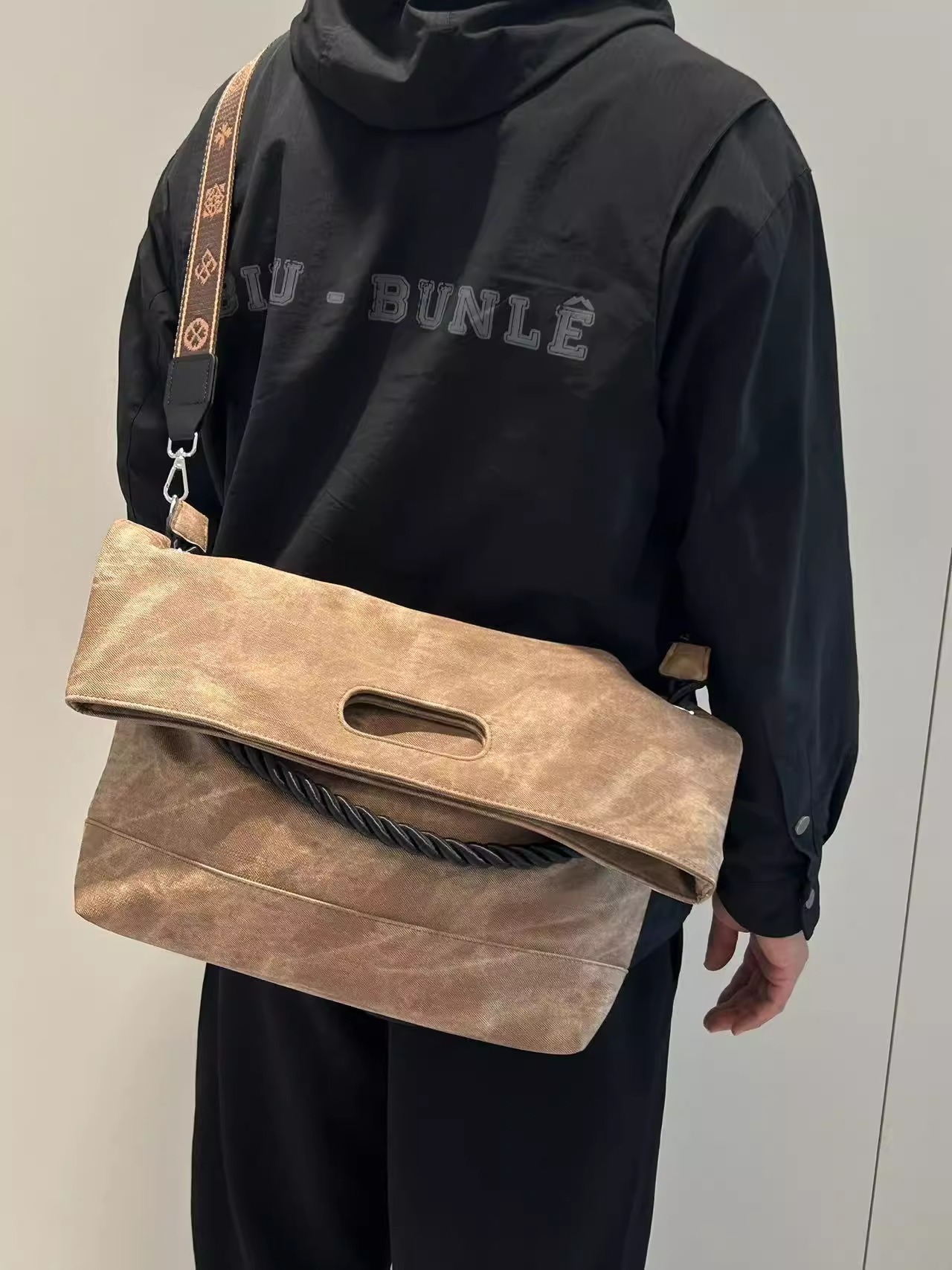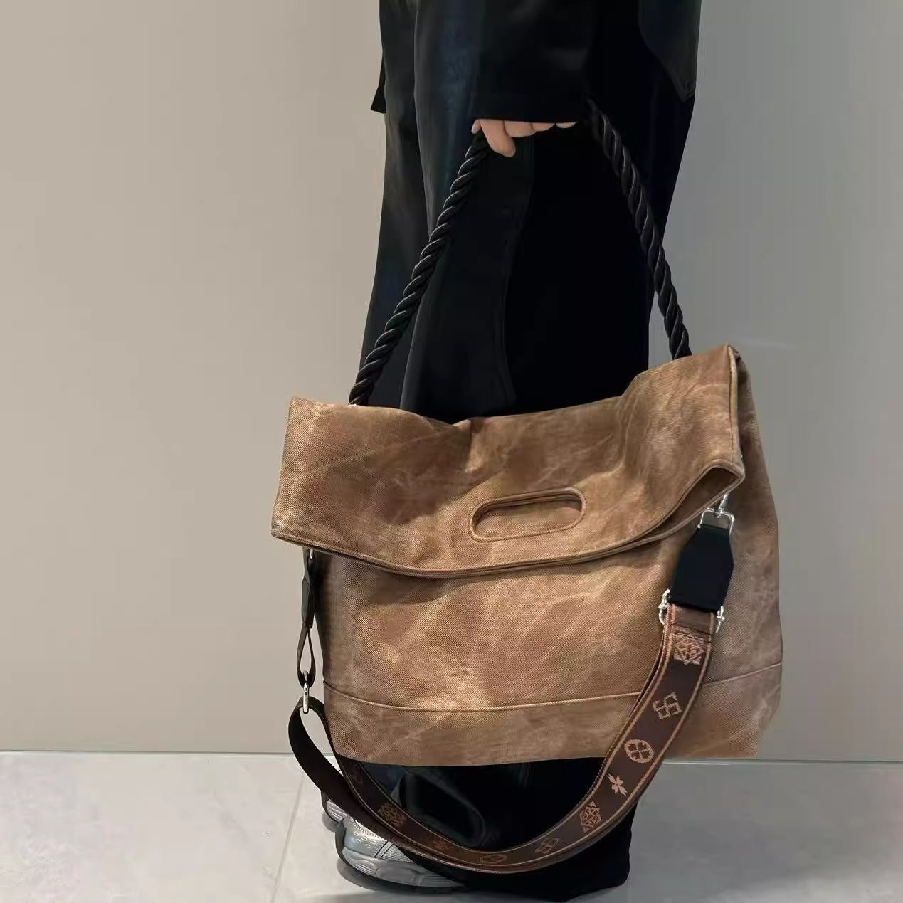 韩版扎染慵懒风软皮大容量通勤单肩包复古邮差斜跨托特包电脑包