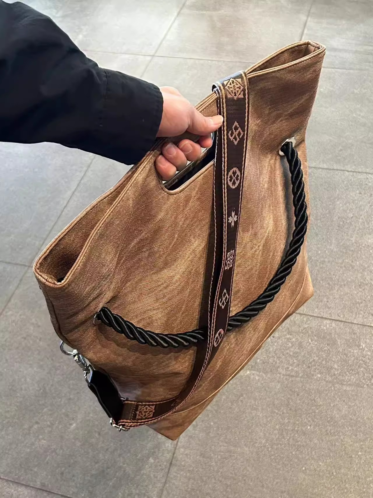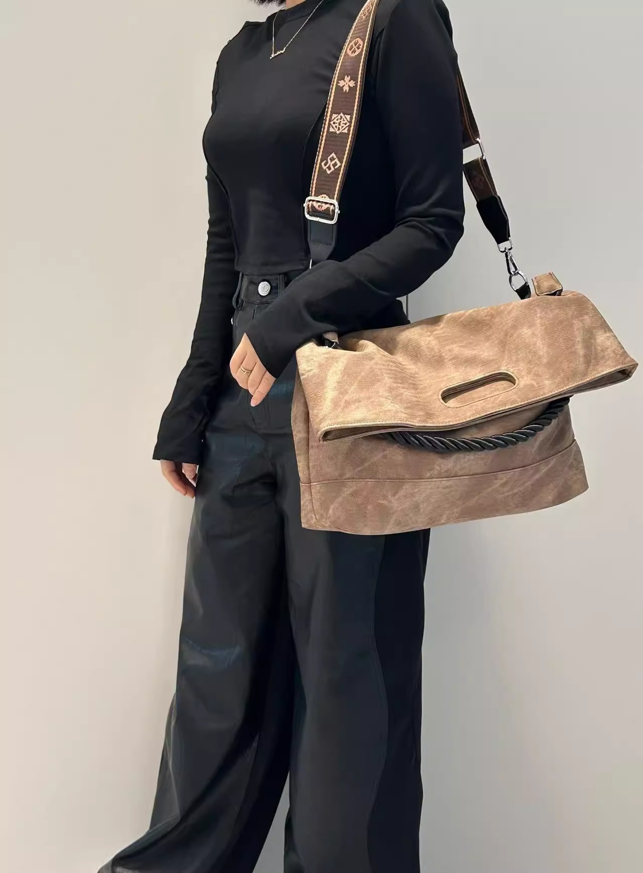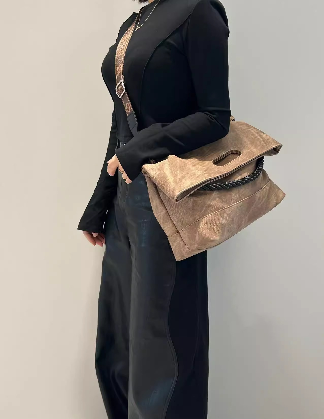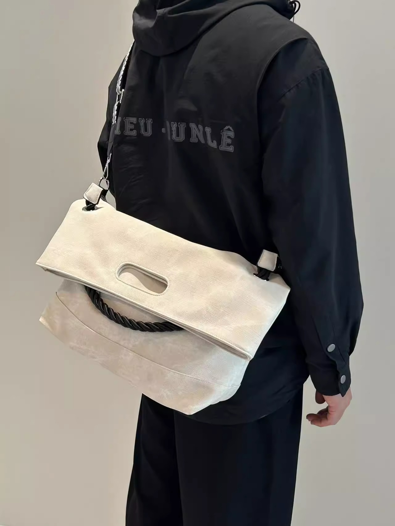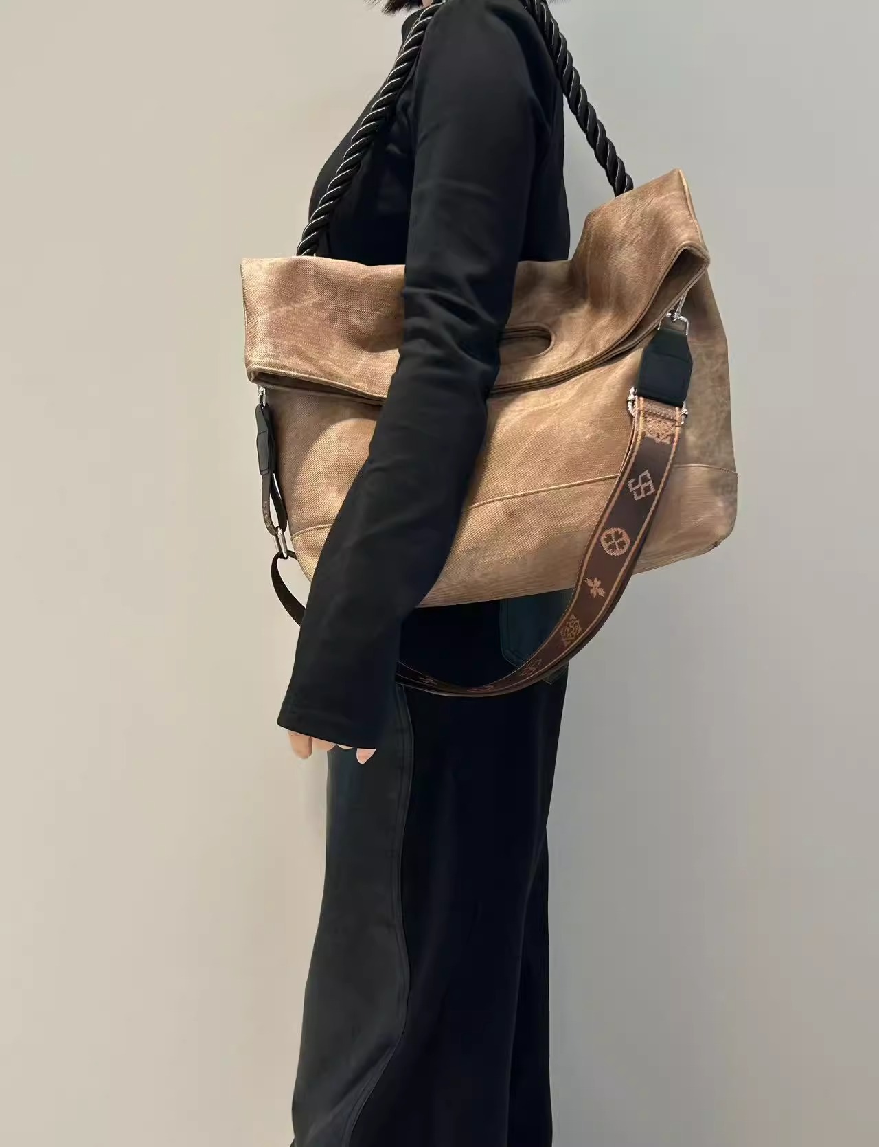 韩版扎染慵懒风软皮大容量通勤单肩包复古邮差斜跨托特包电脑包