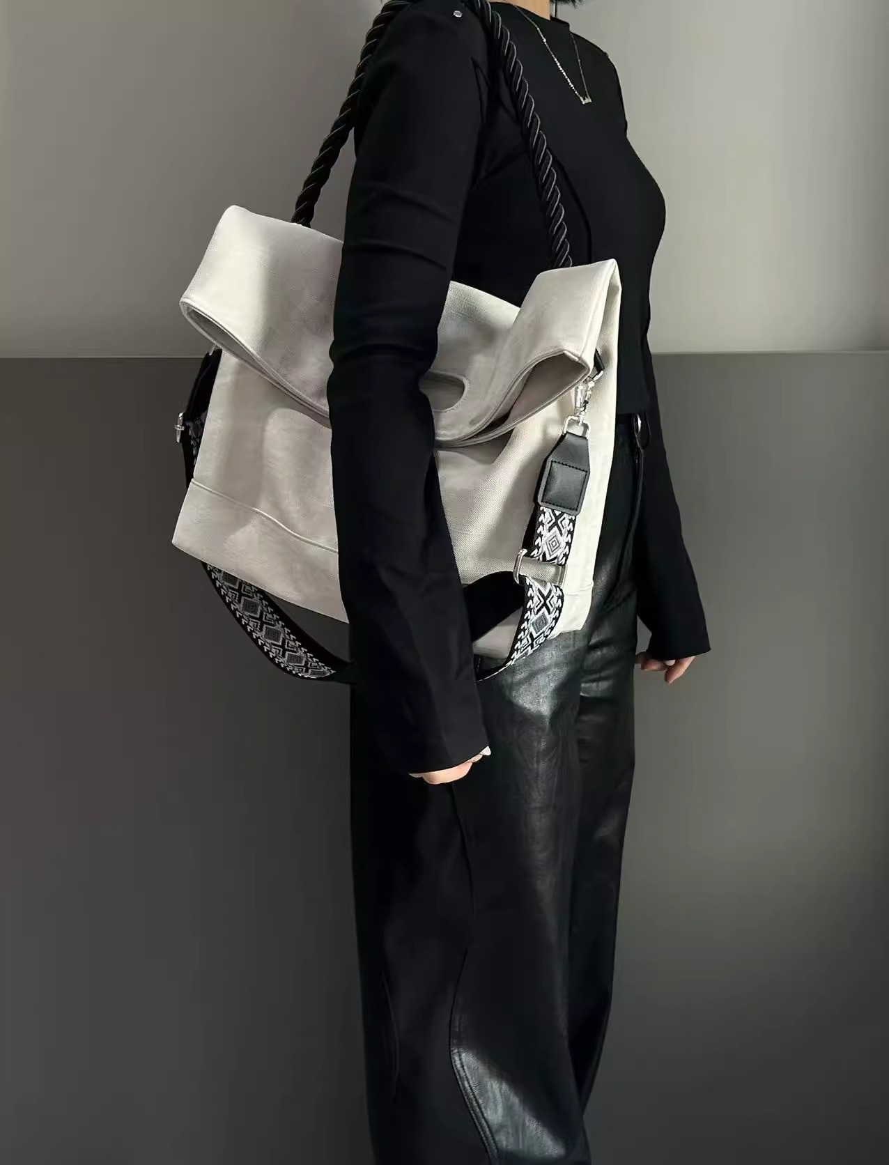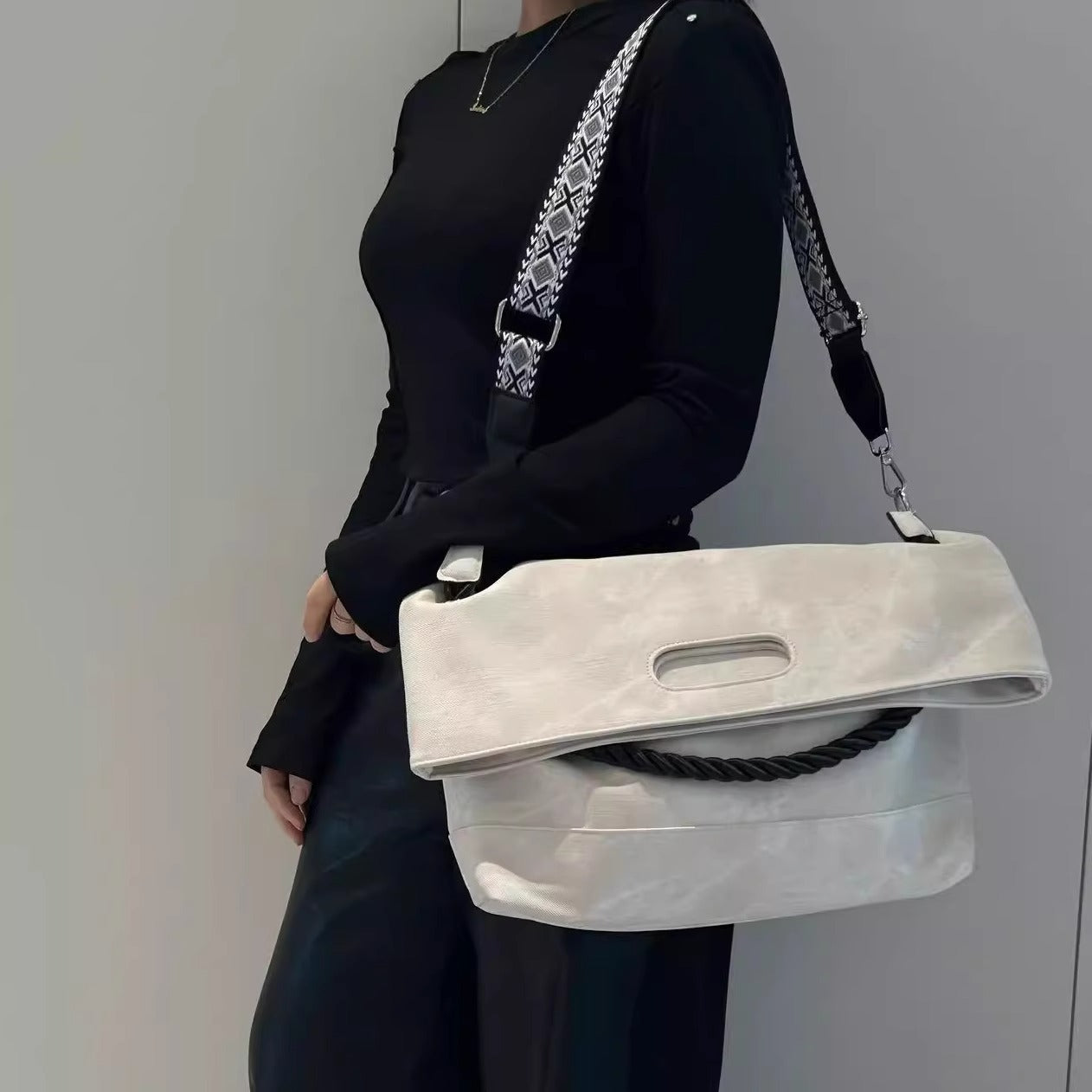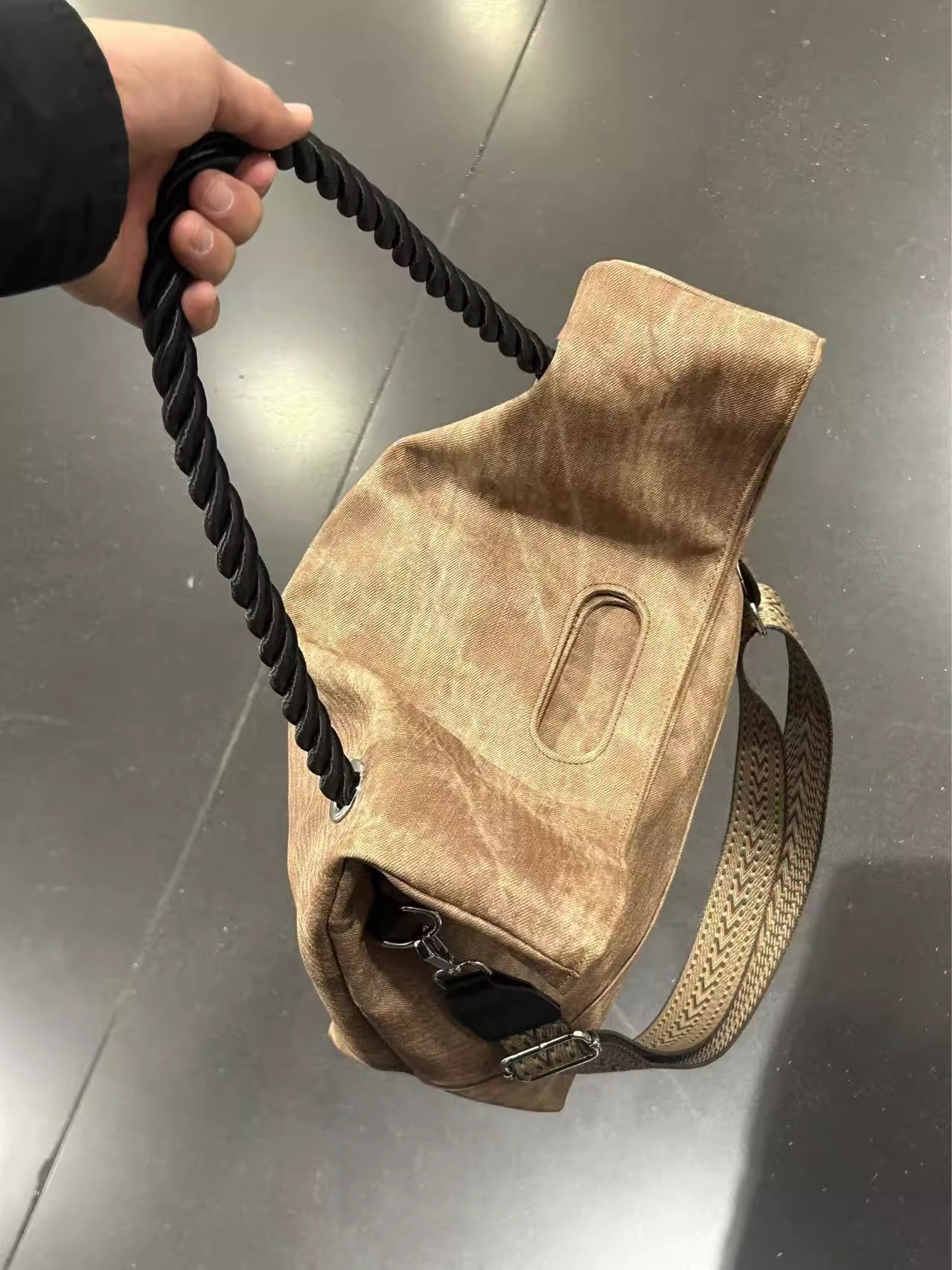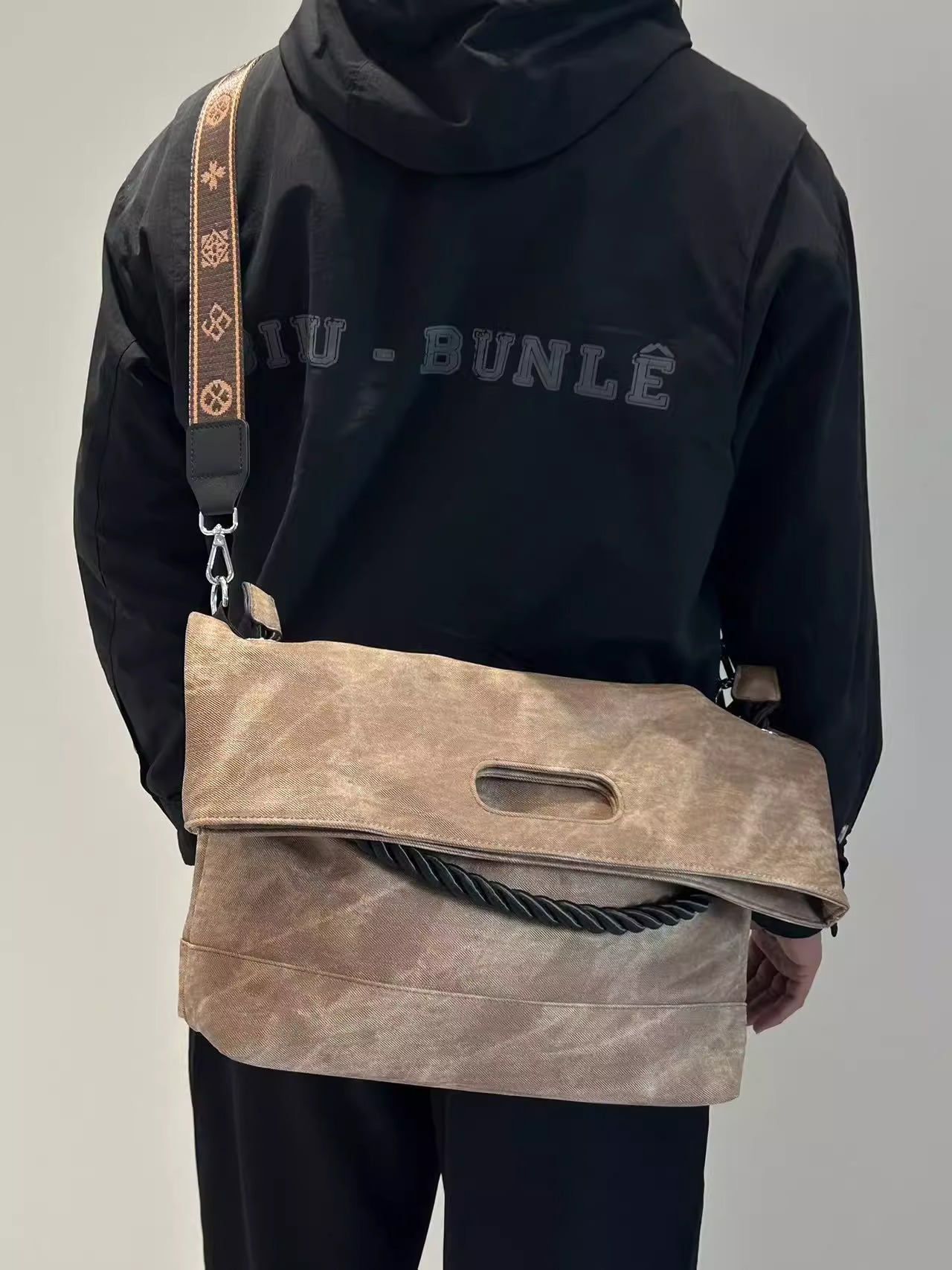 韩版扎染慵懒风软皮大容量通勤单肩包复古邮差斜跨托特包电脑包