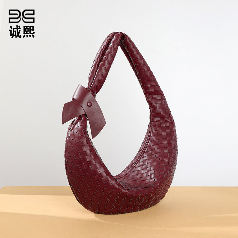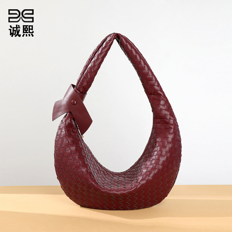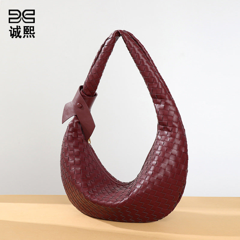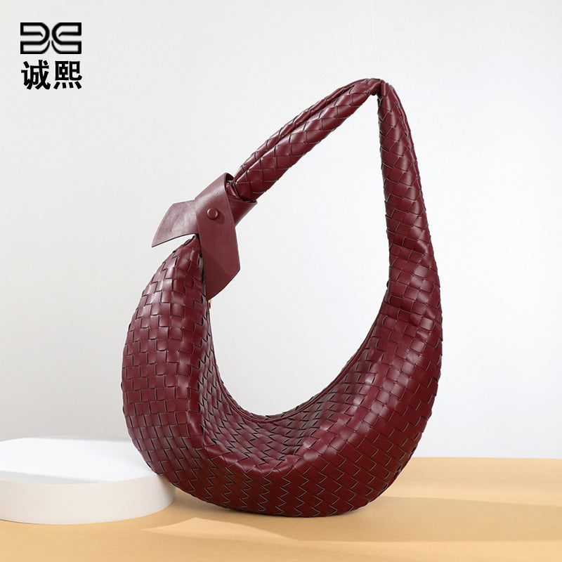 韩版新品大容量单肩斜挎女包时尚手工编织包包复古休闲潮流饺子包