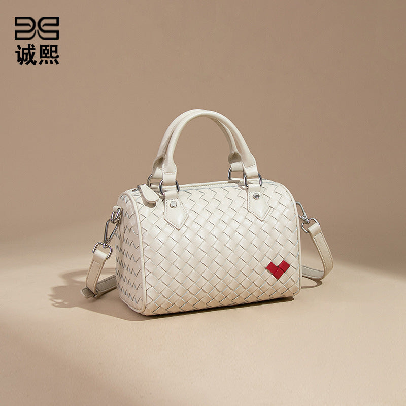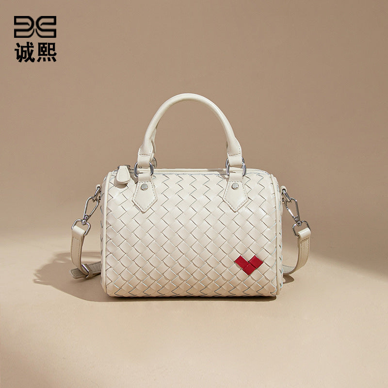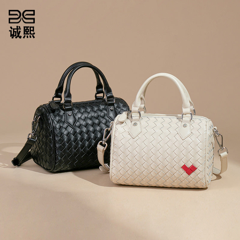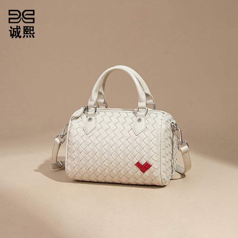 韩版新款爱心手提波士顿枕头包迷你百搭单肩斜跨包手工编织包包女