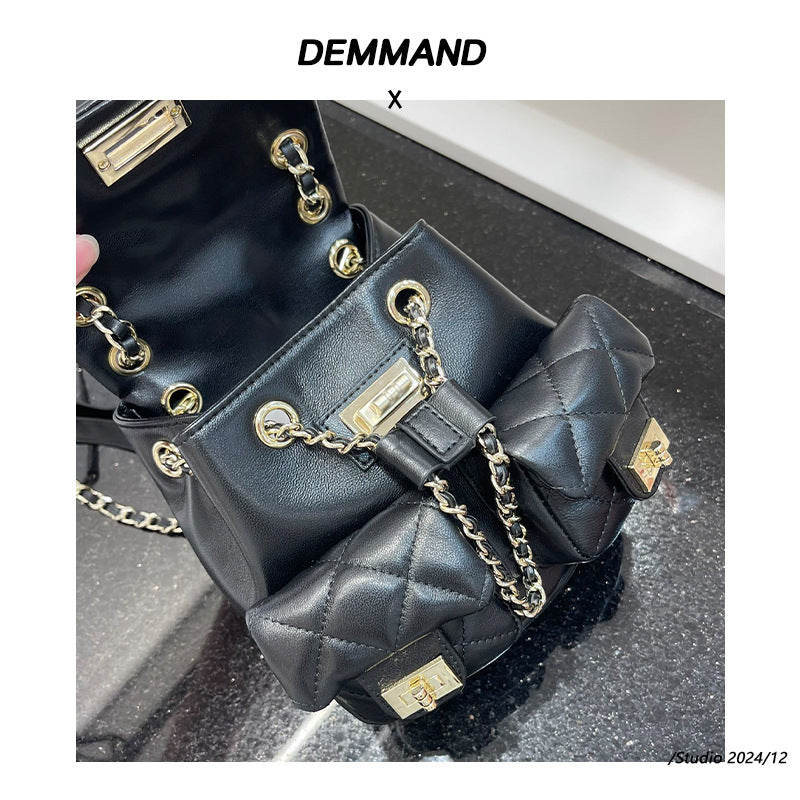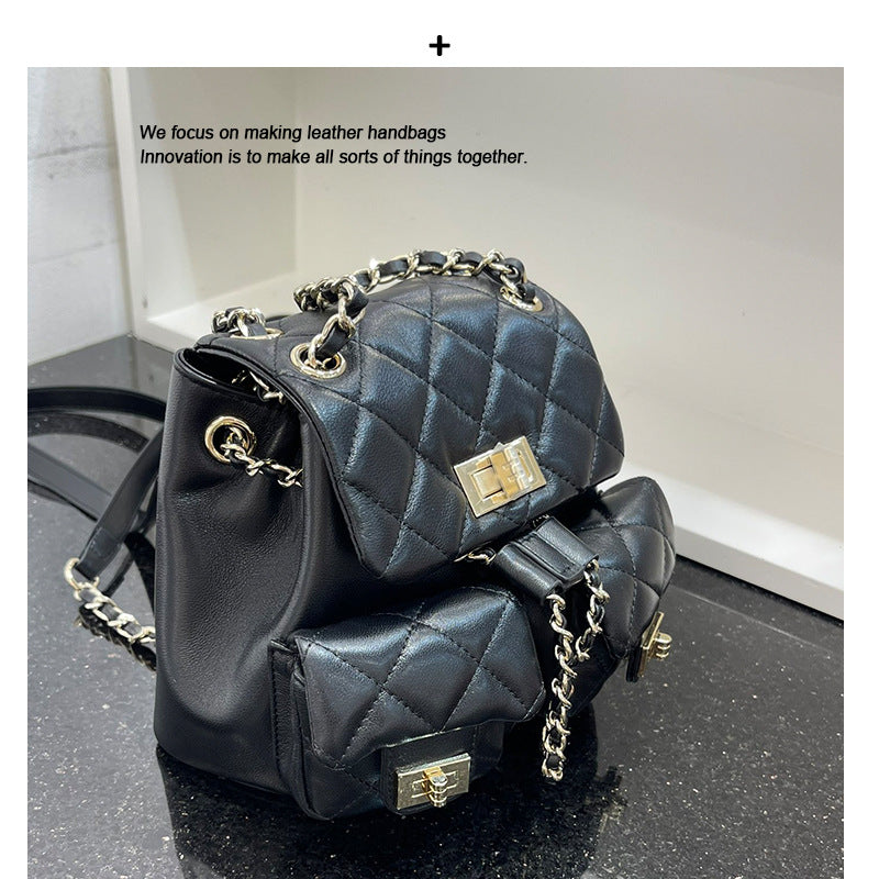 韩版时尚高级感双肩包女2025新款小香风菱格链条包小众双肩背包