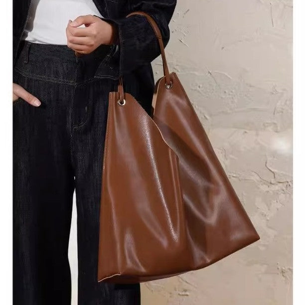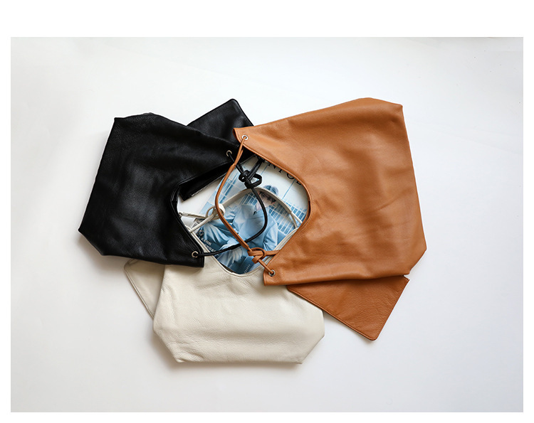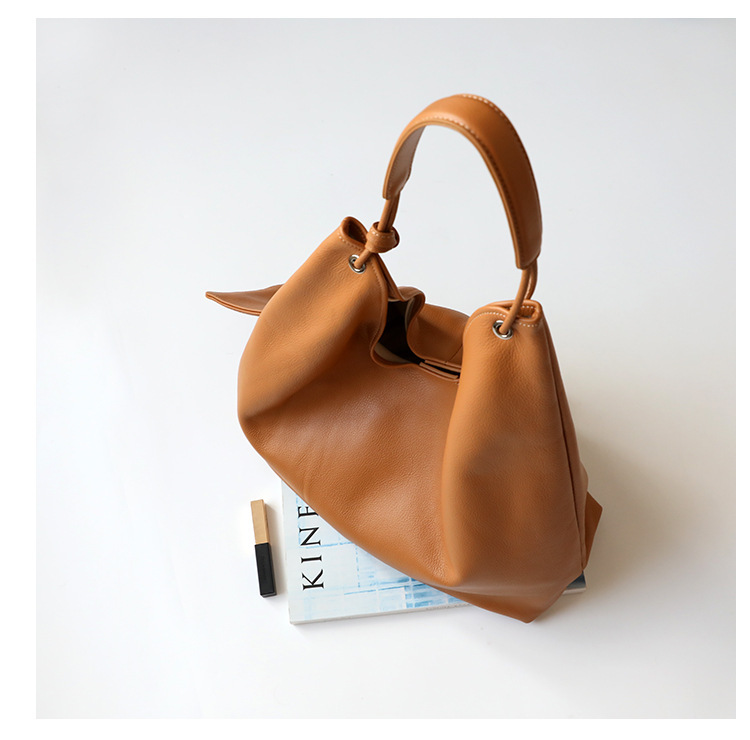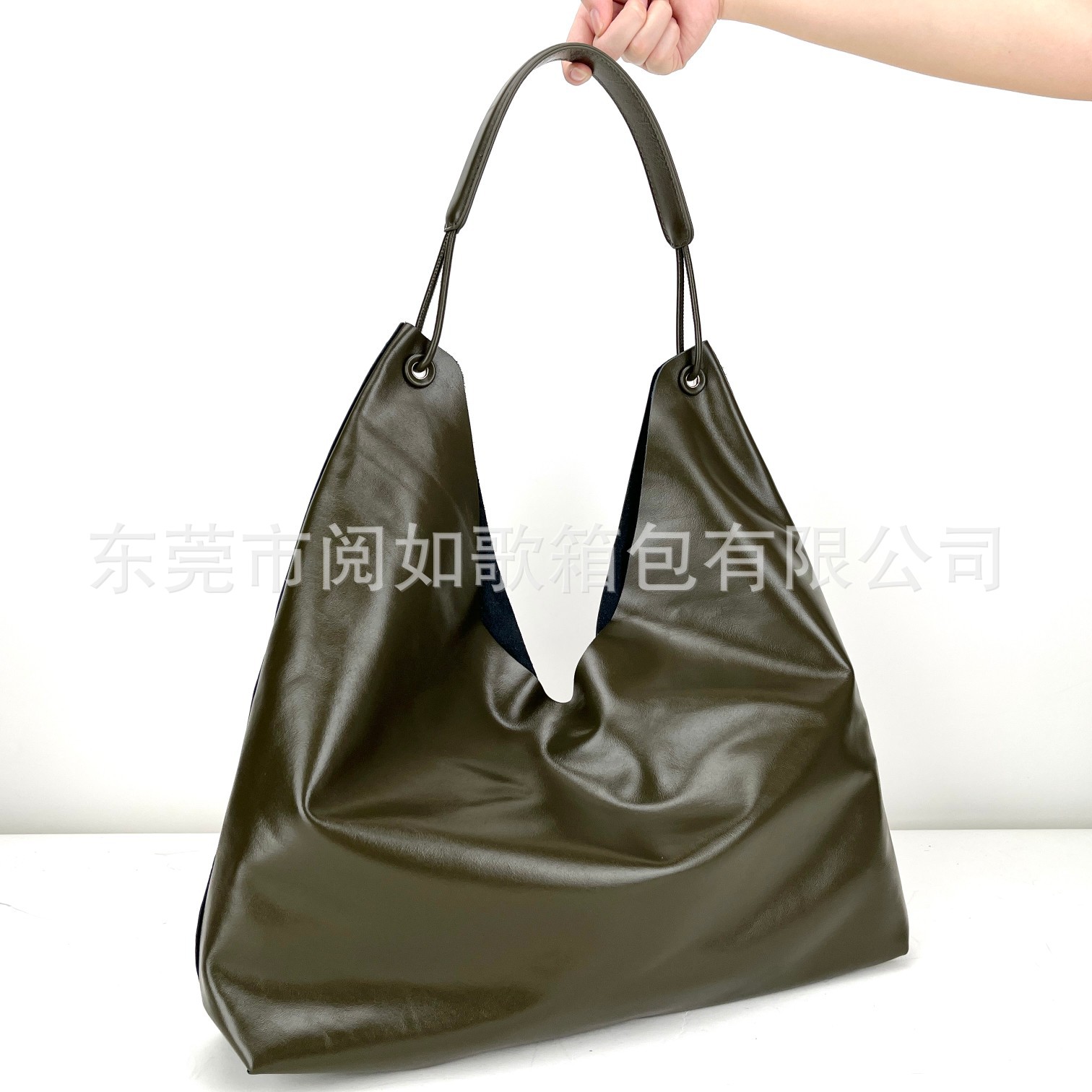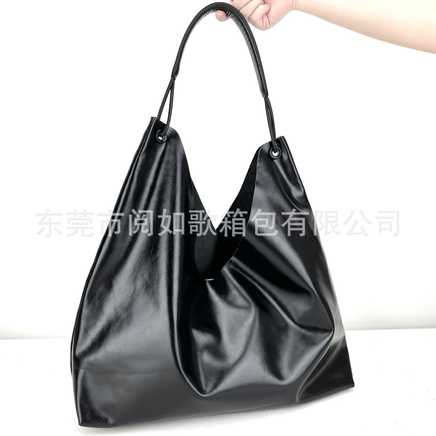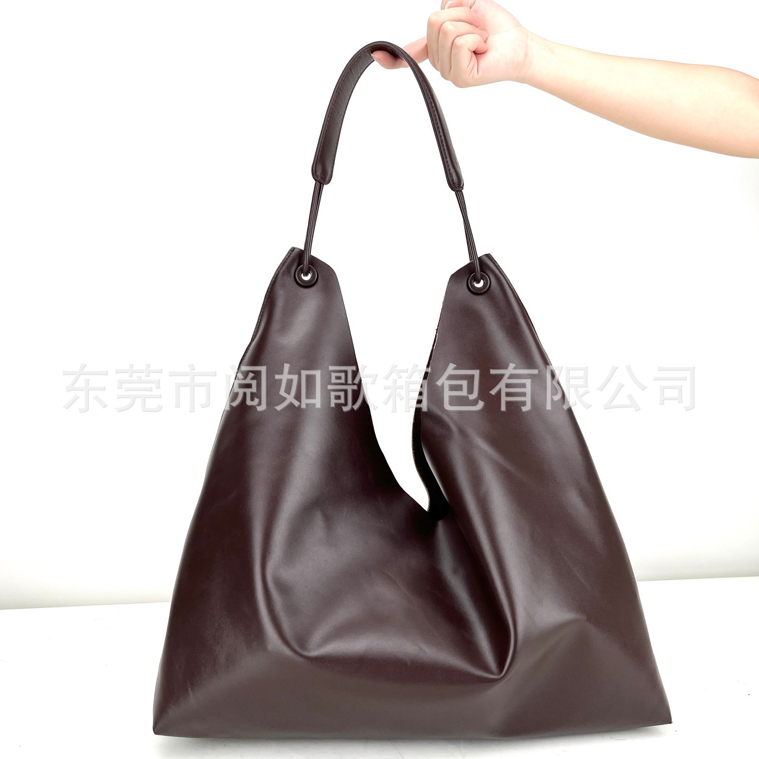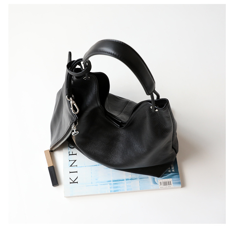 韩版潮慵懒简约头层牛皮大容量腋下包柔软通勤百搭休闲托特包代发