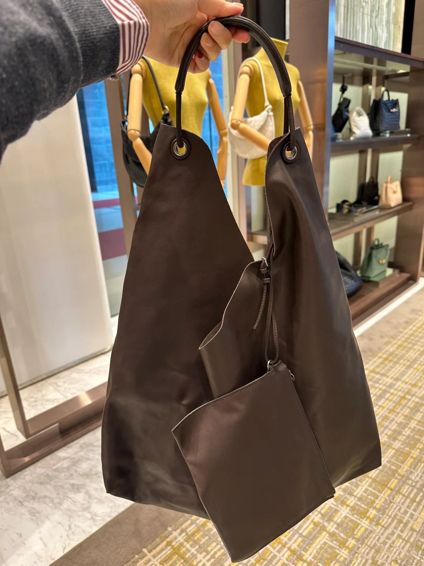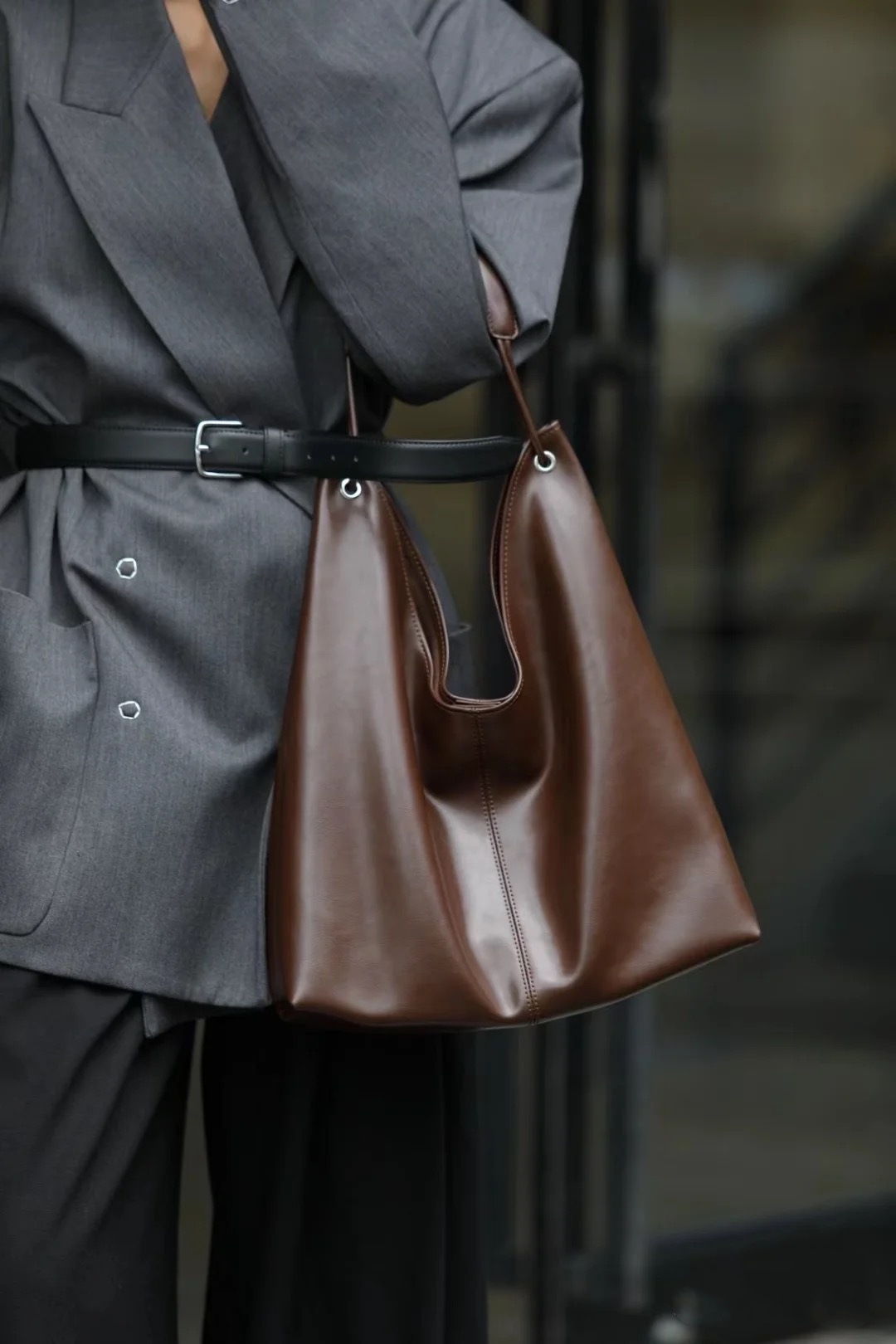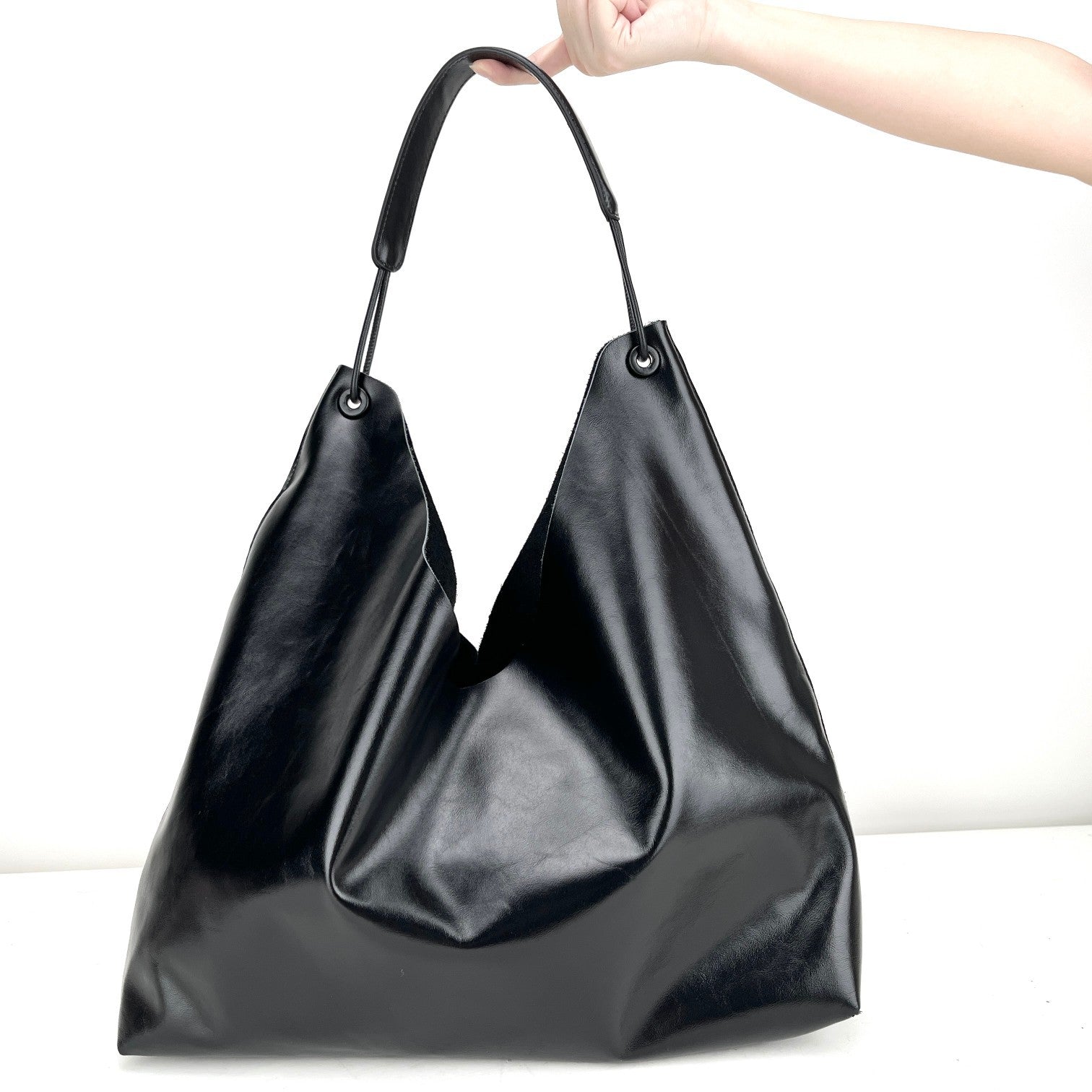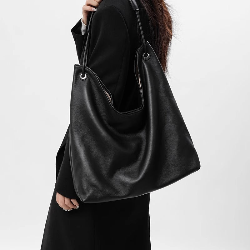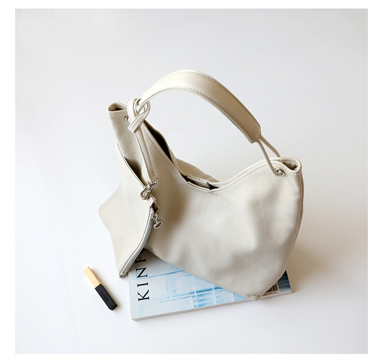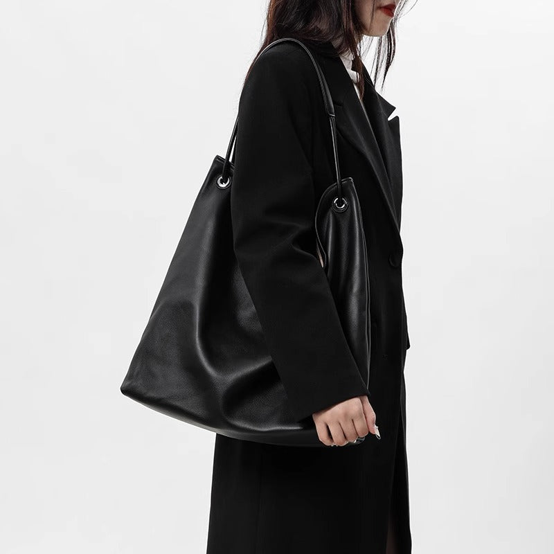 韩版潮慵懒简约头层牛皮大容量腋下包柔软通勤百搭休闲托特包代发