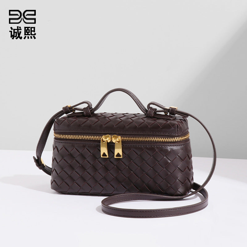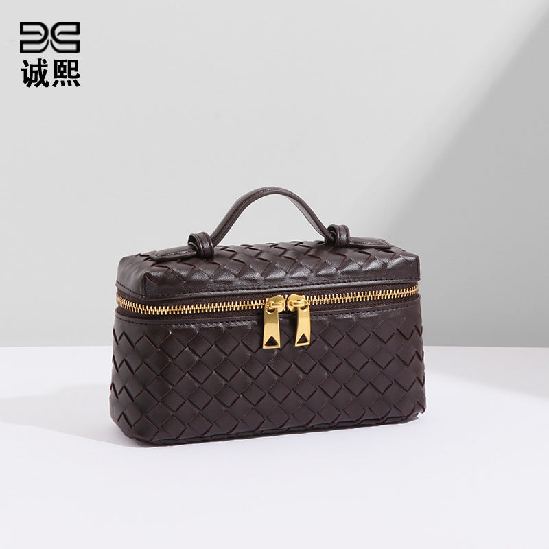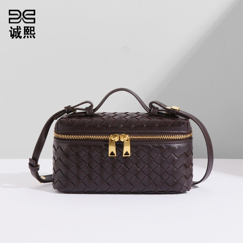 韩版盒子包斜挎编织百搭饭盒包双向拉链开合手提包潮流单肩小方包