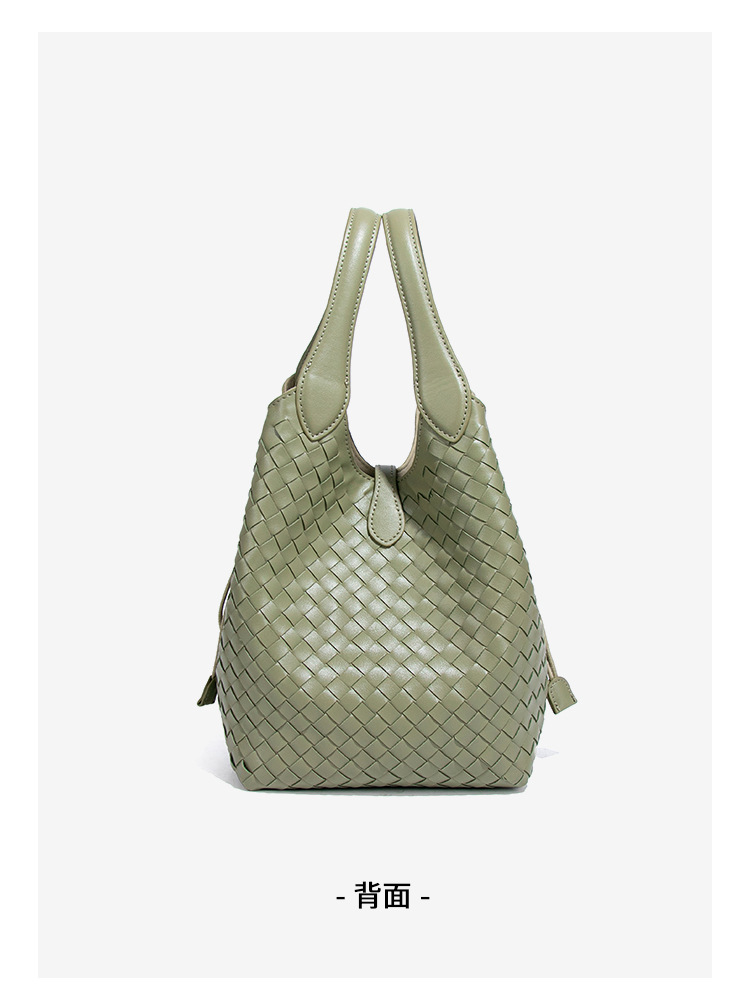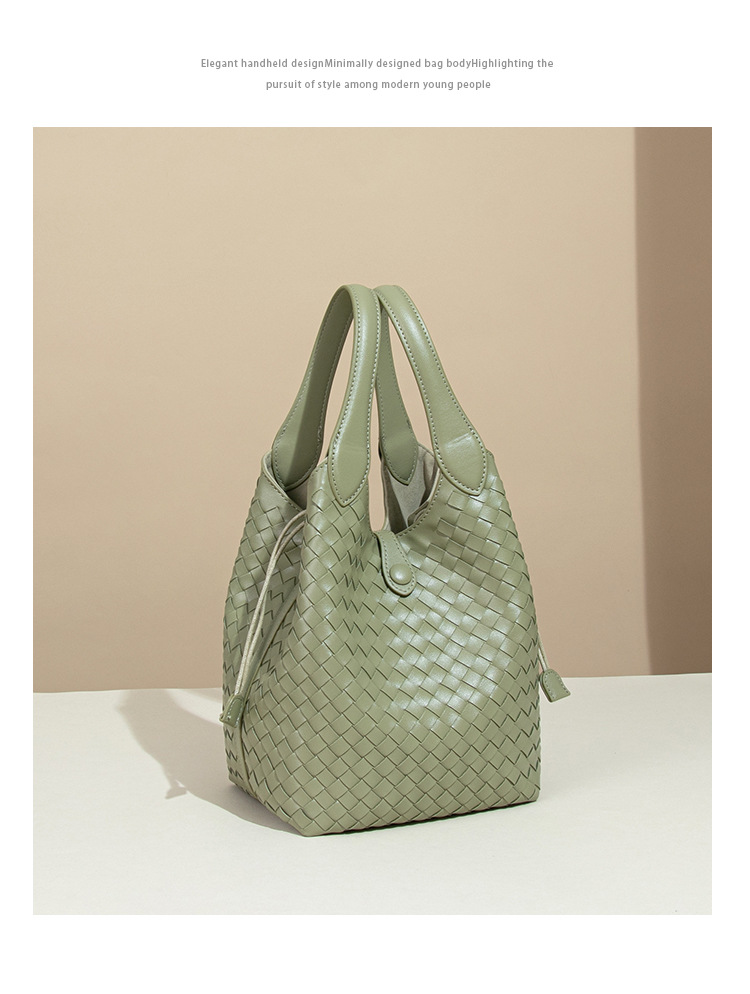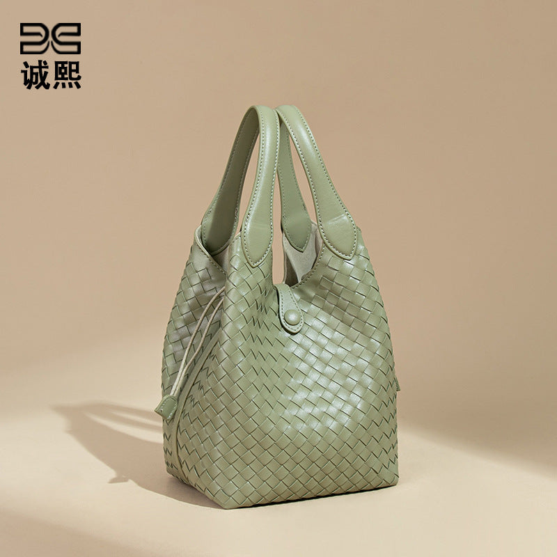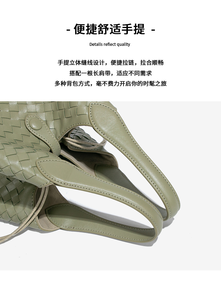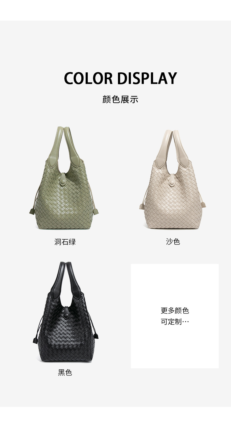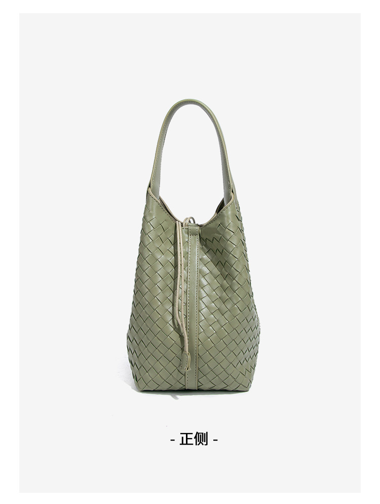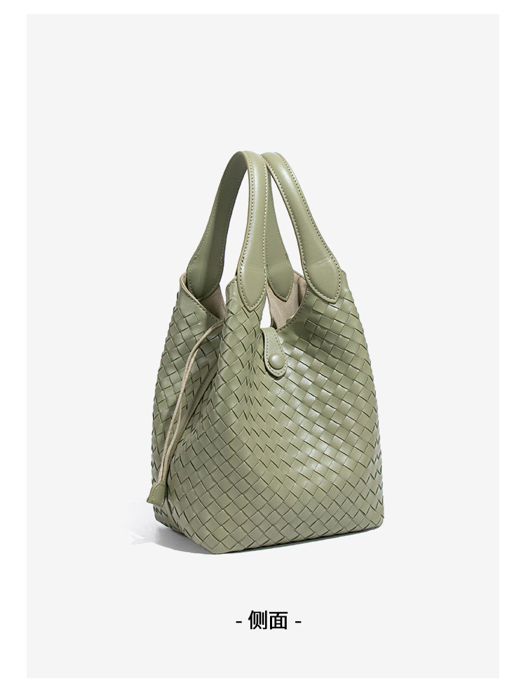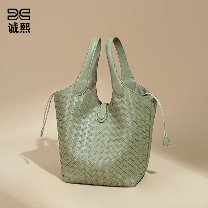 韩版纯色百搭菜篮子手提水桶包质感手工编织女包大容量单肩斜跨包