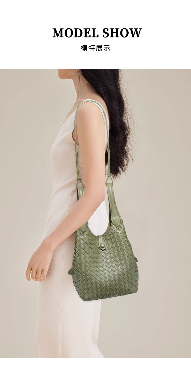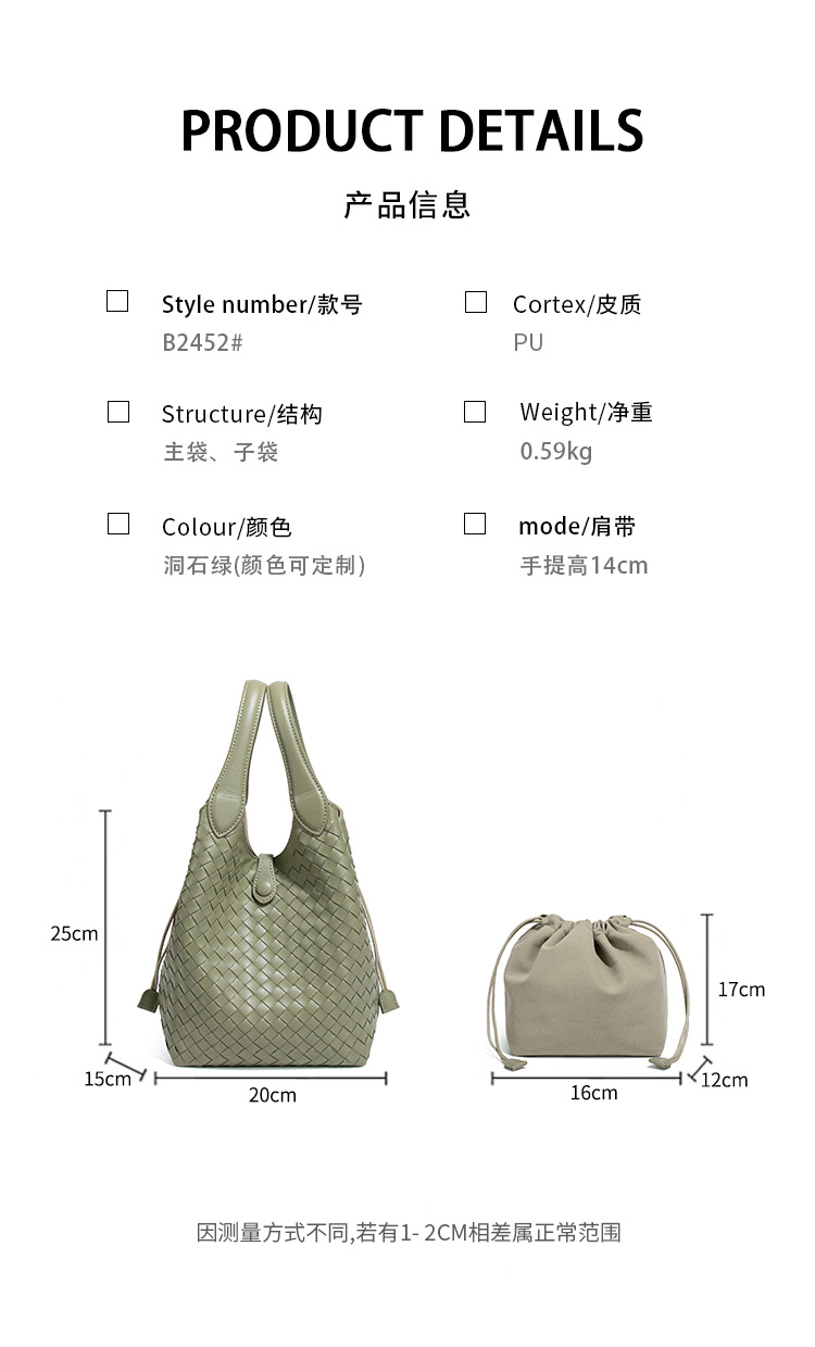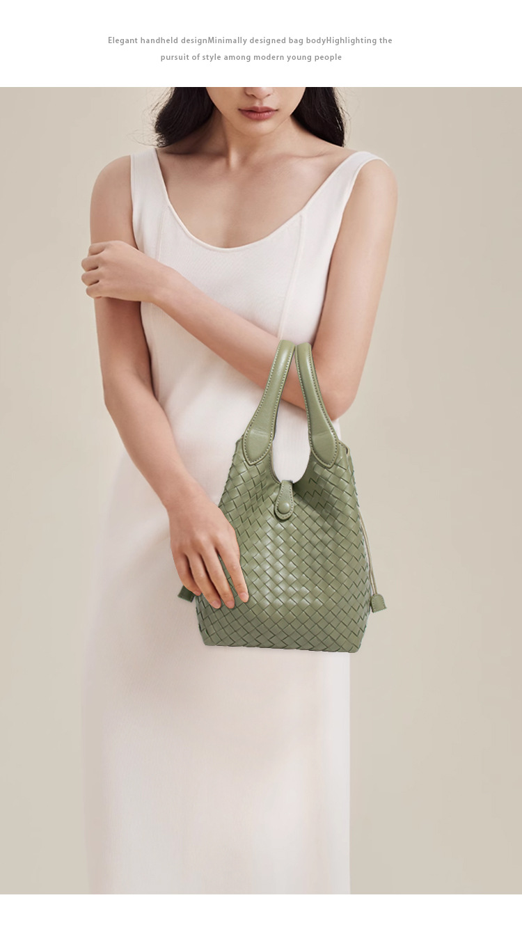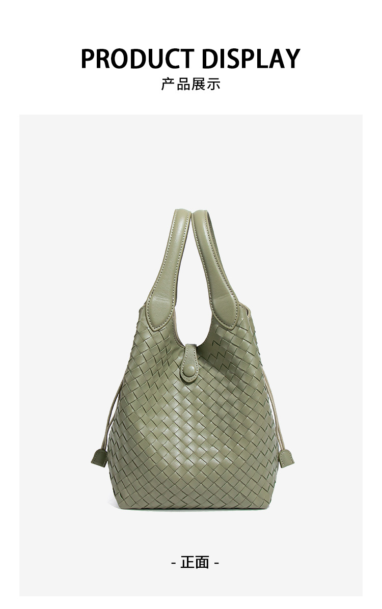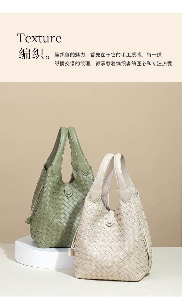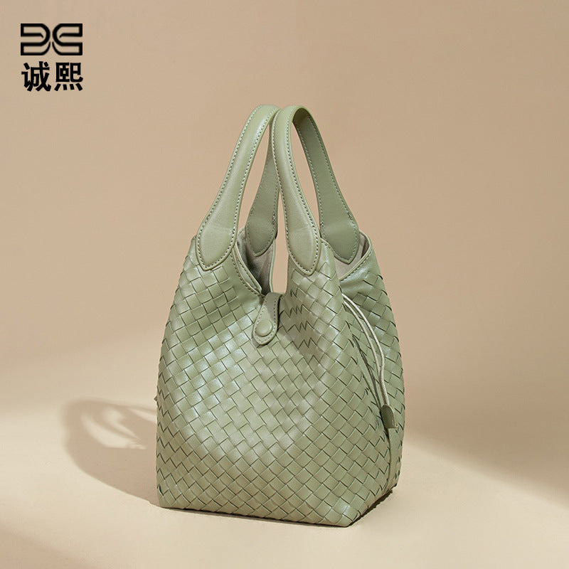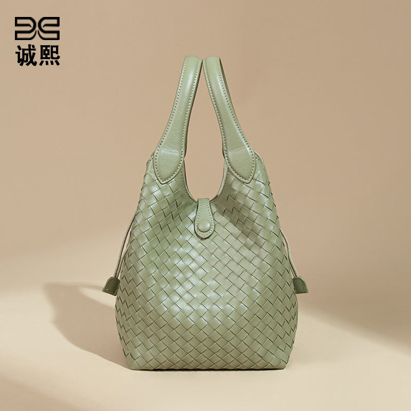 韩版纯色百搭菜篮子手提水桶包质感手工编织女包大容量单肩斜跨包