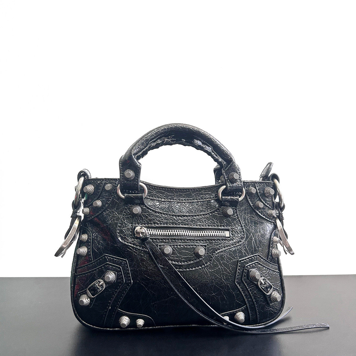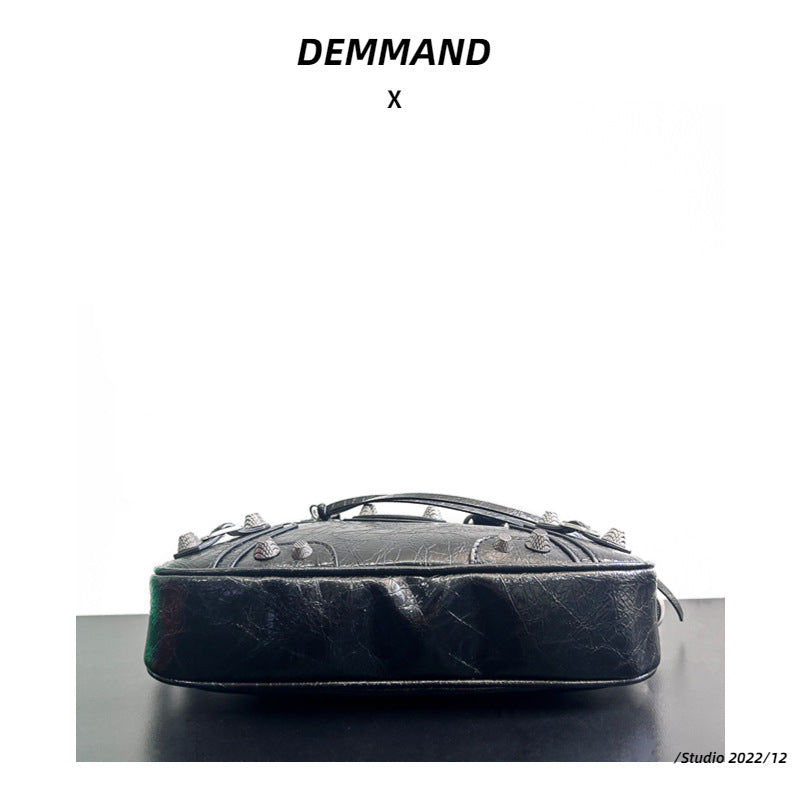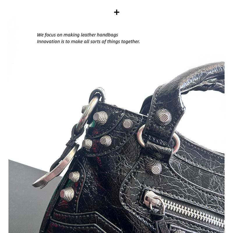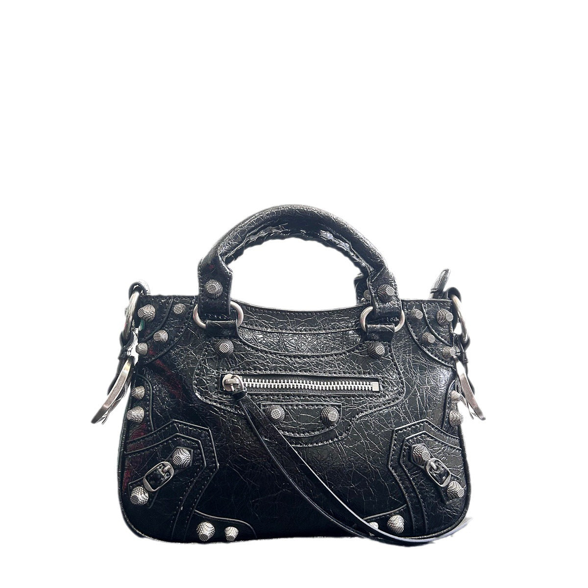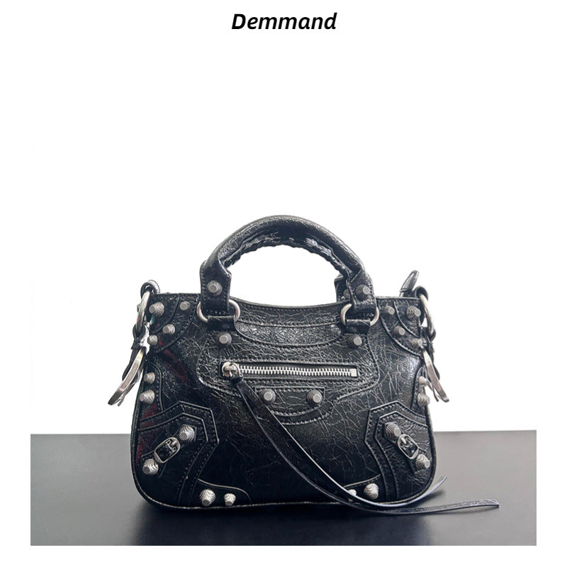 预售新品网红同款时尚百搭暗黑机车铆钉设计小托特手提斜挎包包女