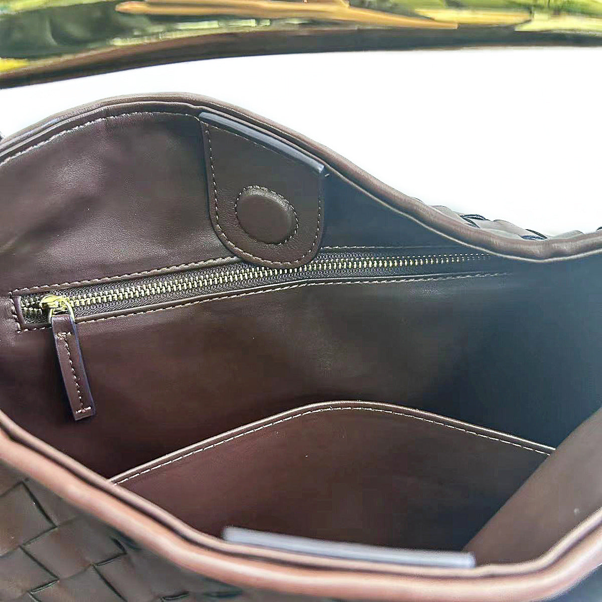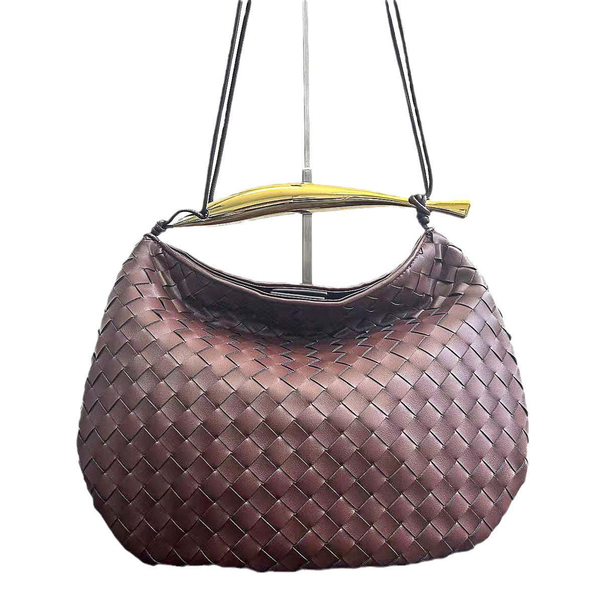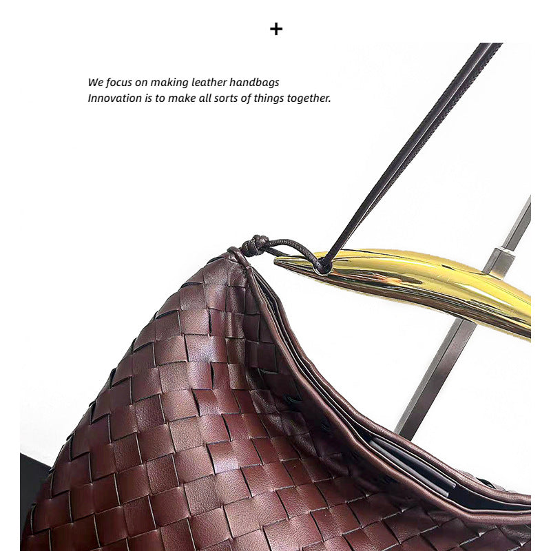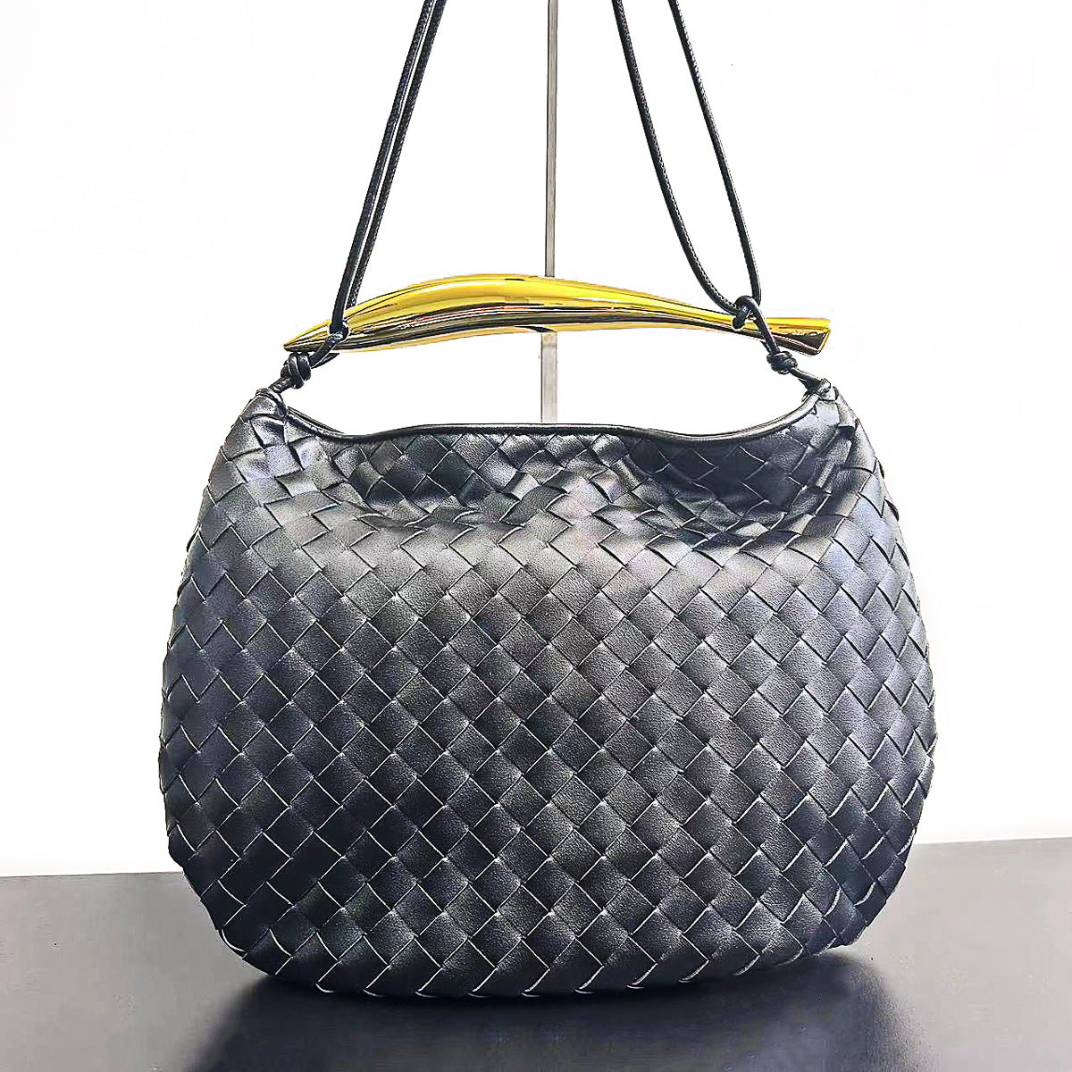 预售新款沙丁鱼编织包真皮时尚休闲高级感鲨鱼金属柄半月手提女包