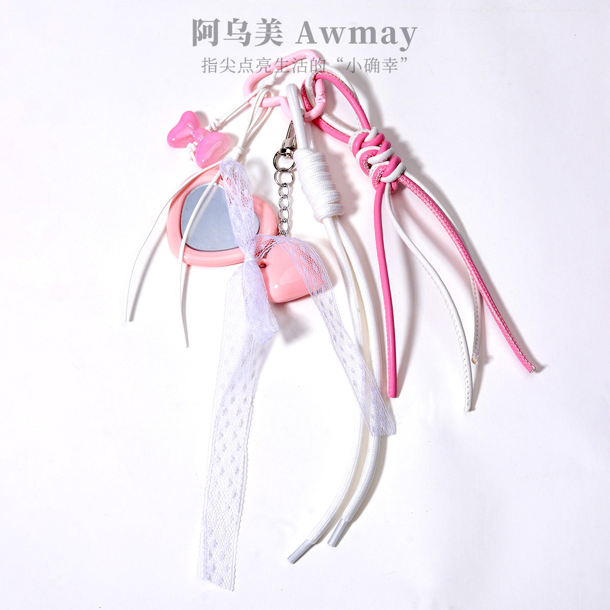 饰品工厂量大价优粉色镜子爱心蝴蝶结包挂包包挂件挂饰钥匙扣挂