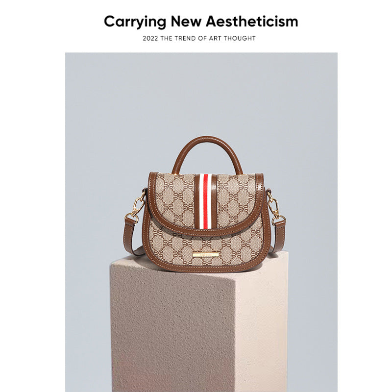 马鞍包女斜跨小众高级感复古2024新款潮流老花时尚休闲单肩手提包
