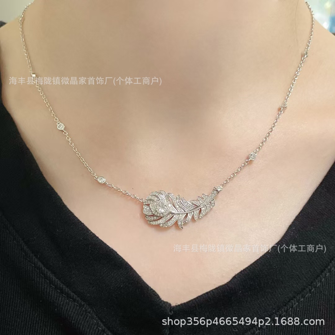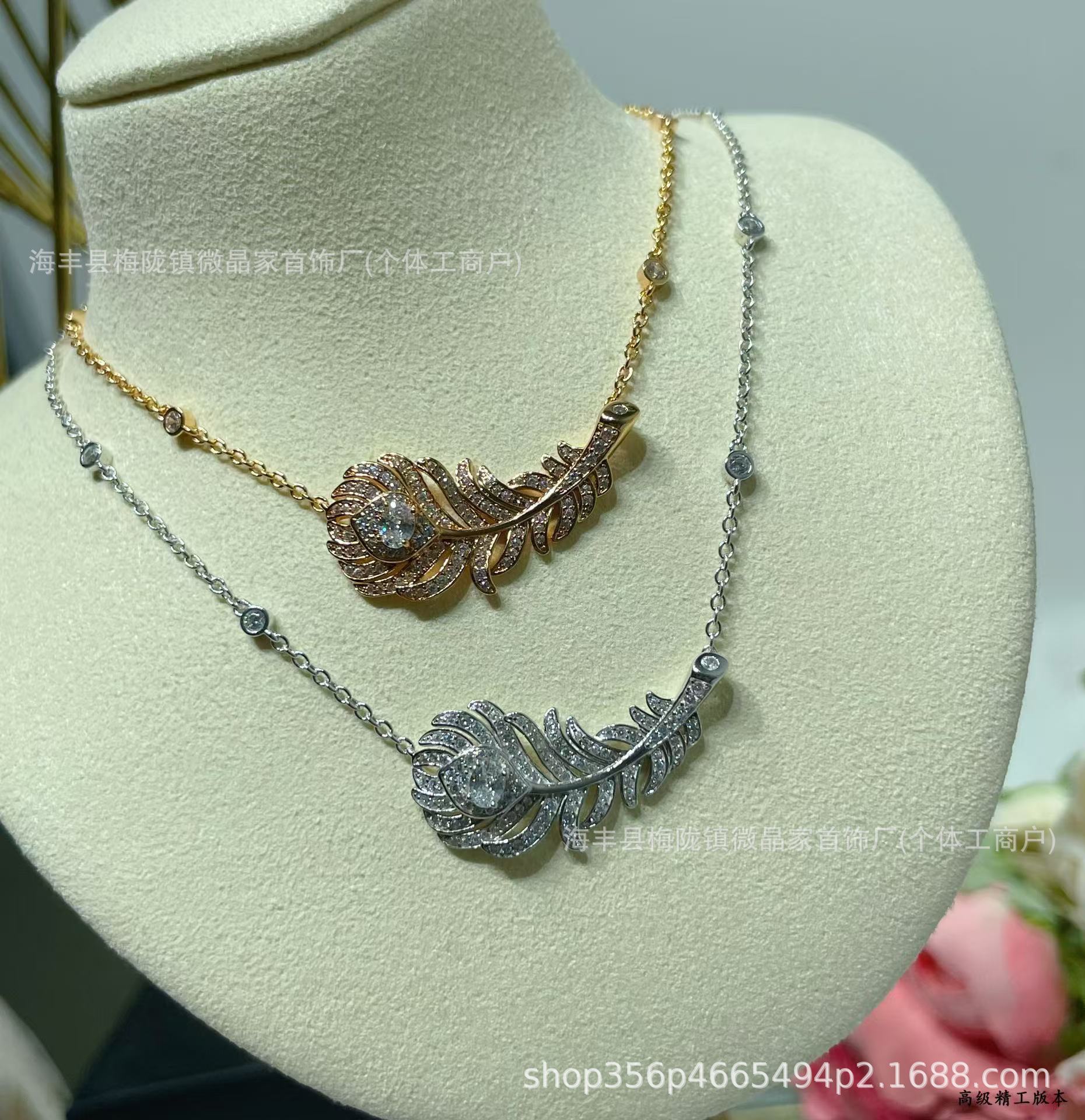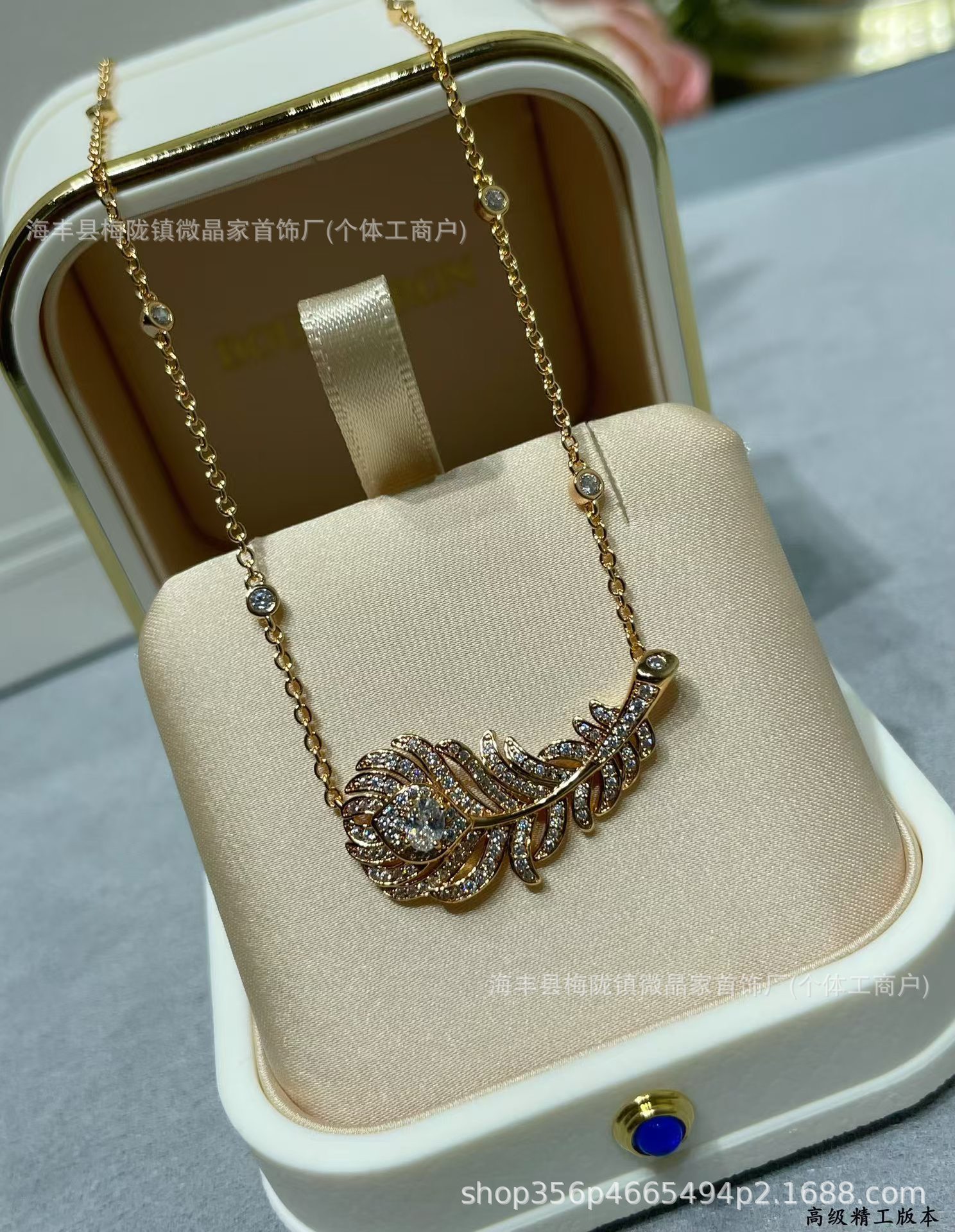 高版宝诗家满钻羽毛项链S925银镀18K金厂家直销精工CNC网红同款