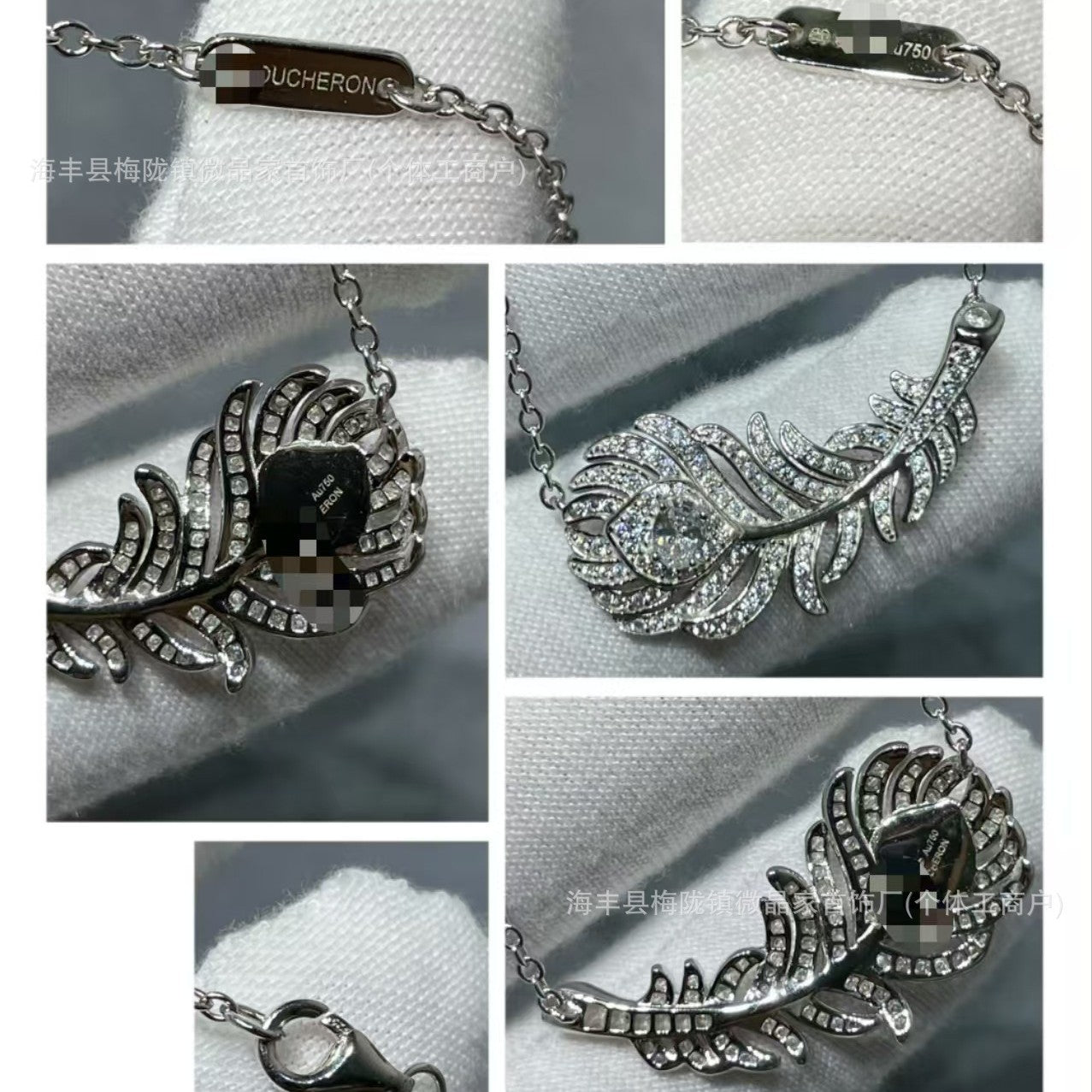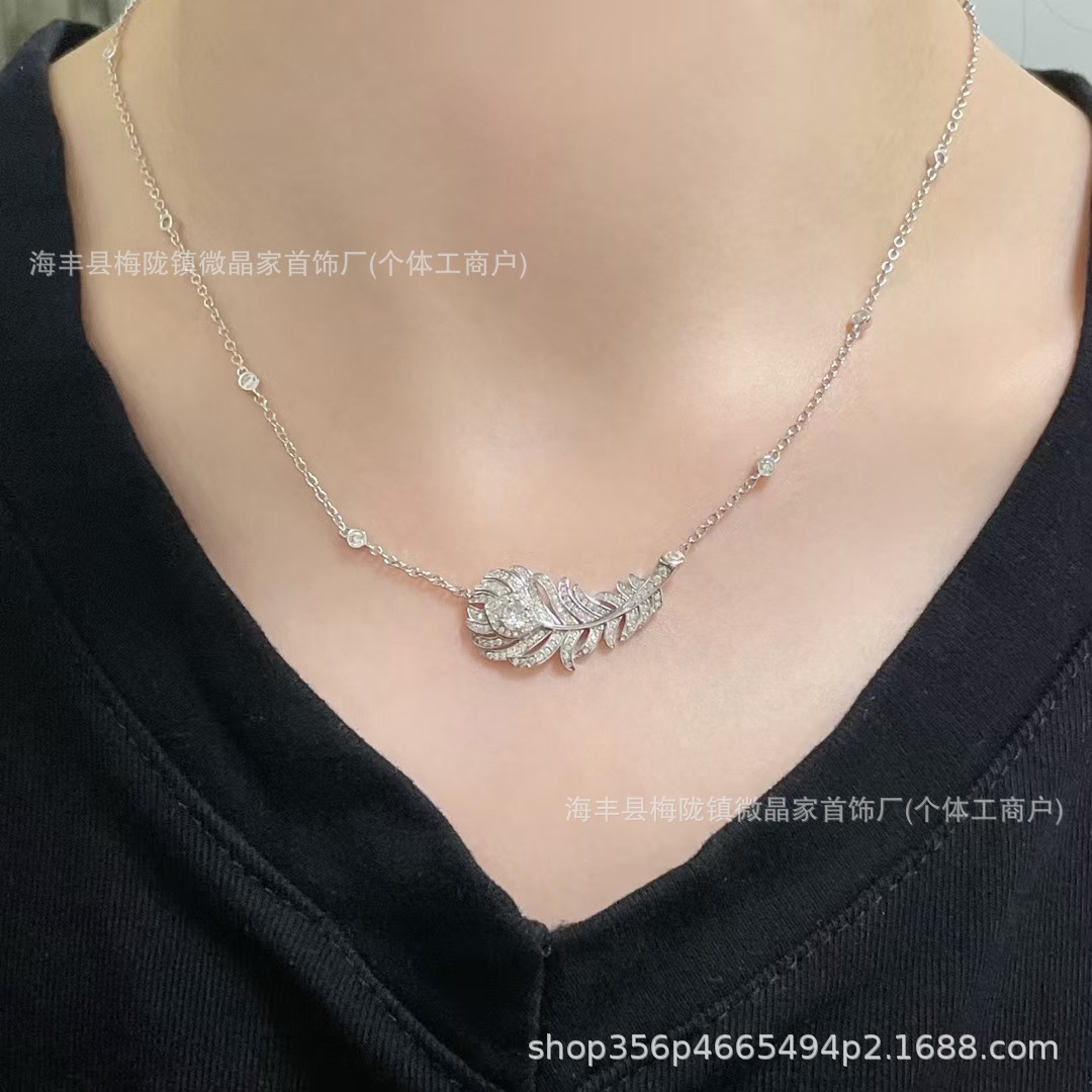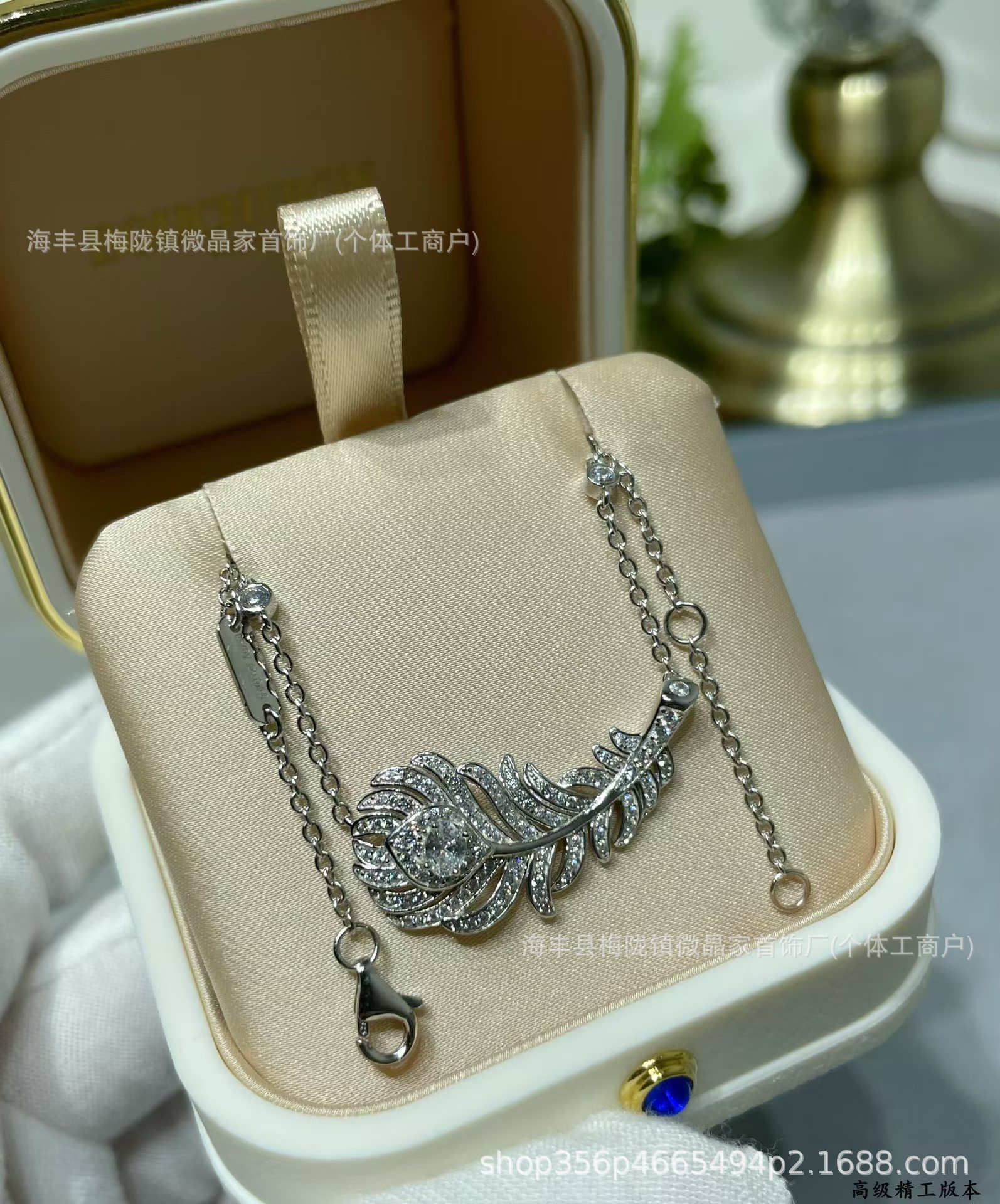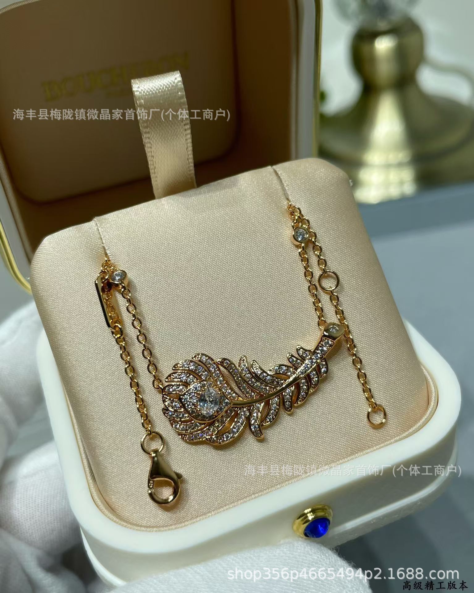高版宝诗家满钻羽毛项链S925银镀18K金厂家直销精工CNC网红同款