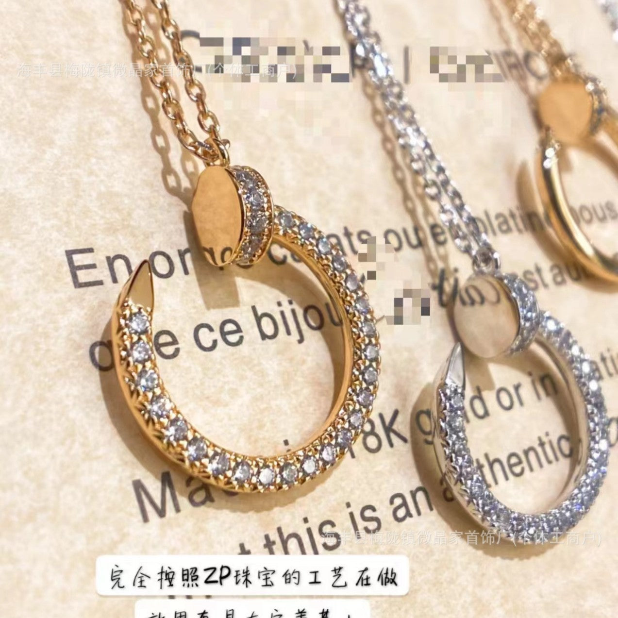 高版本卡家满钻钉子项链女潮流轻奢名媛同款高级感锁骨链厂家直销