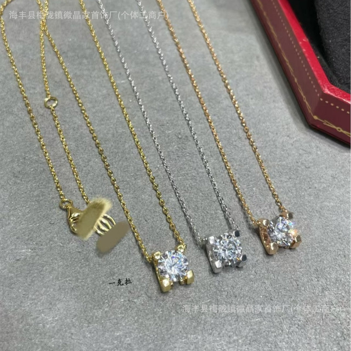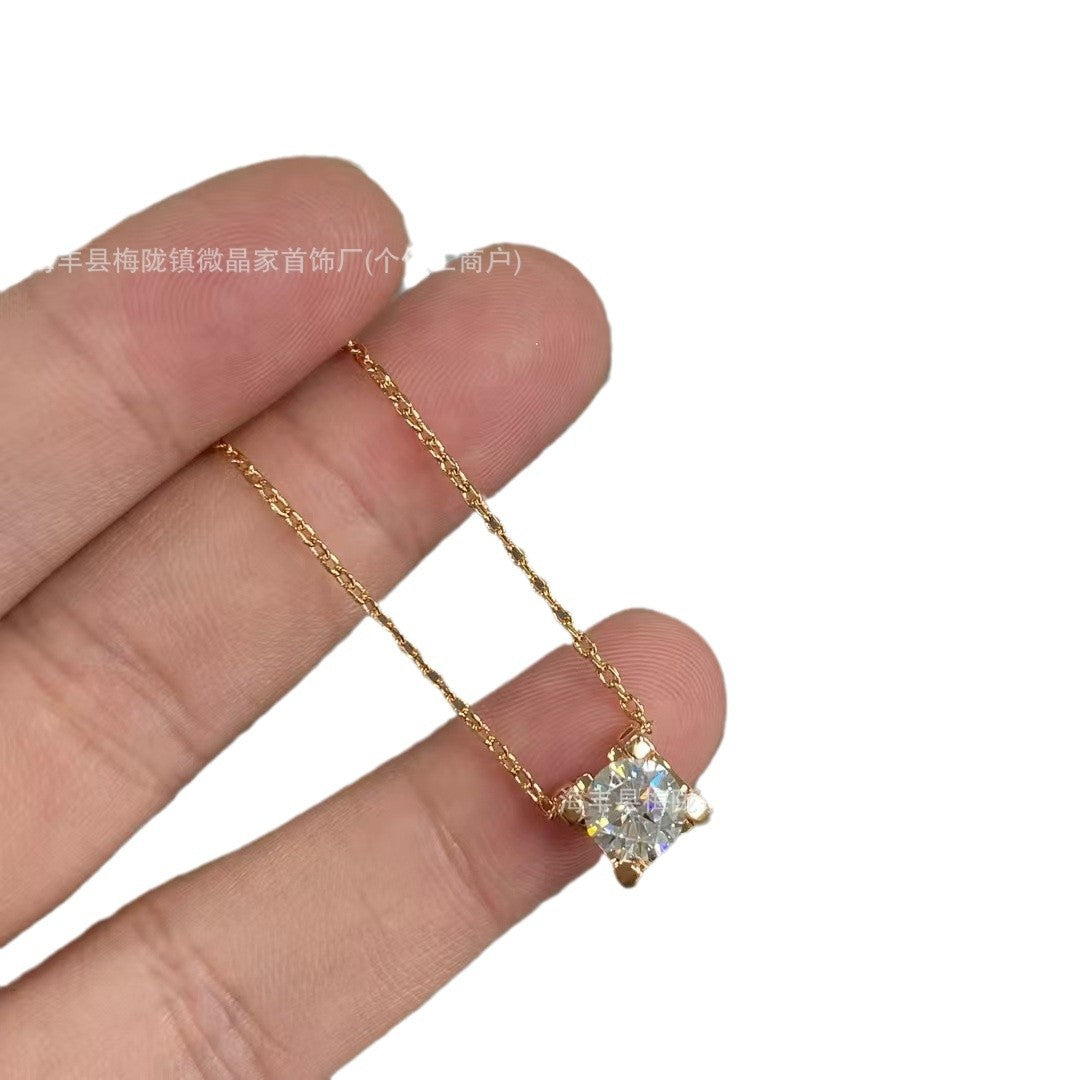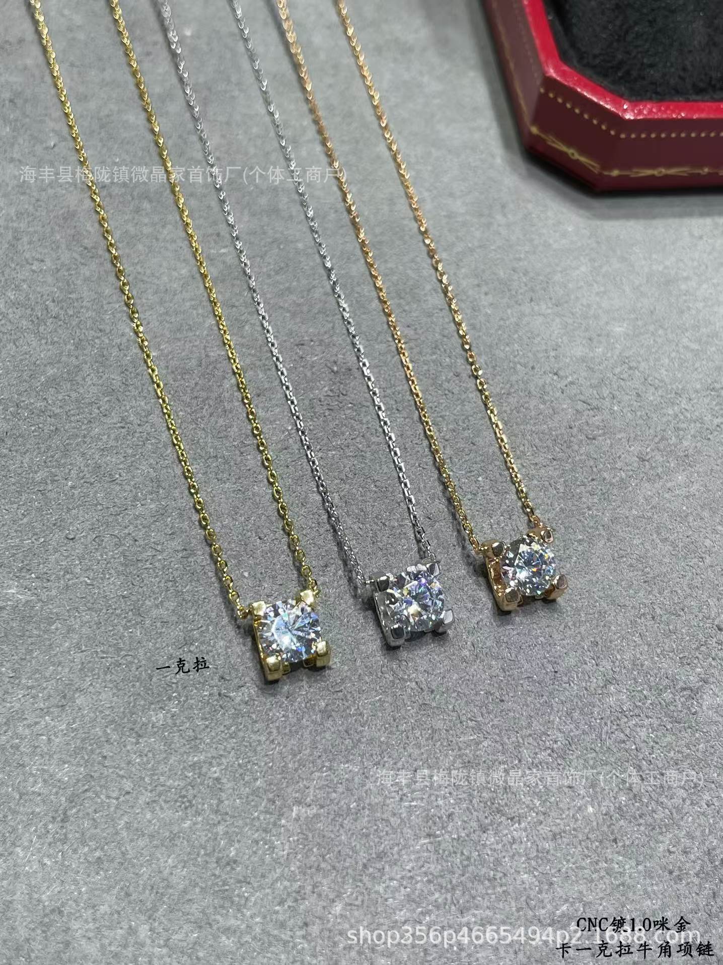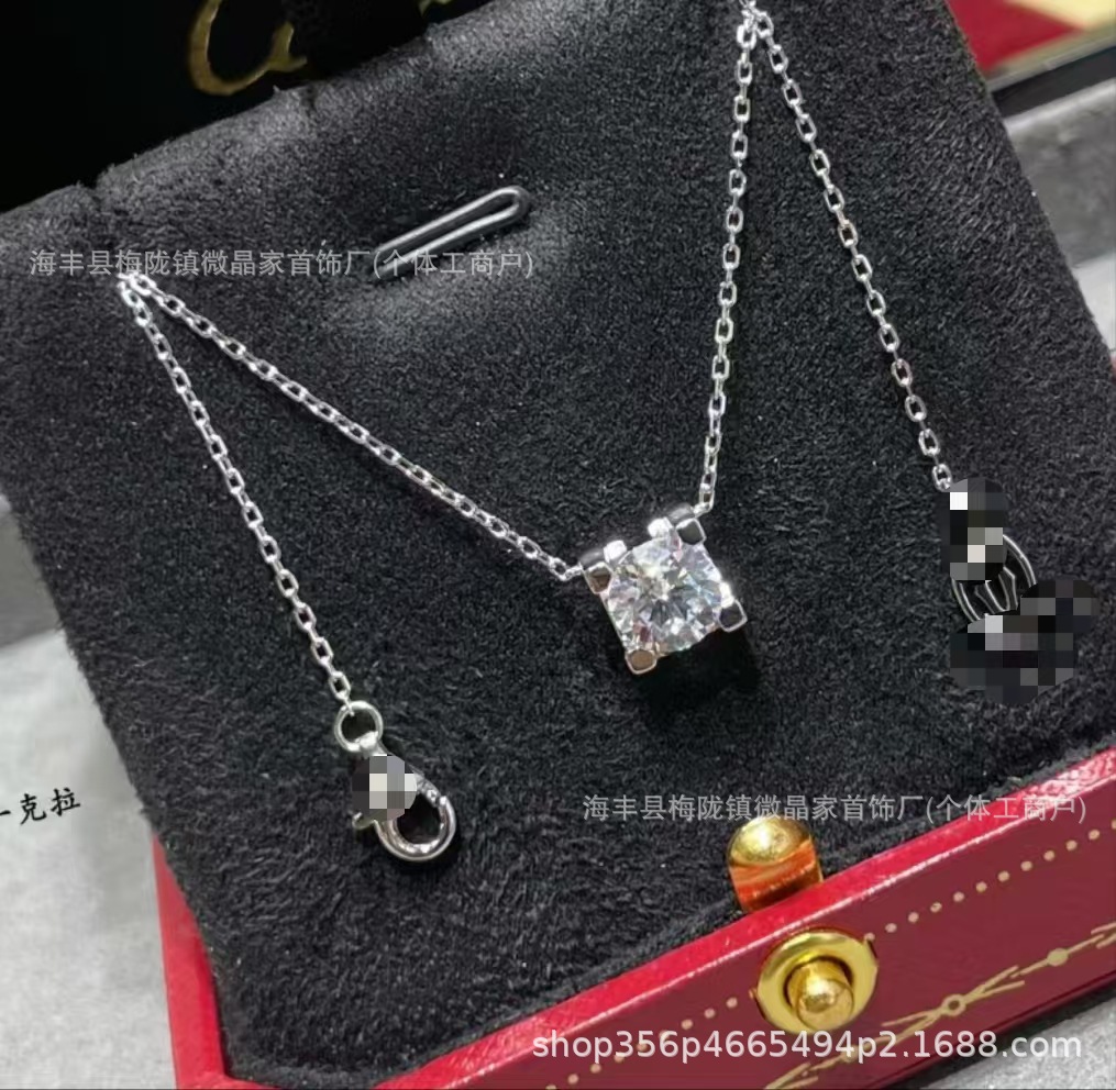 高版本卡家牛角单钻项链女精工CNC四爪镶钻石吊坠轻奢时尚锁骨链