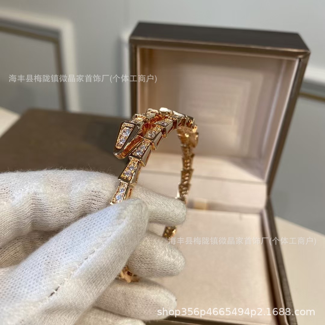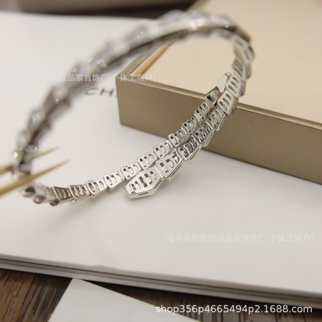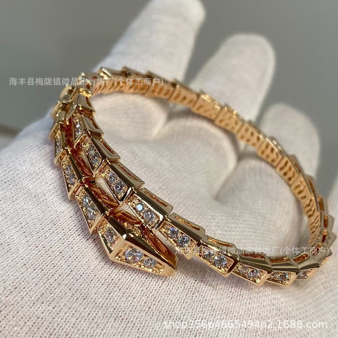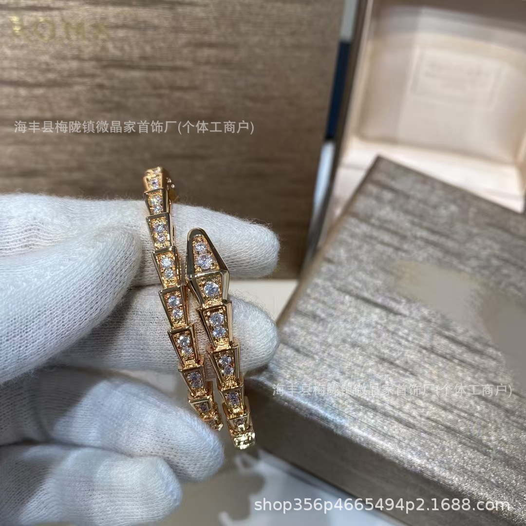 高版本宝家满钻蛇形手镯高版弹簧蛇骨手镯V金CNC工艺工厂直销