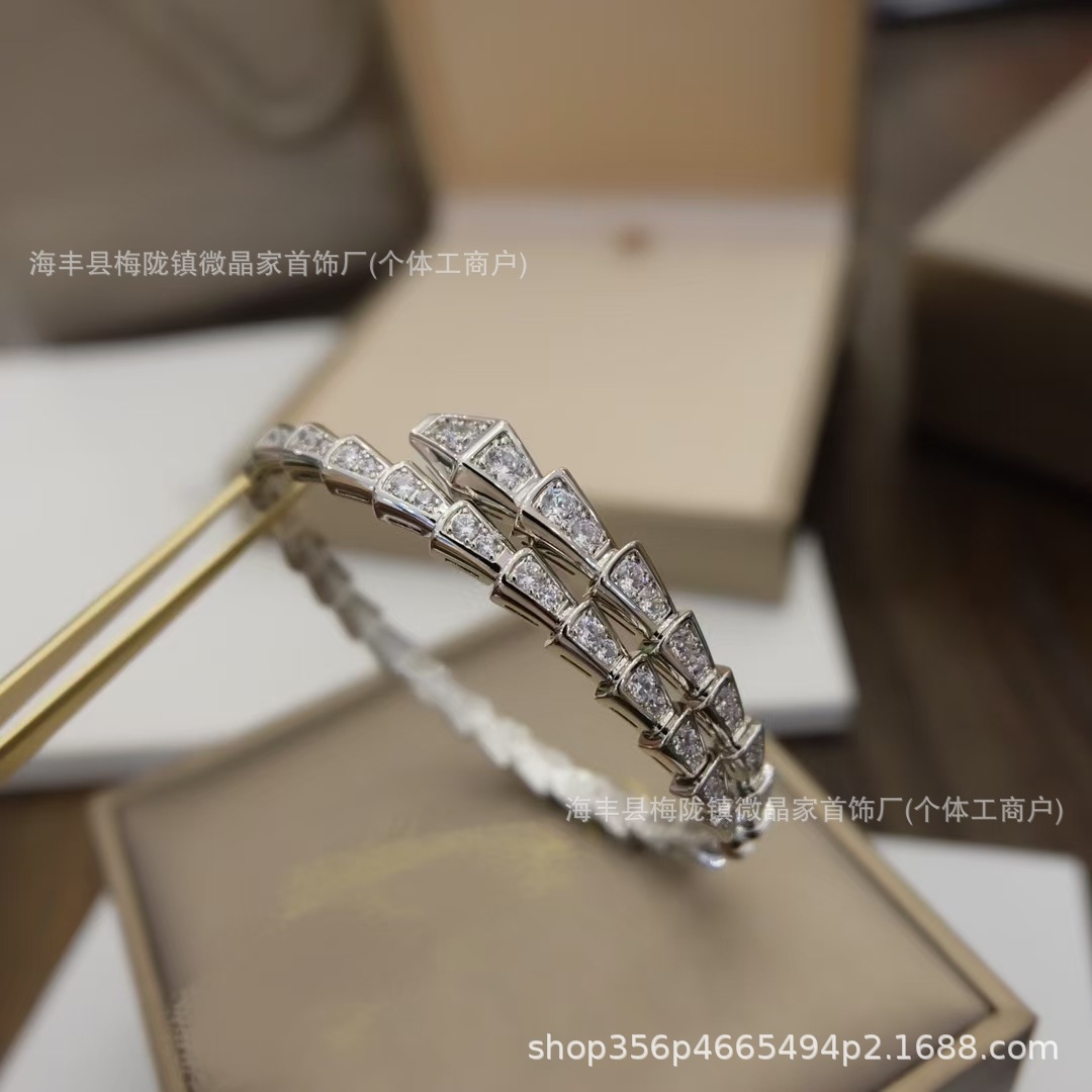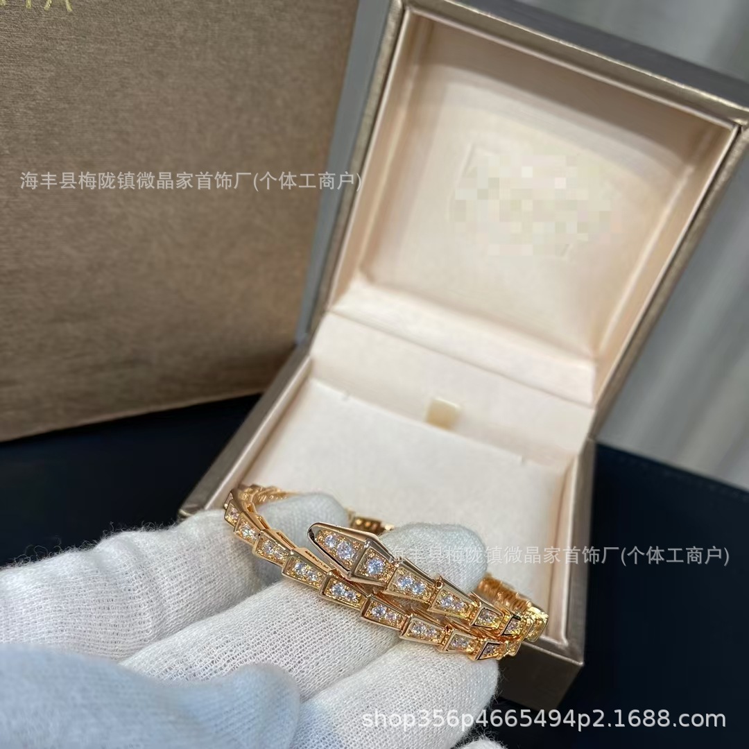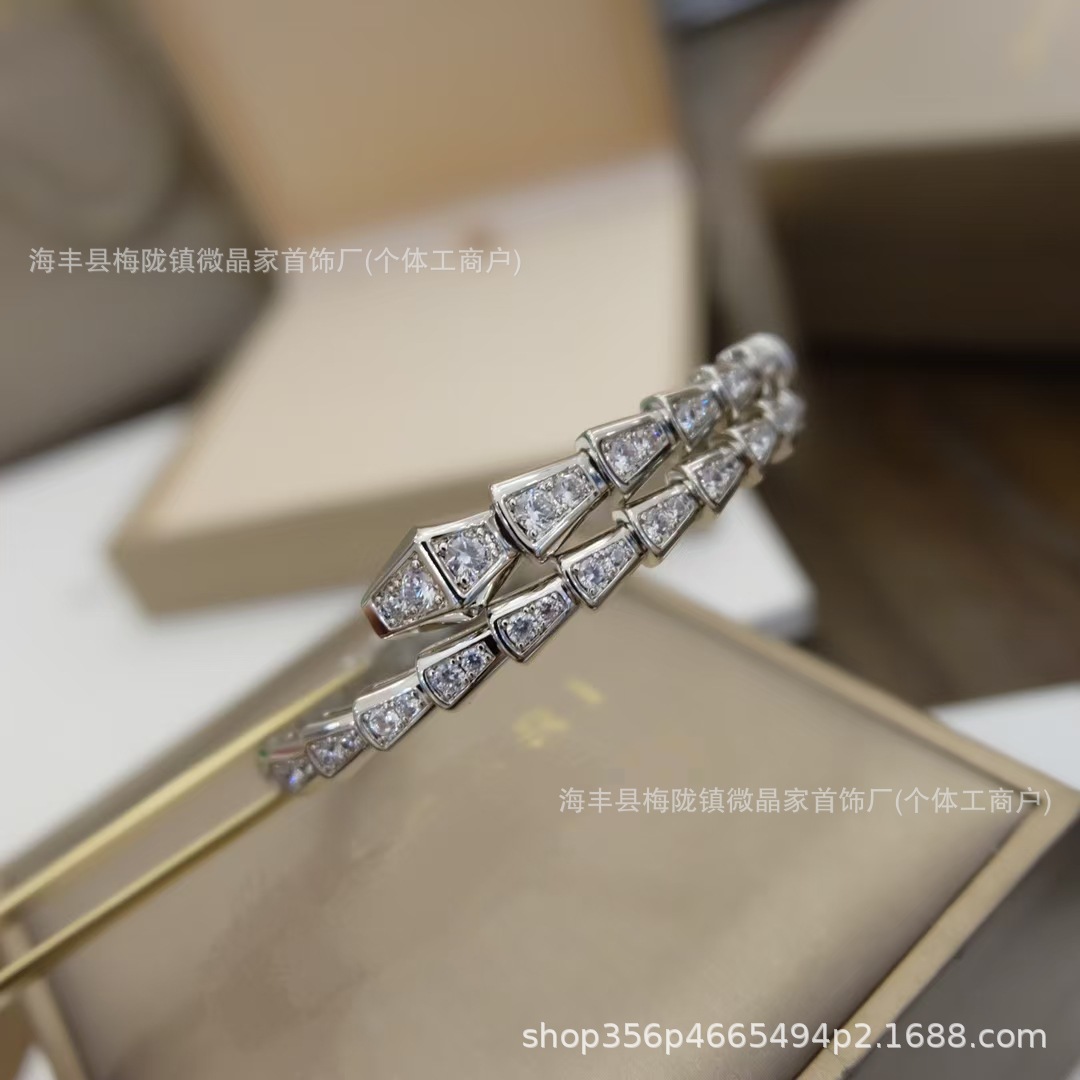 高版本宝家满钻蛇形手镯高版弹簧蛇骨手镯V金CNC工艺工厂直销