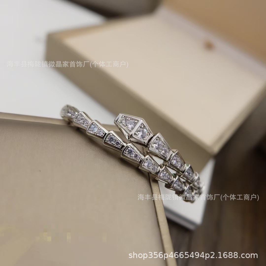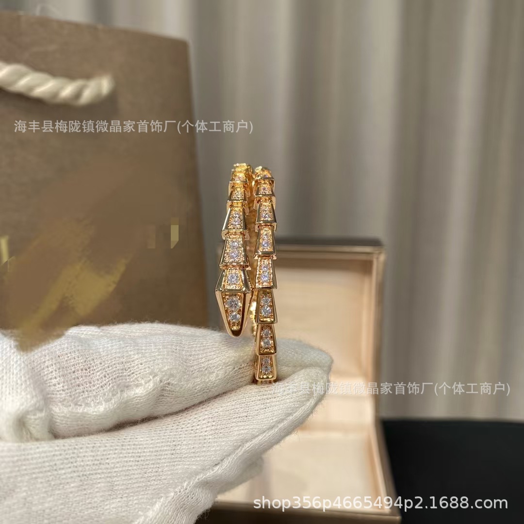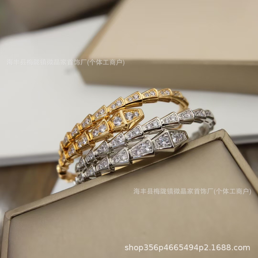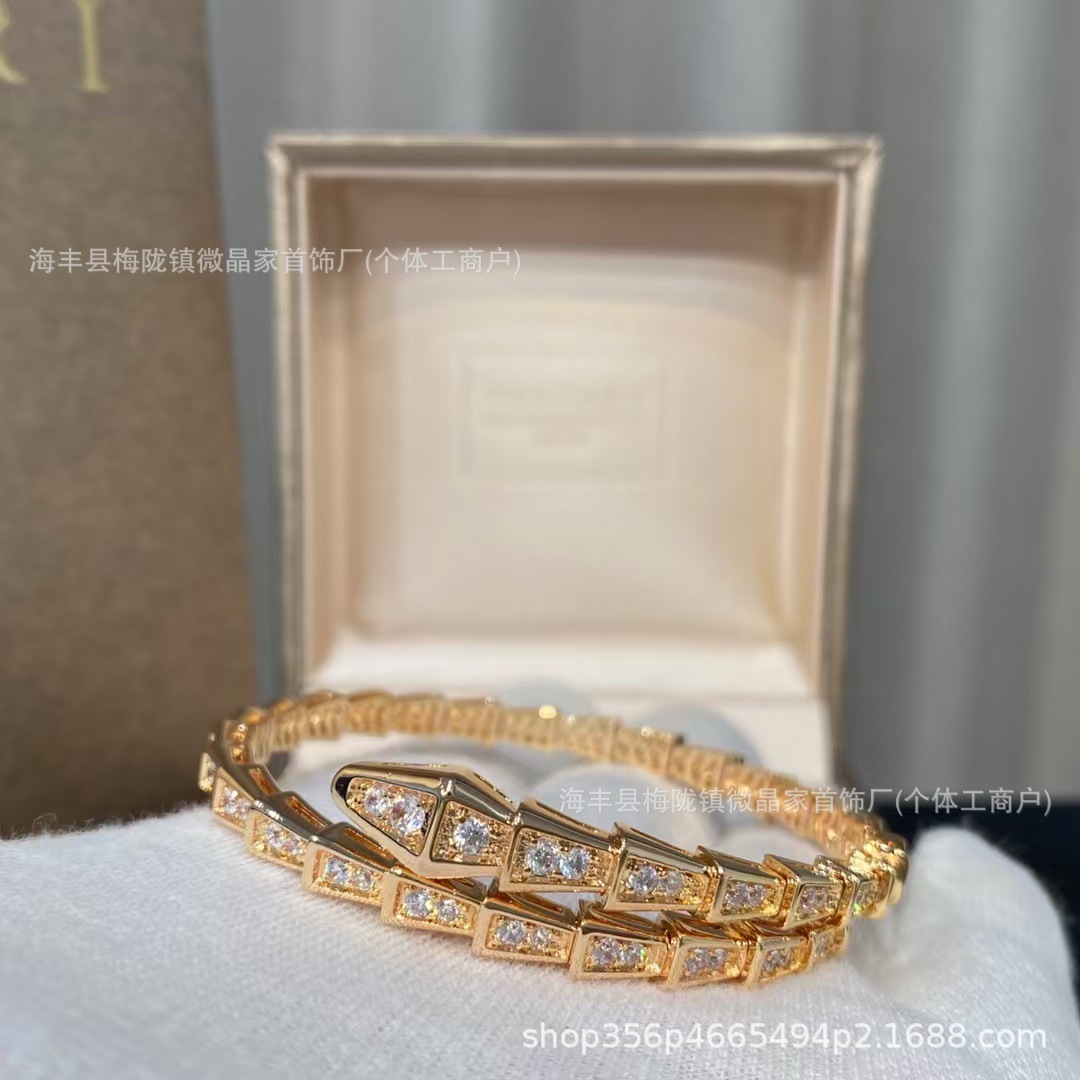 高版本宝家满钻蛇形手镯高版弹簧蛇骨手镯V金CNC工艺工厂直销