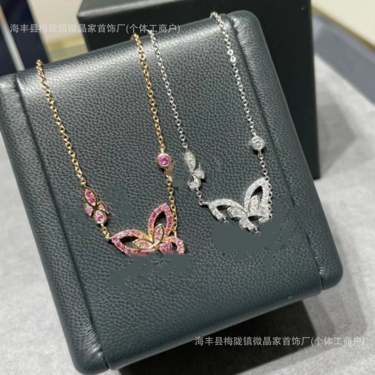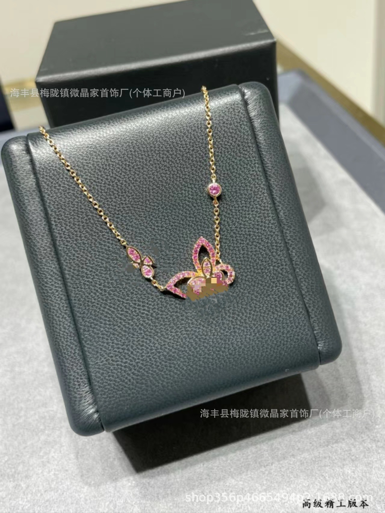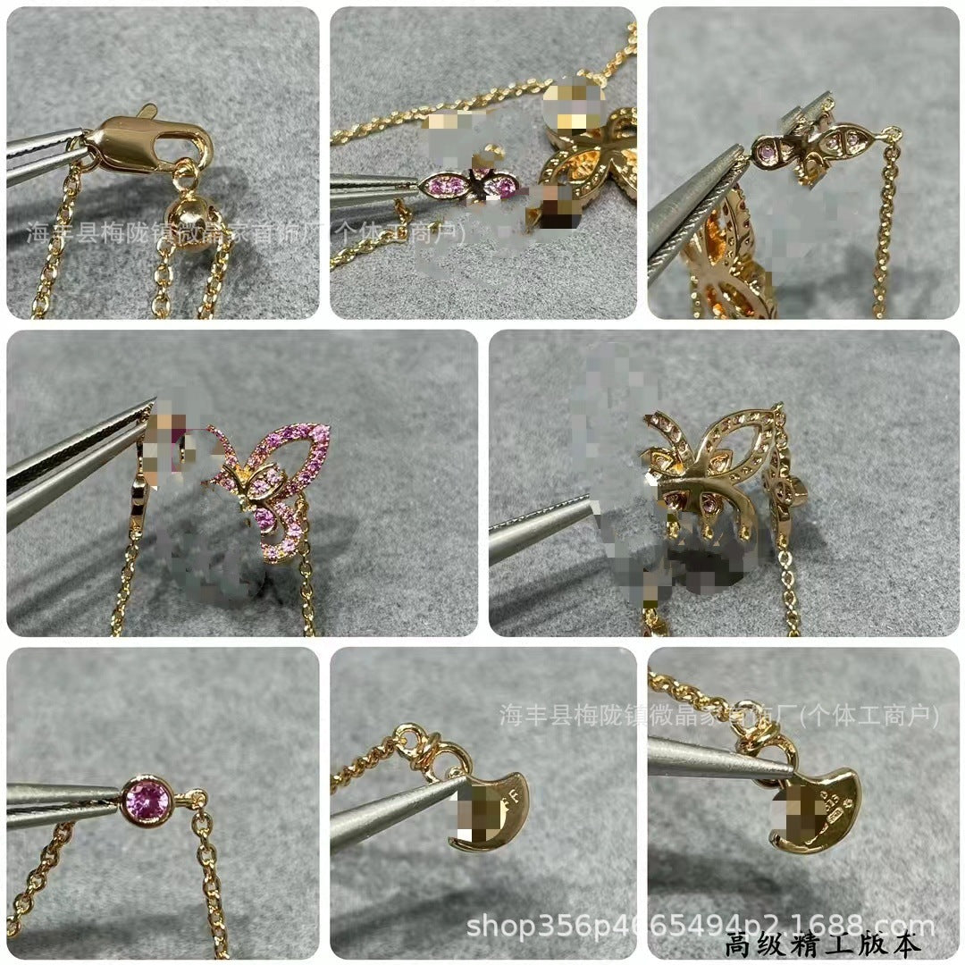 高版本格拉家幻影蝴蝶项链满钻双五蝴蝶粉钻925银镀18k玫瑰金V金