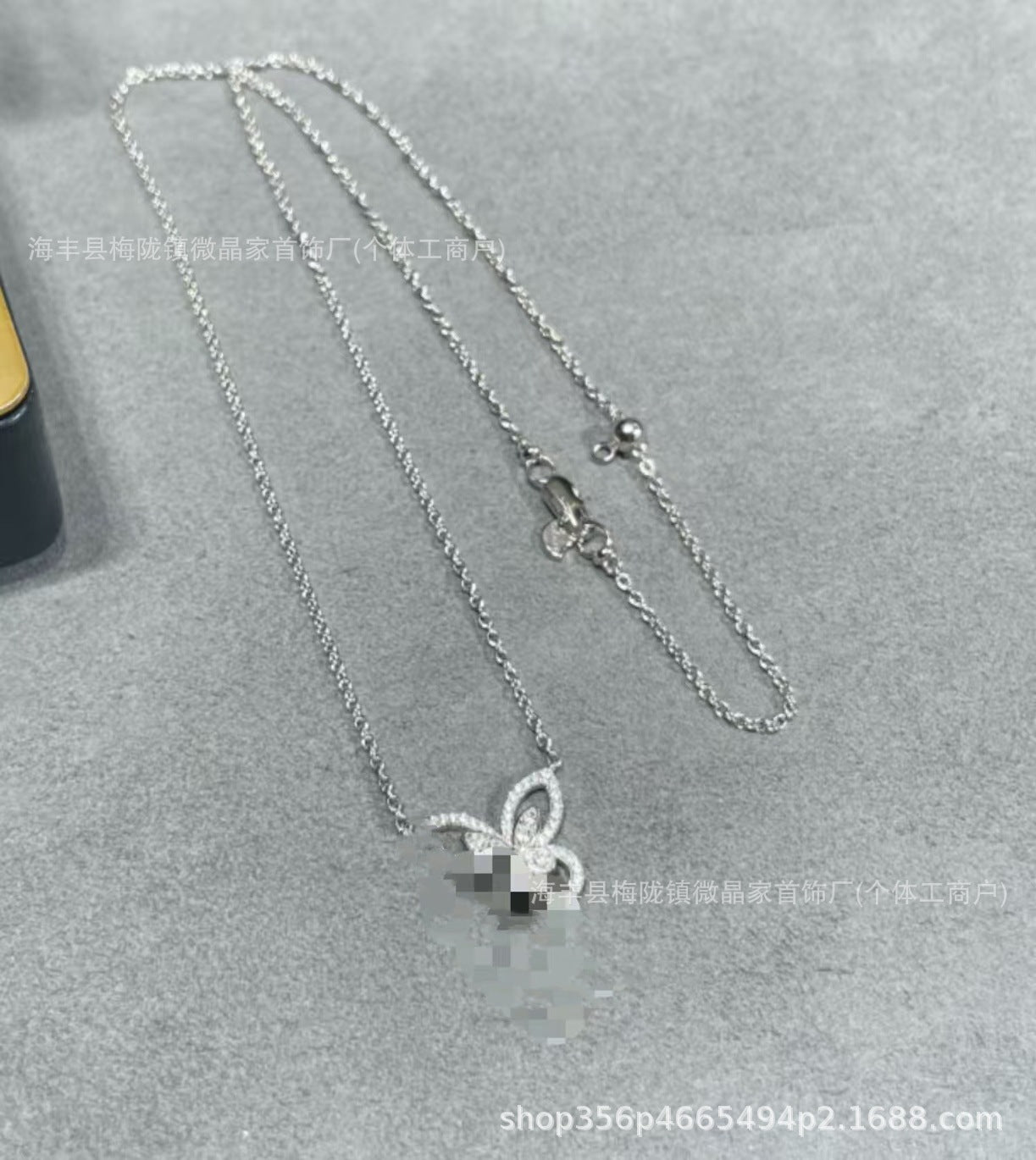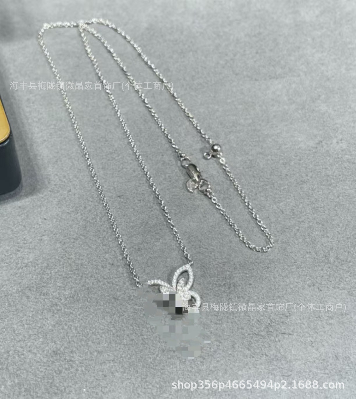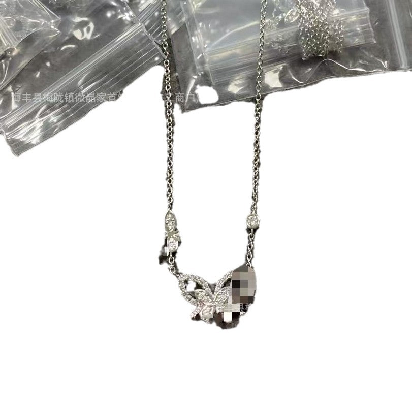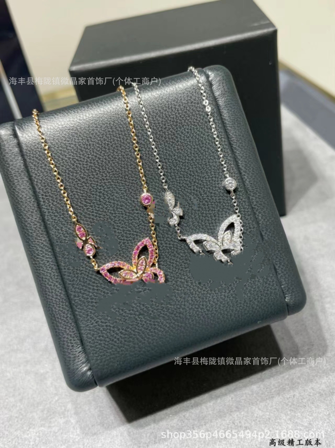 高版本格拉家幻影蝴蝶项链满钻双五蝴蝶粉钻925银镀18k玫瑰金V金