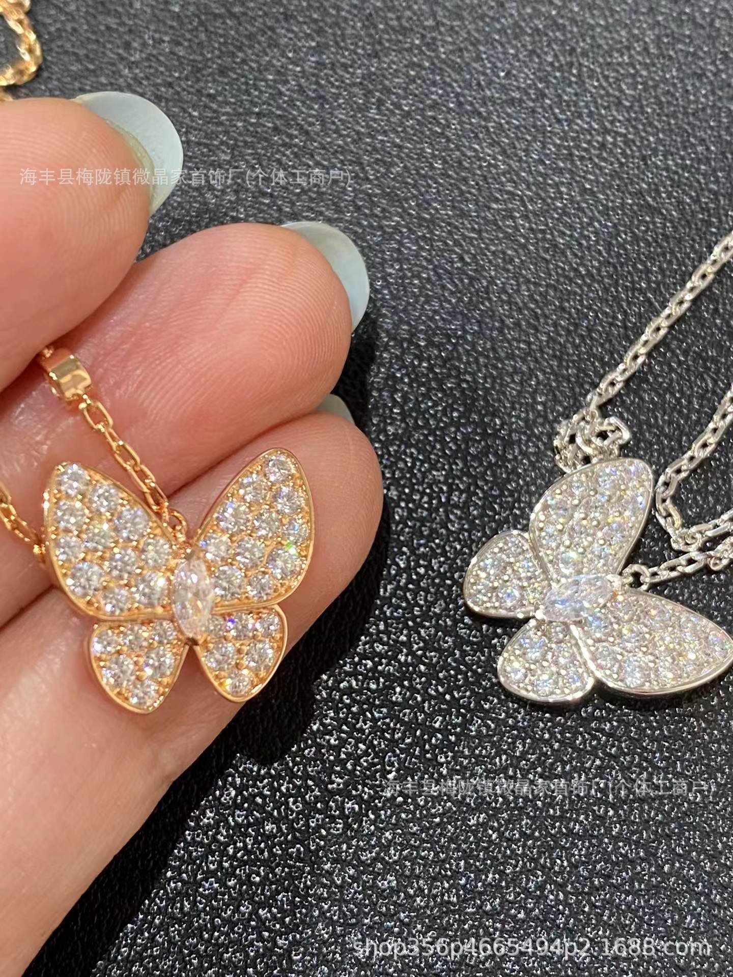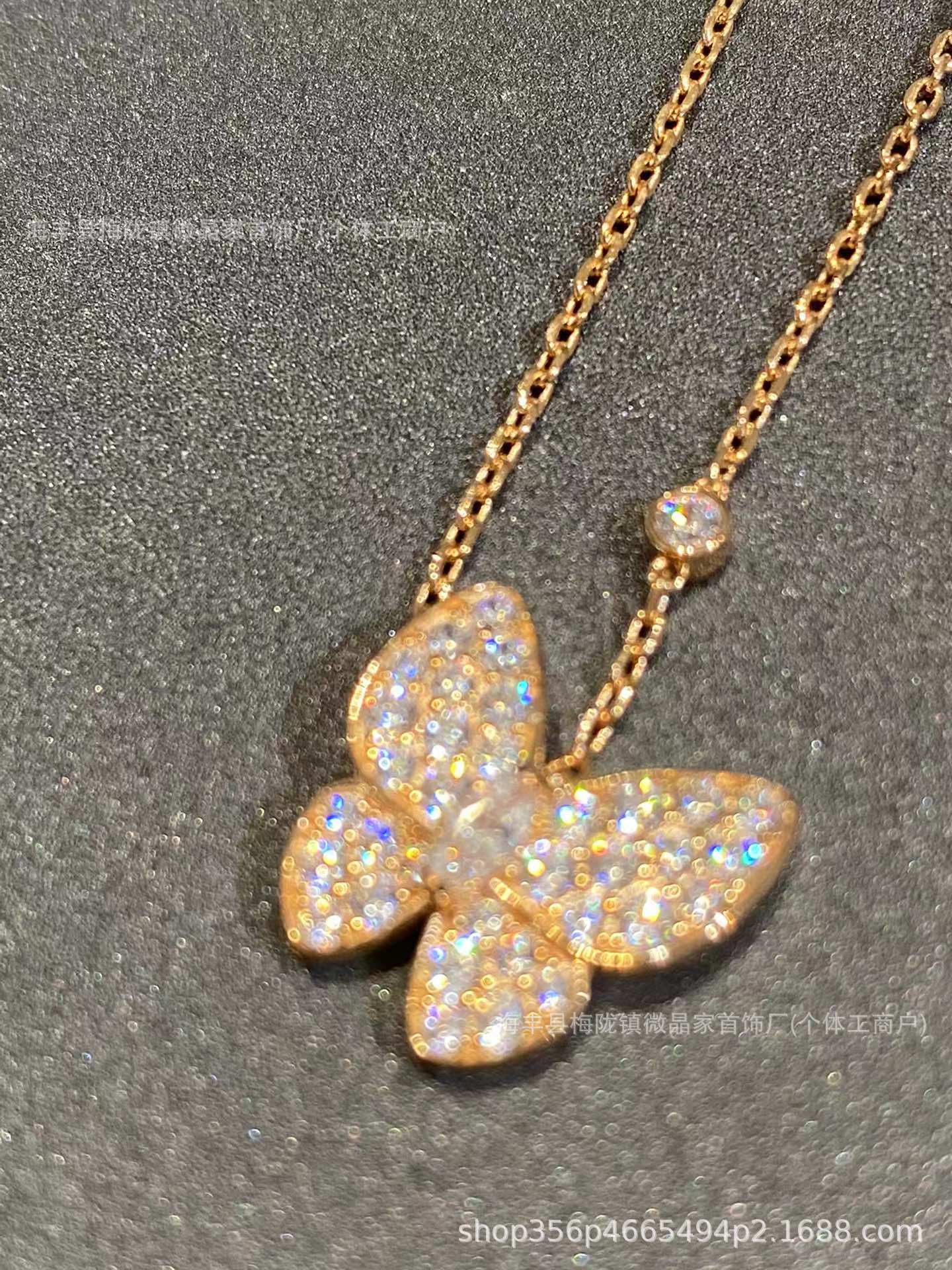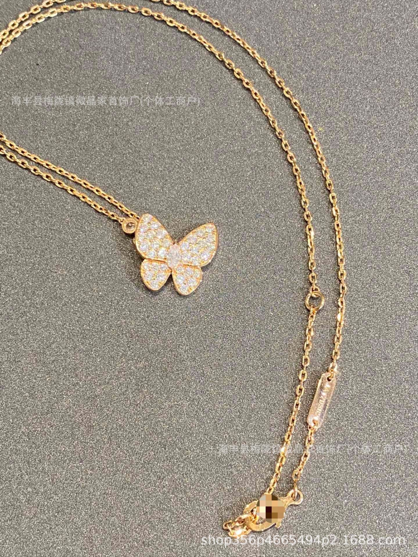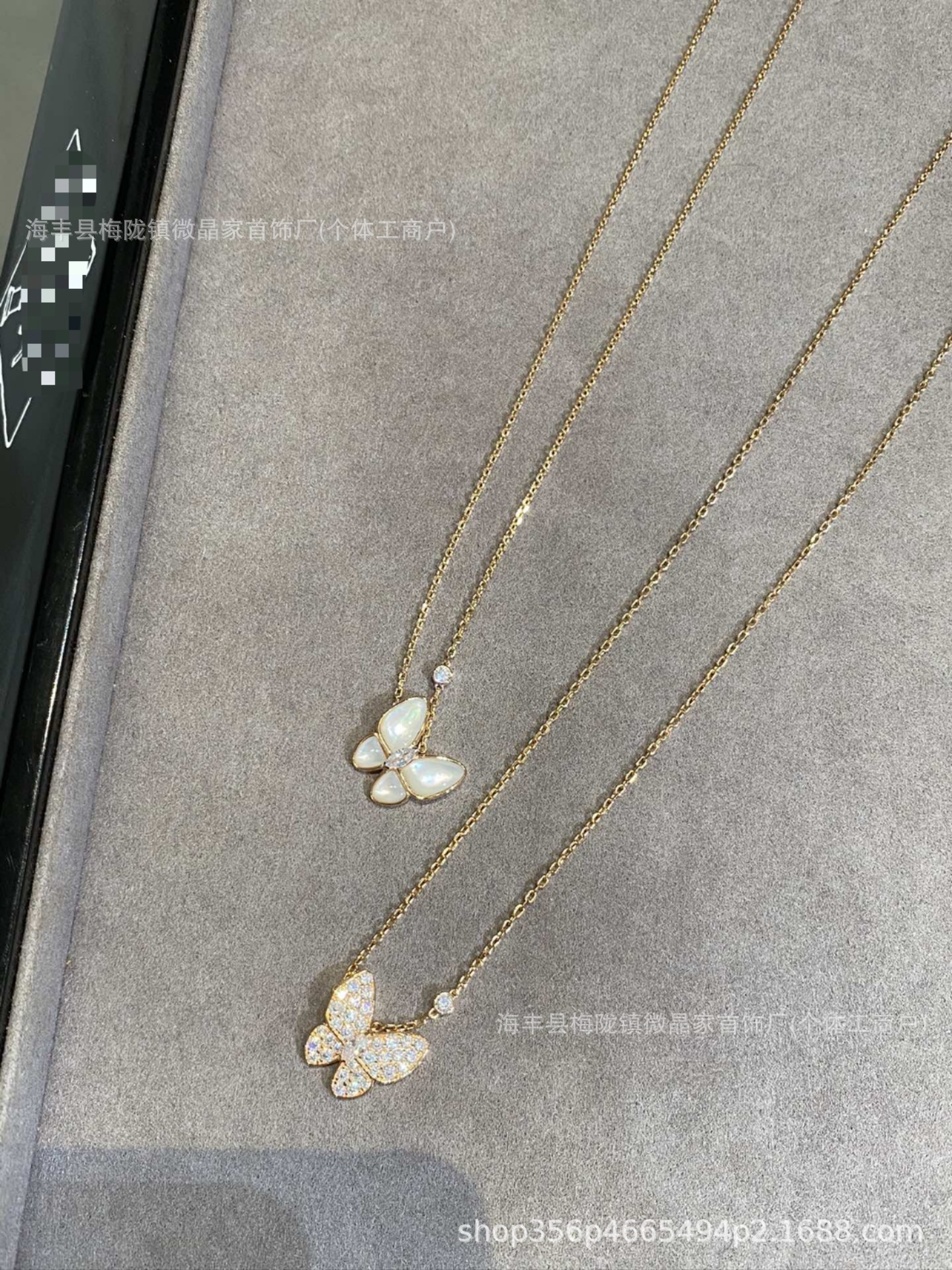 高版本梵家白贝蝴蝶项链满钻马眼蝴蝶项链女镀18k玫瑰金厂家直销