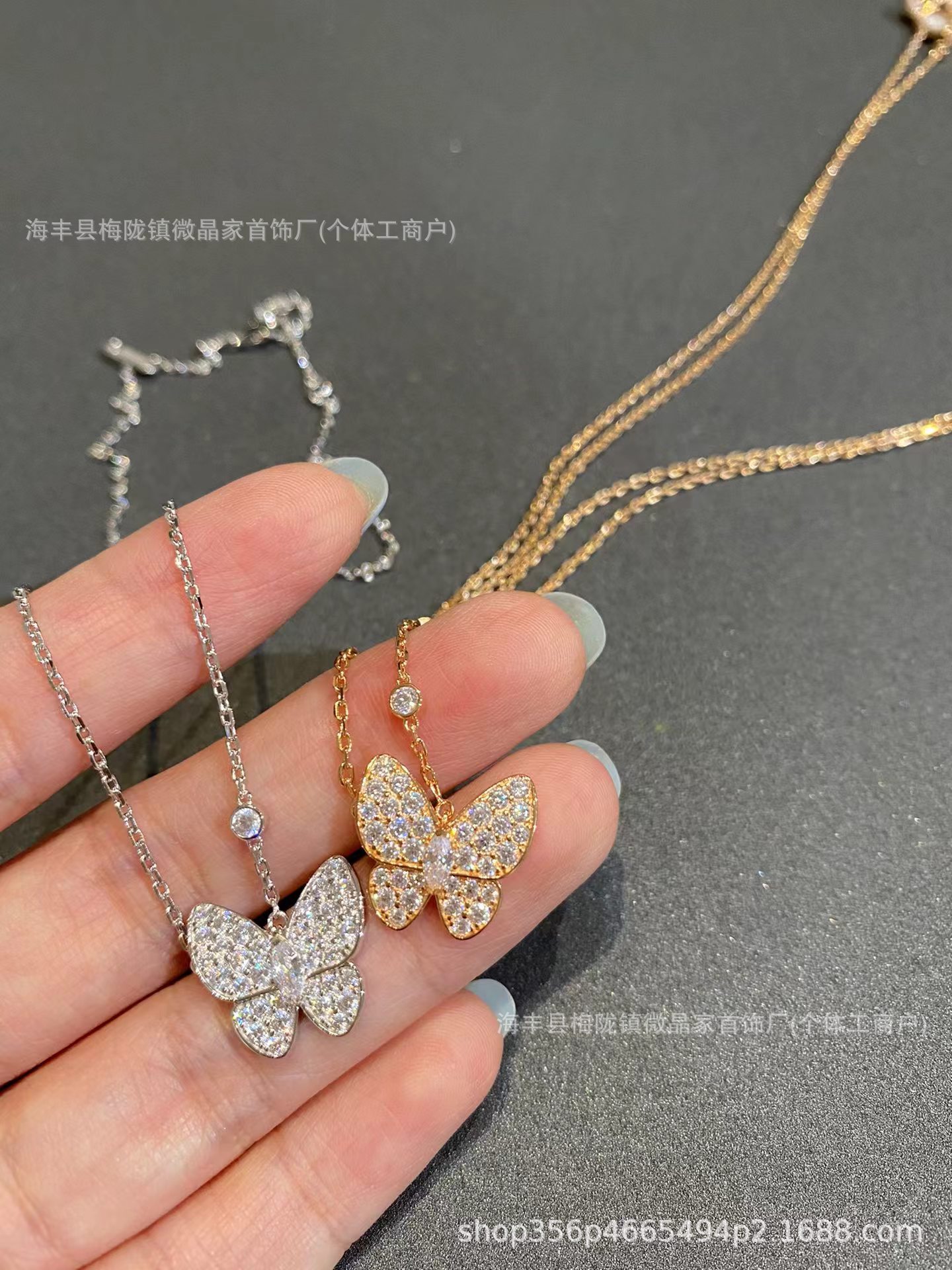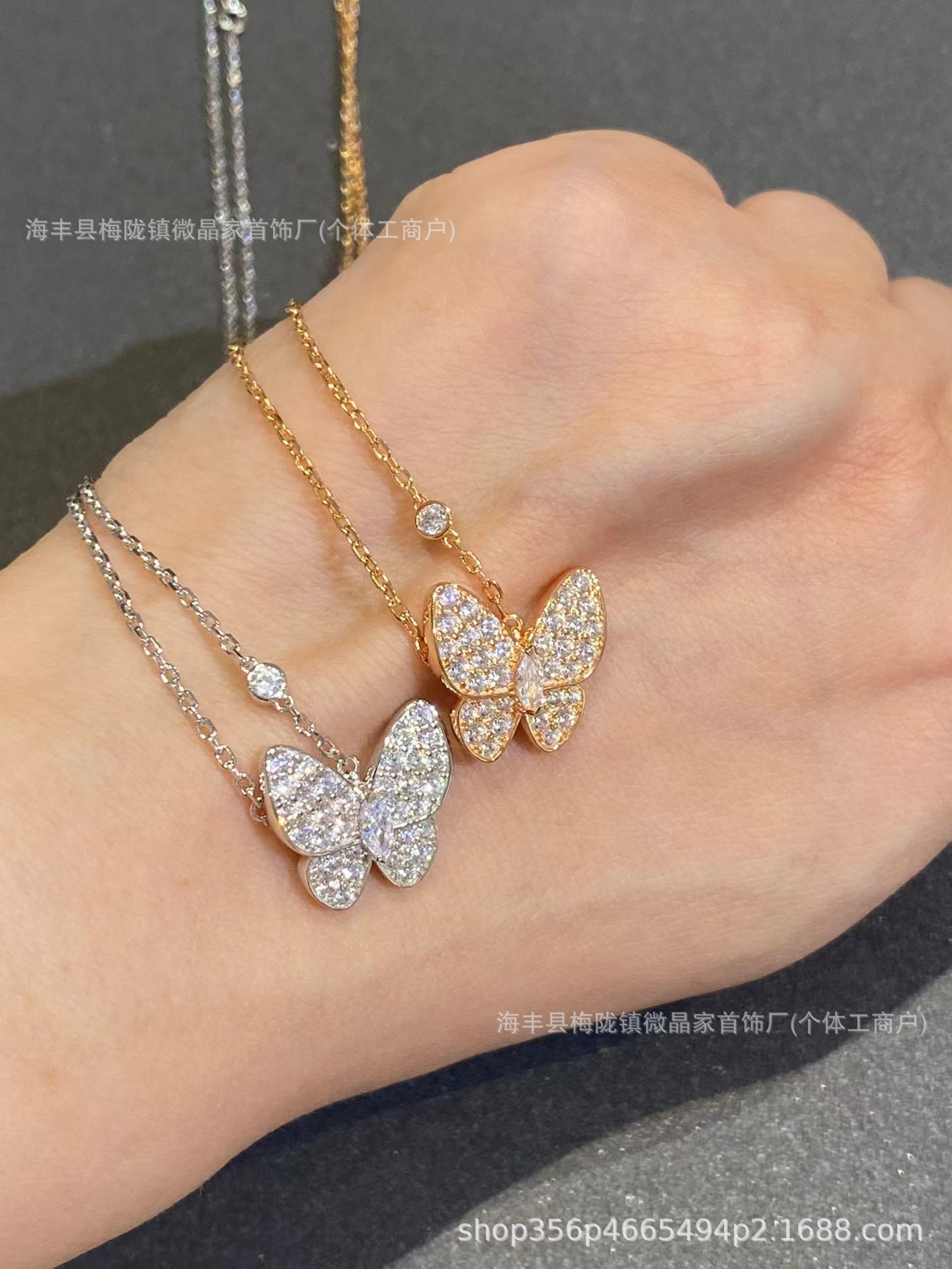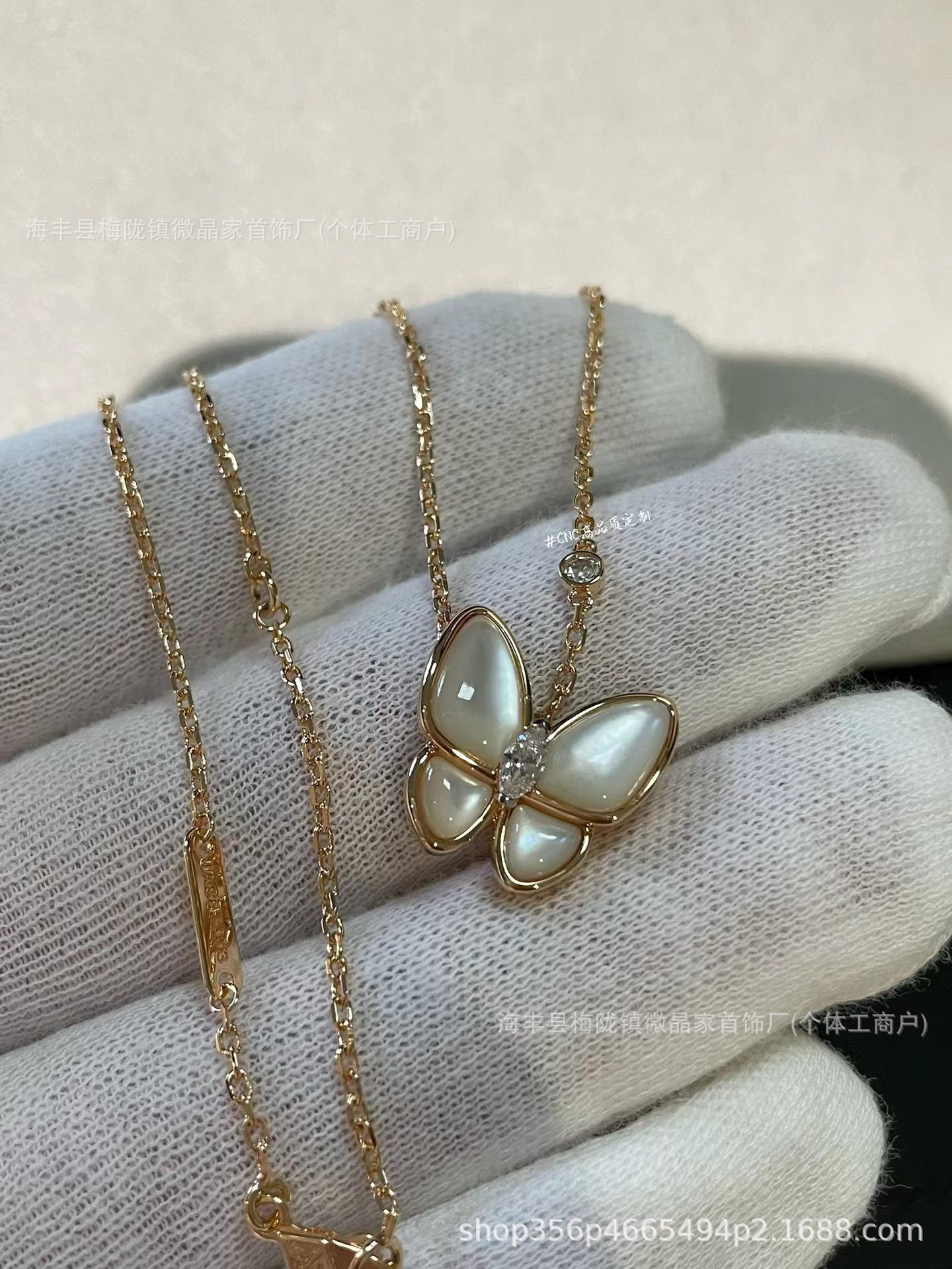 高版本梵家白贝蝴蝶项链满钻马眼蝴蝶项链女镀18k玫瑰金厂家直销