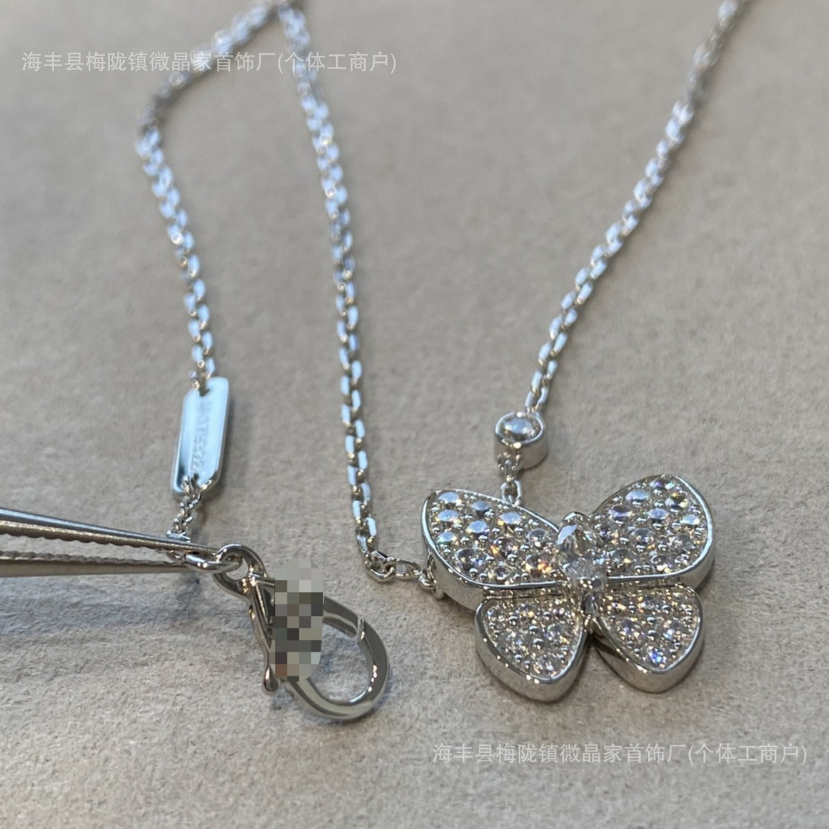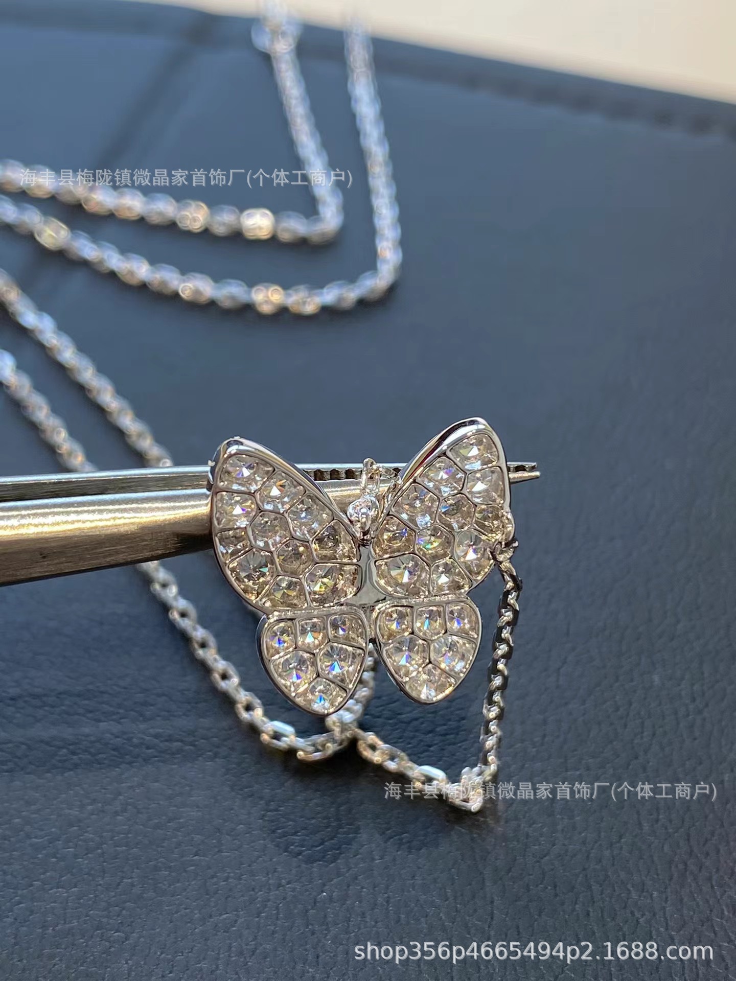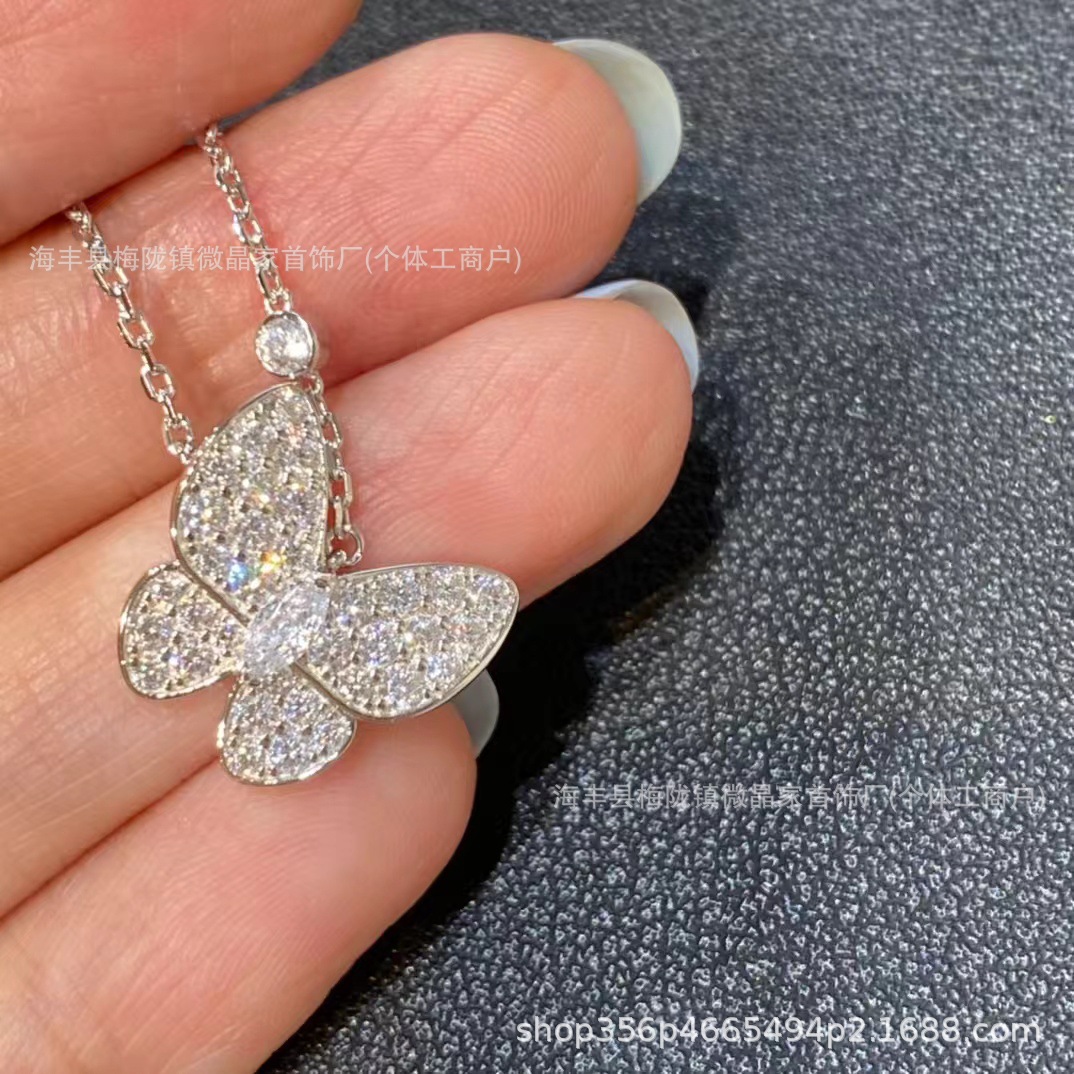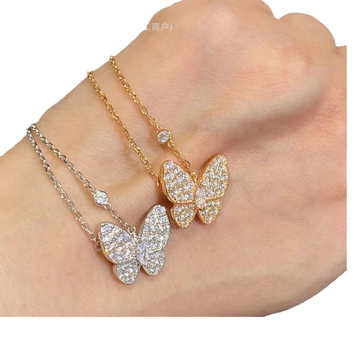 高版本梵家白贝蝴蝶项链满钻马眼蝴蝶项链女镀18k玫瑰金厂家直销