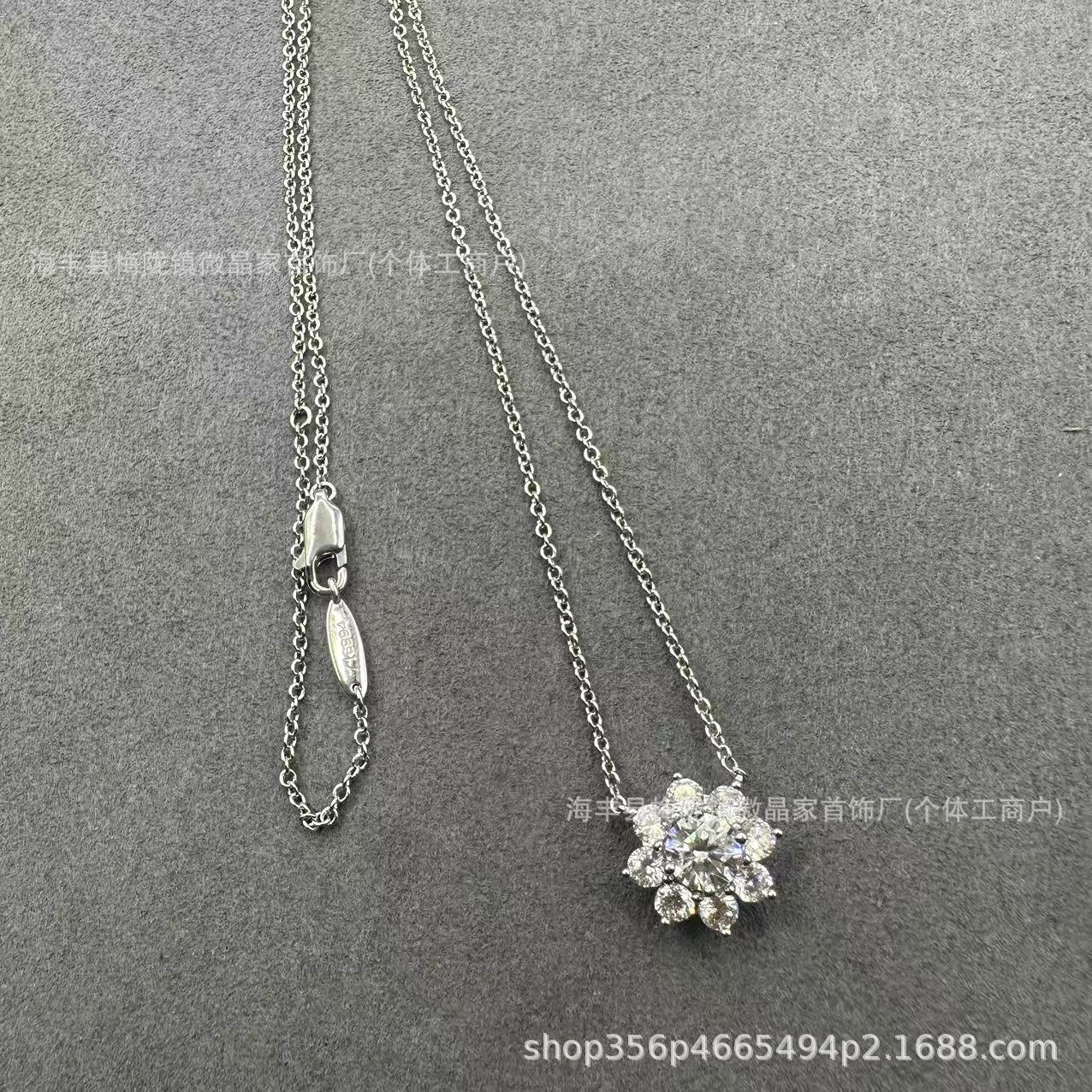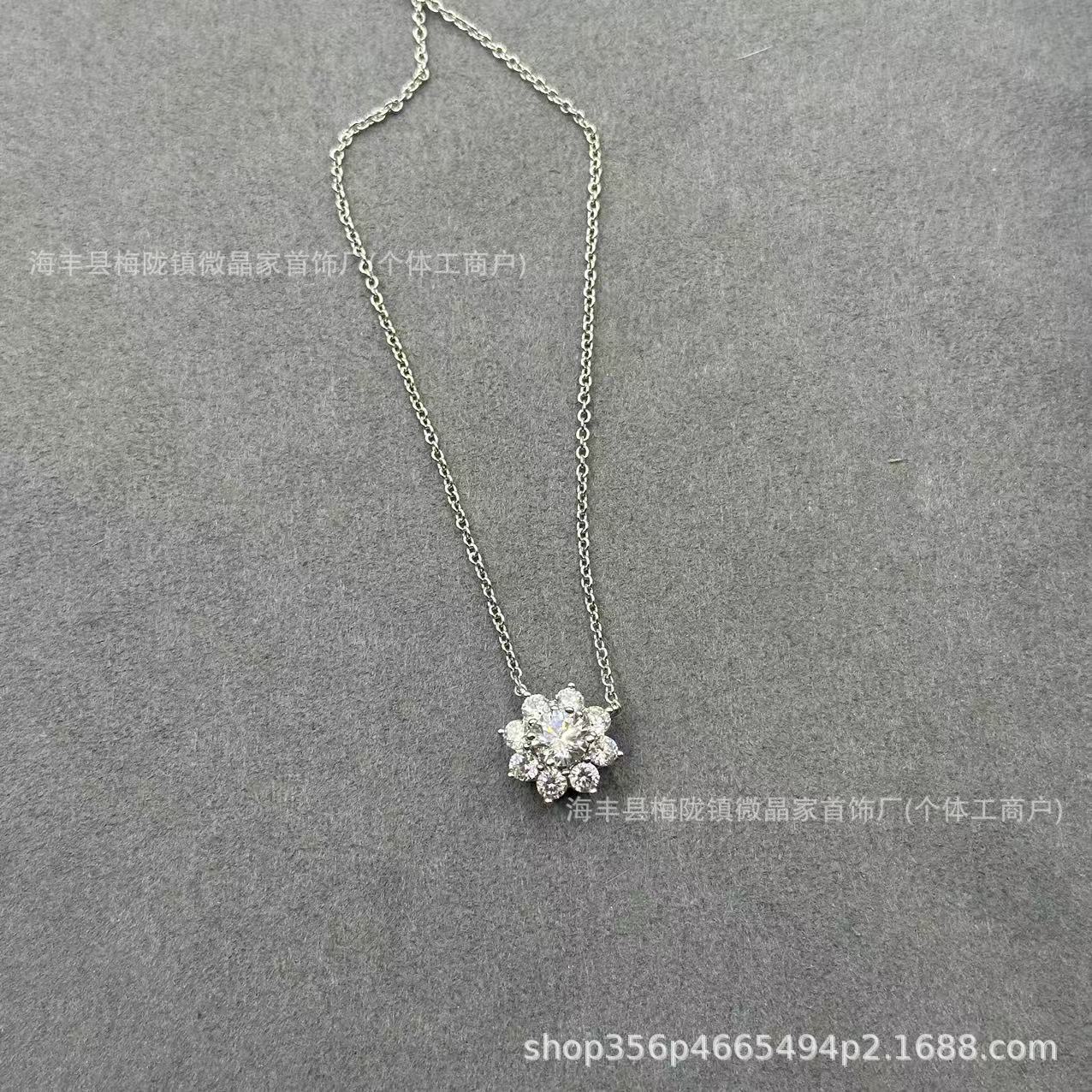 高版本海瑞太阳花项链纯银满钻花朵锁骨链网红款精工CNC厂家直销