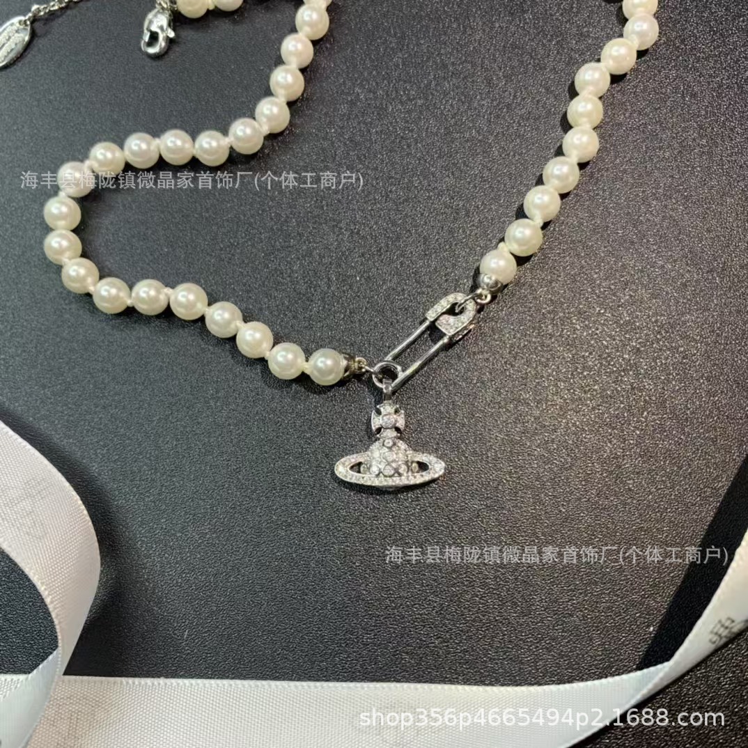 高版本西太后土星珍珠项链女薇薇安经典回形针土星珍珠链工厂直销