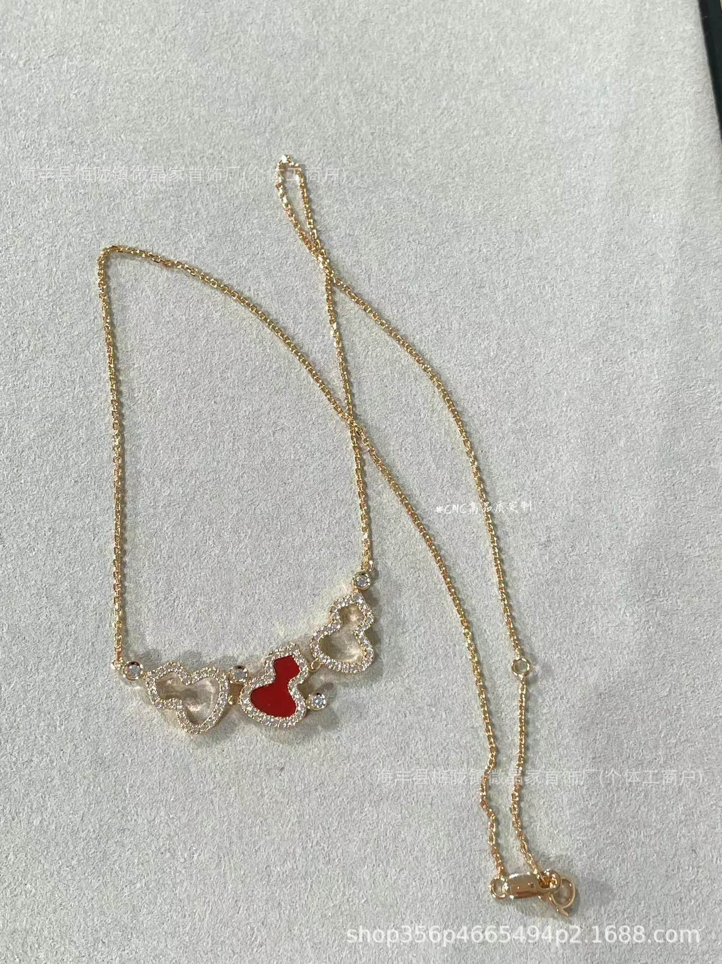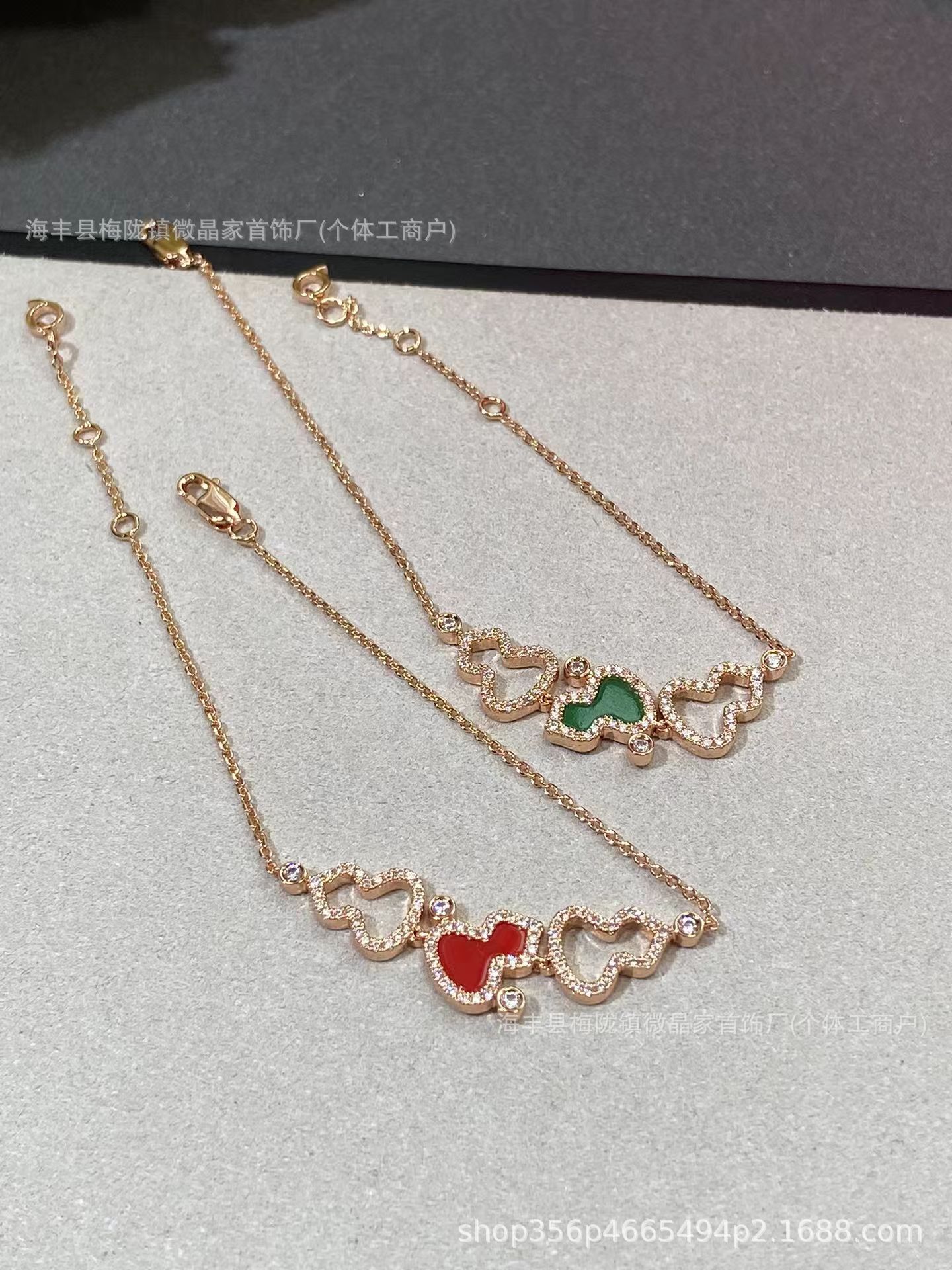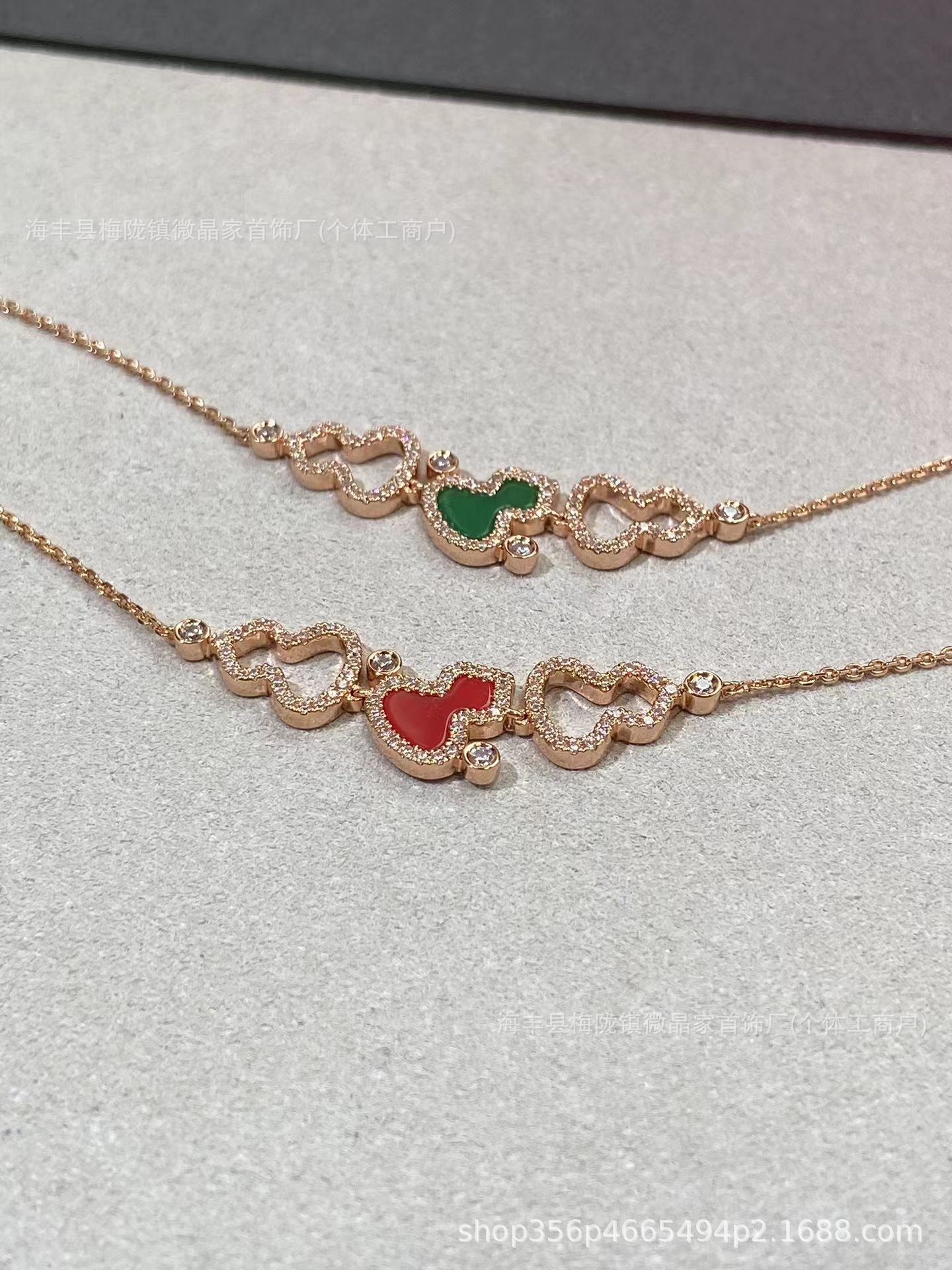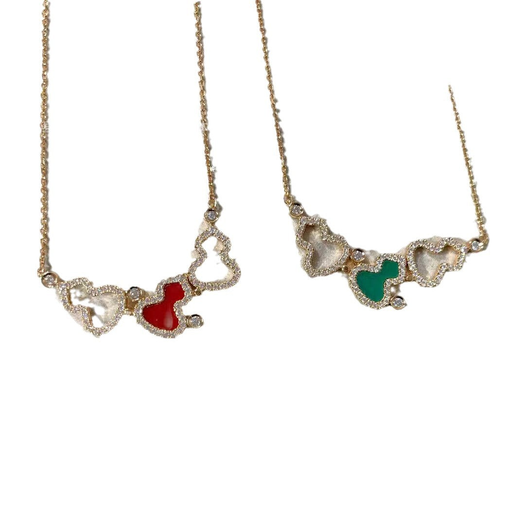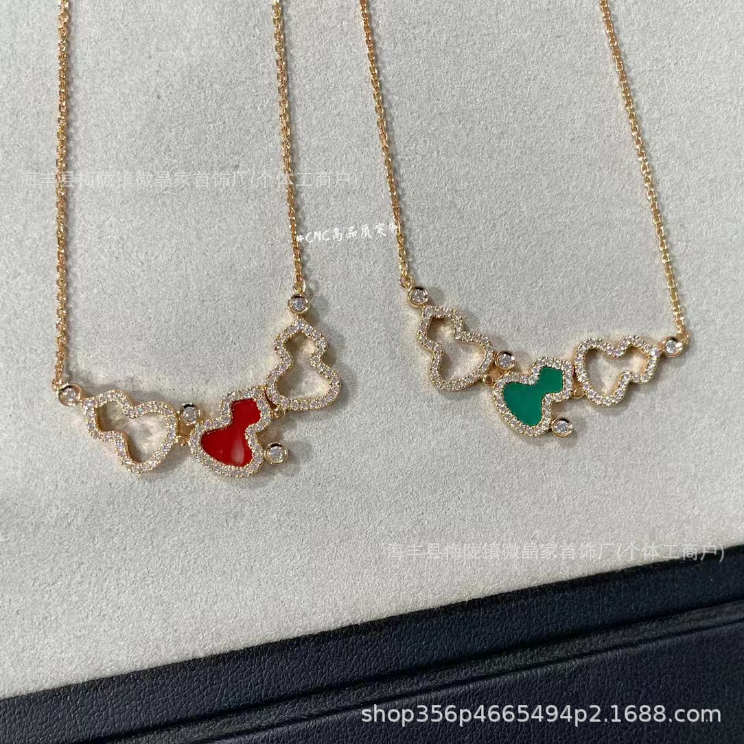 高版本CNC麒麟三葫芦项链天然绿翡翠红玉髓S925银镀18K厚金项链