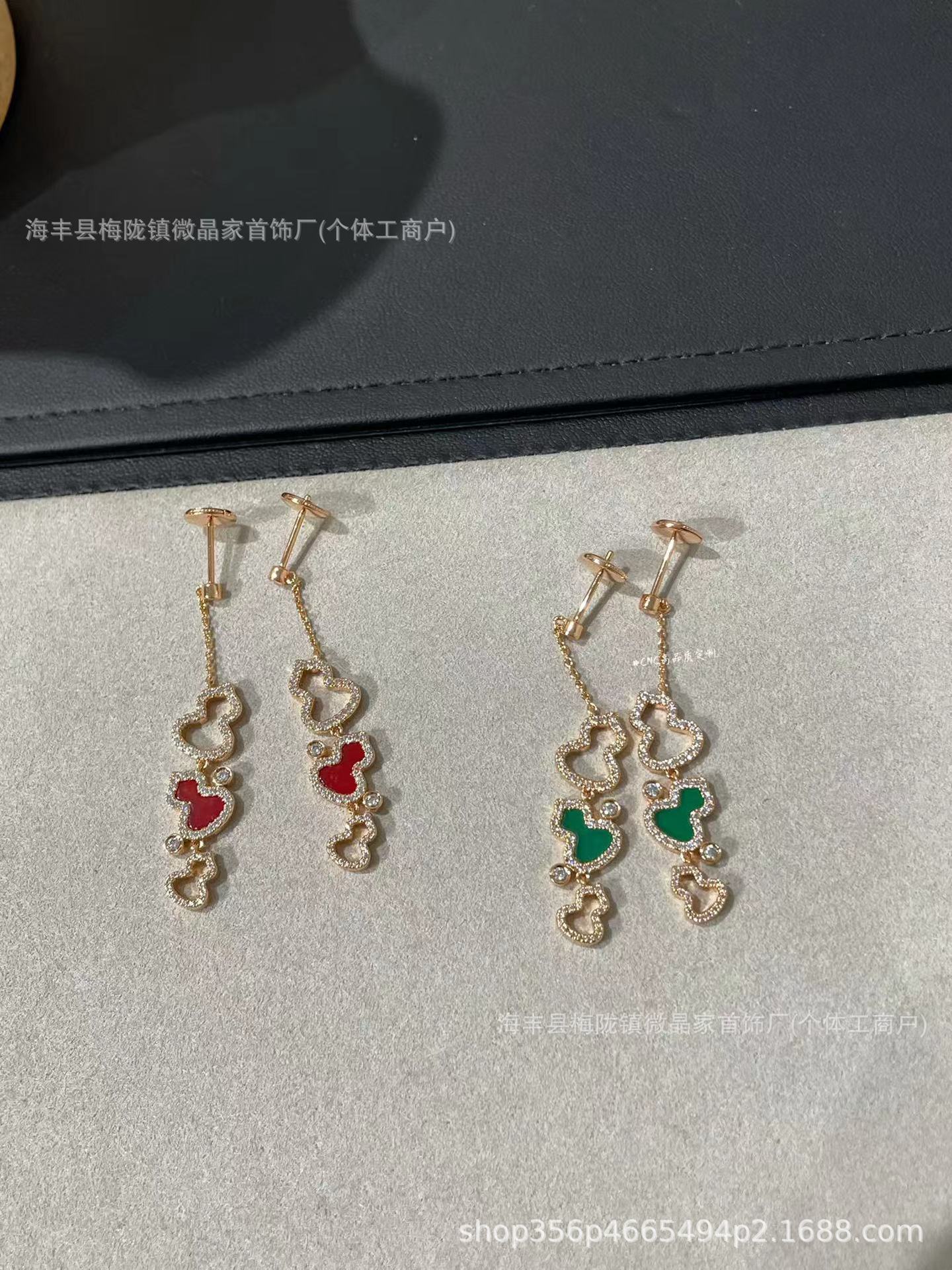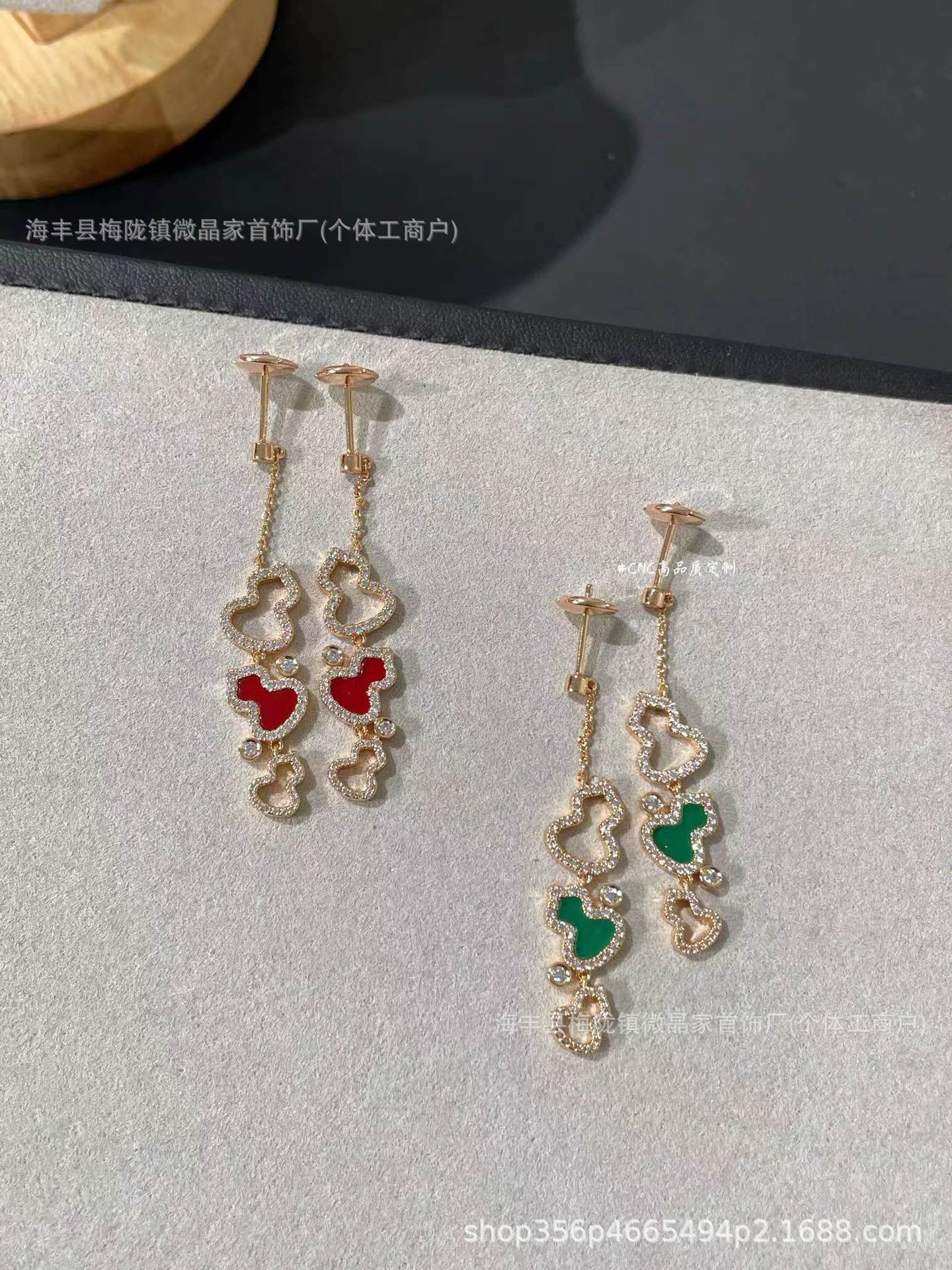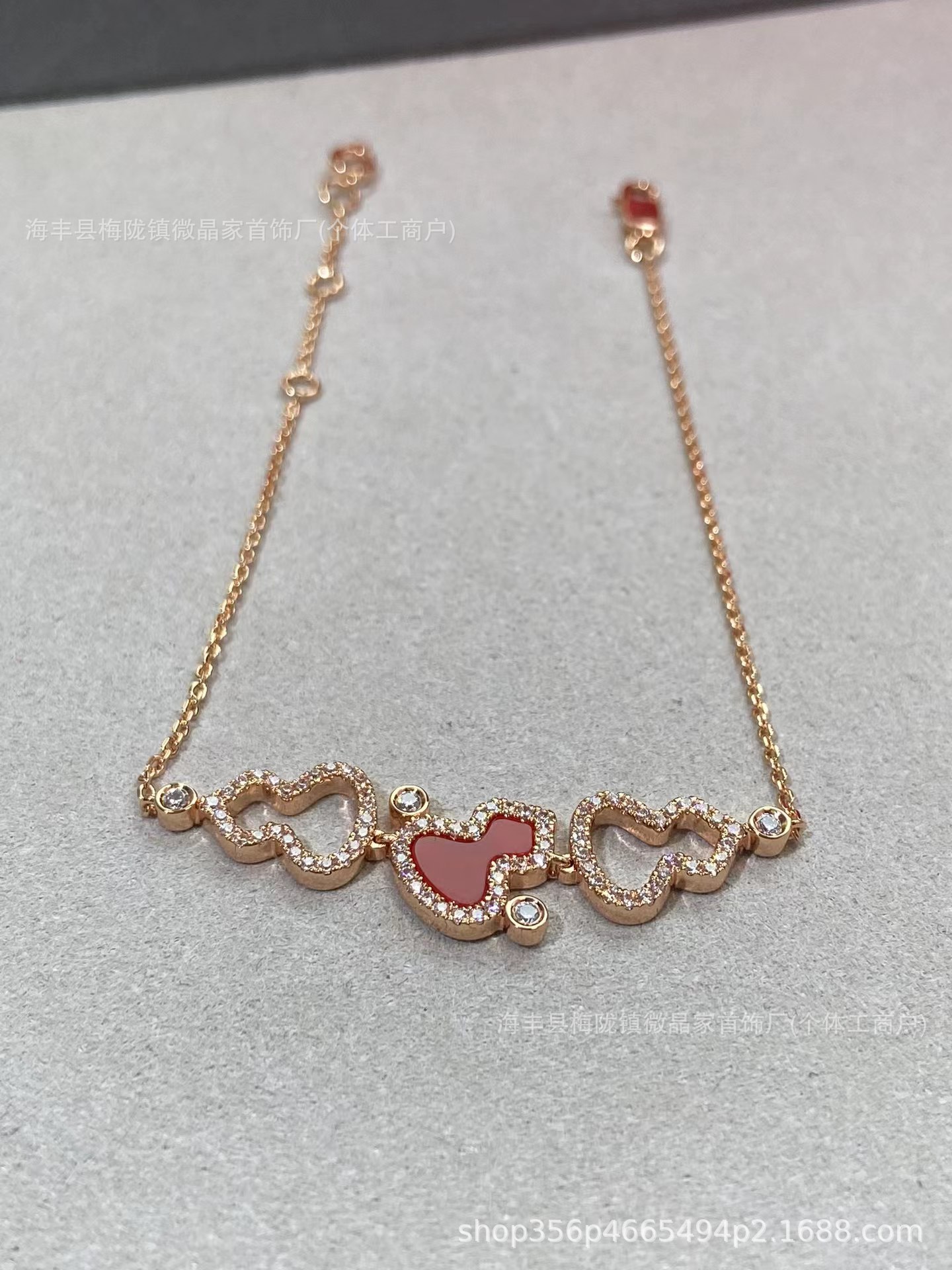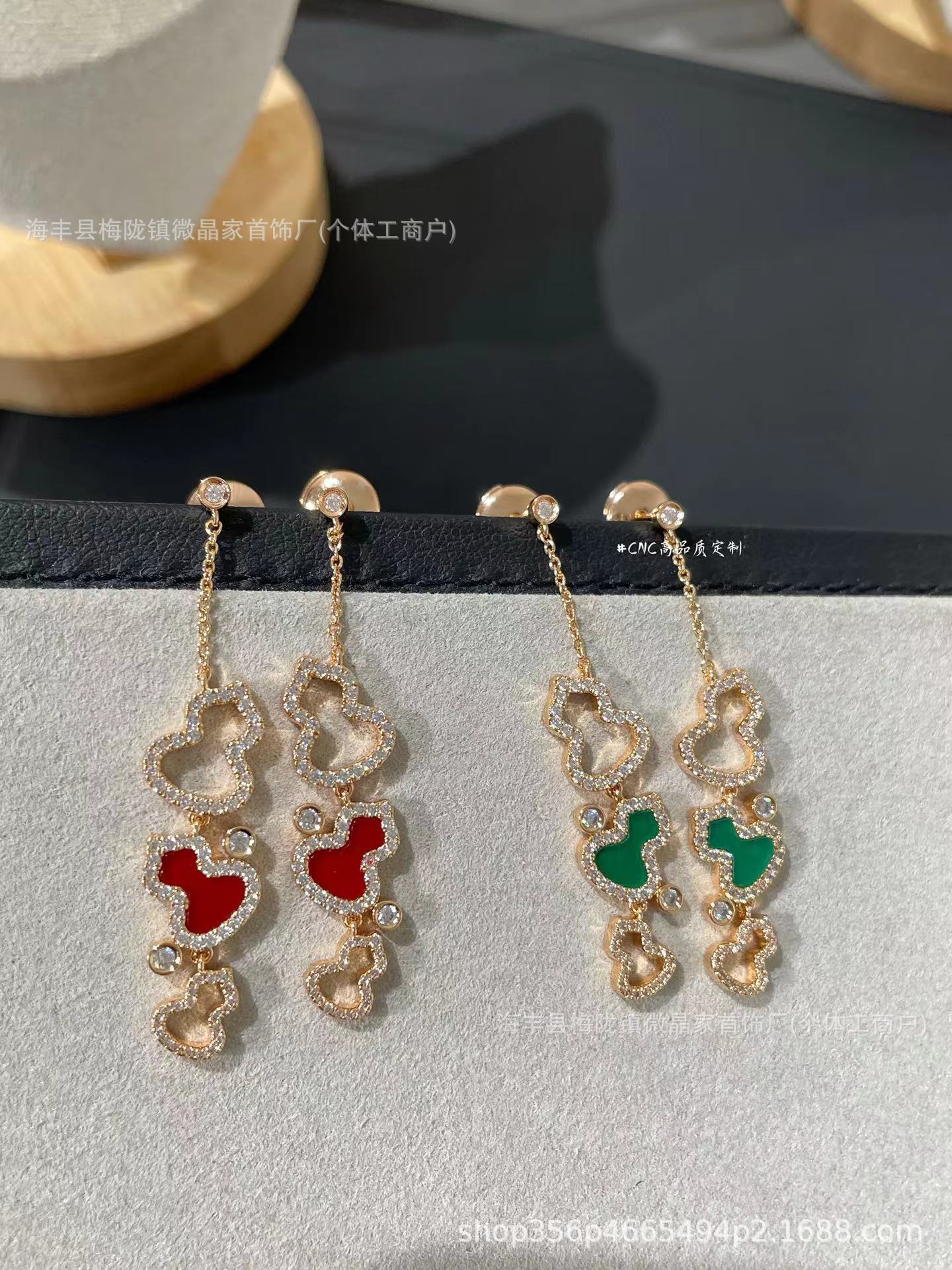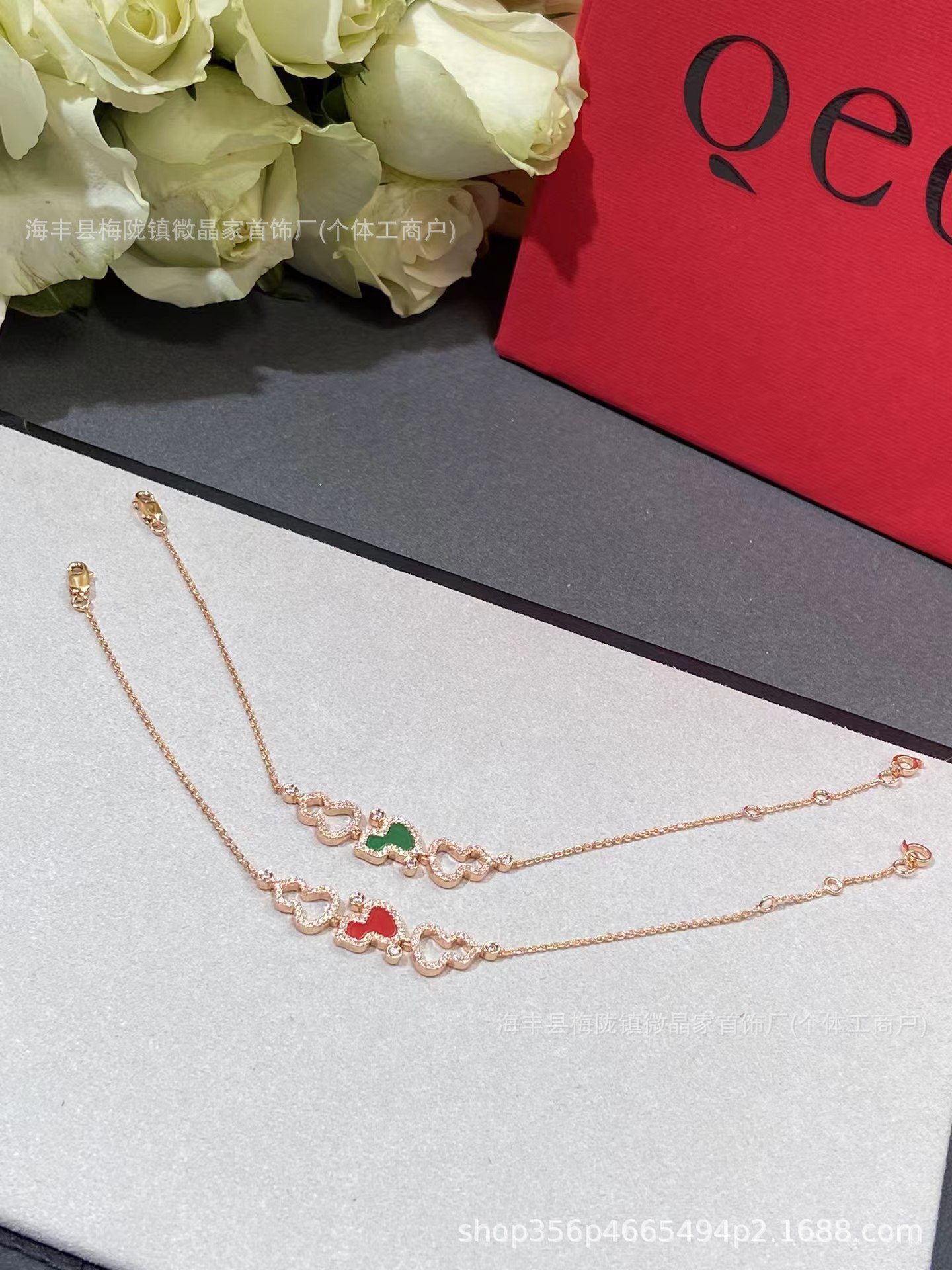 高版本CNC麒麟三葫芦项链天然绿翡翠红玉髓S925银镀18K厚金项链